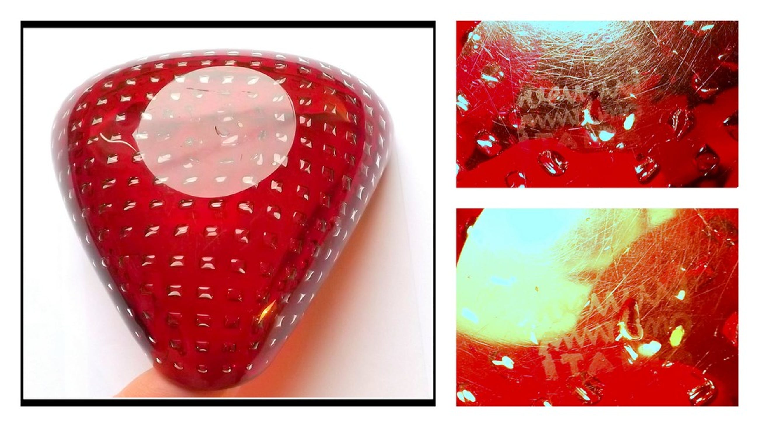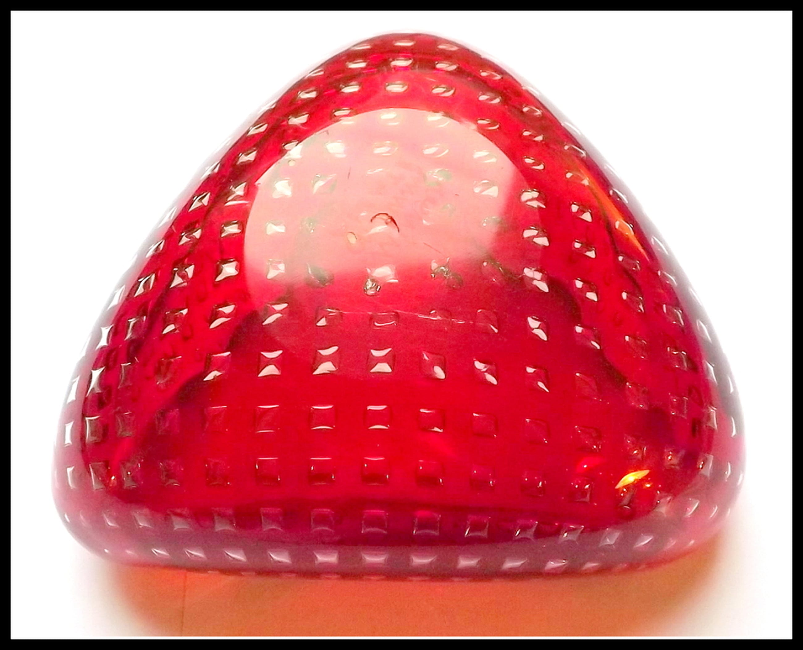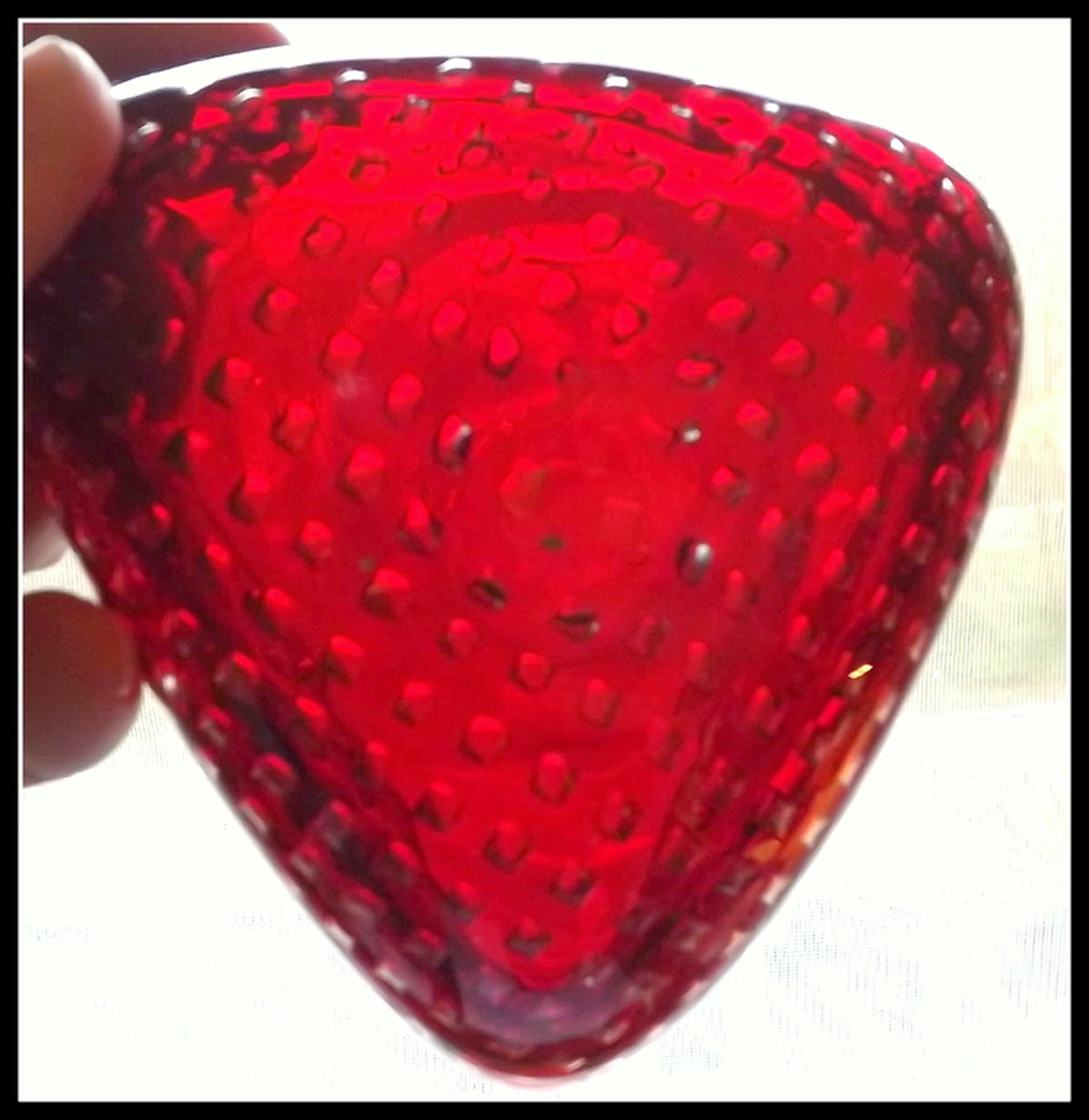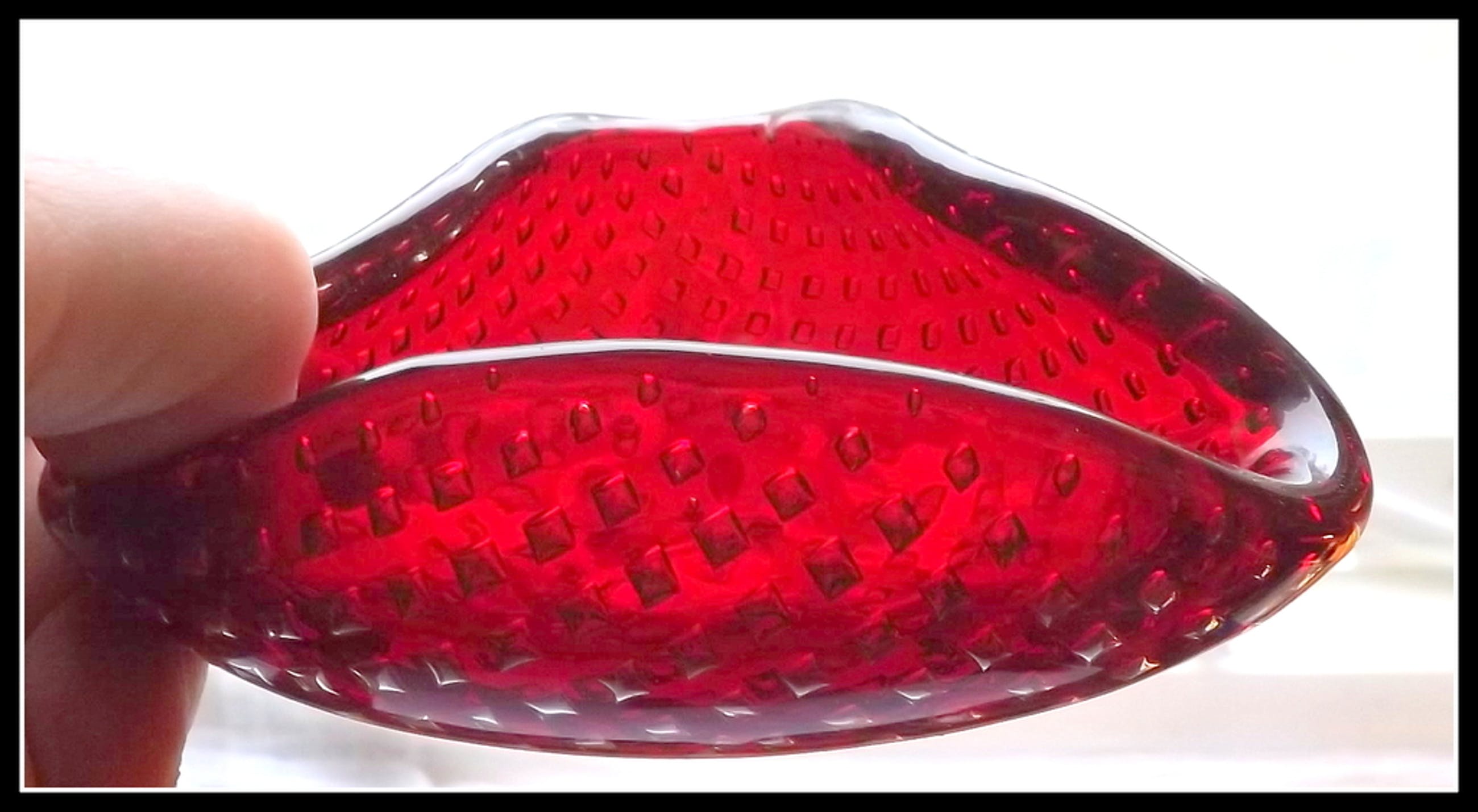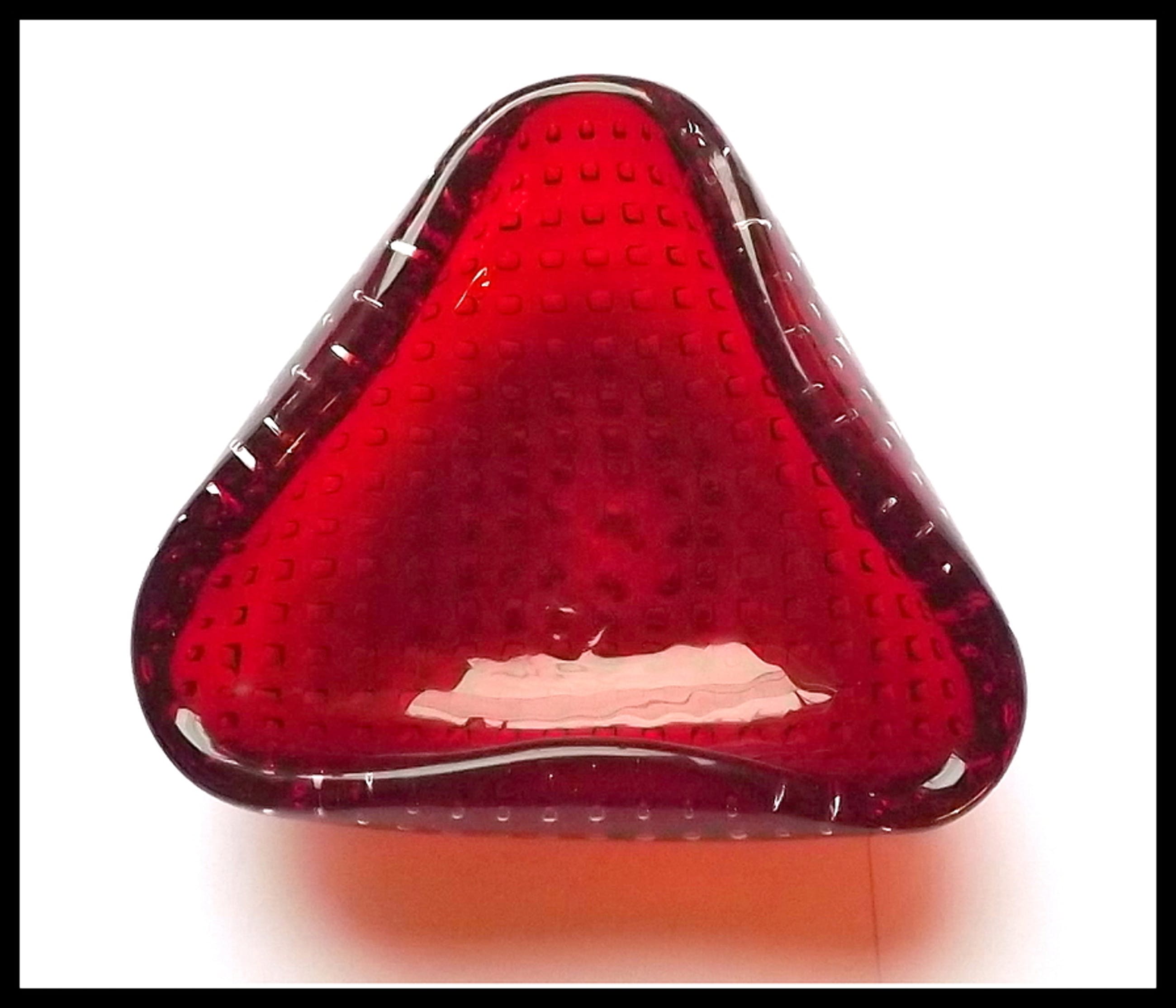 Robijn rood MURANO sier-schaaltje bewerkt met symetrisch geplaatste luchtbelletjes - jaren 50.