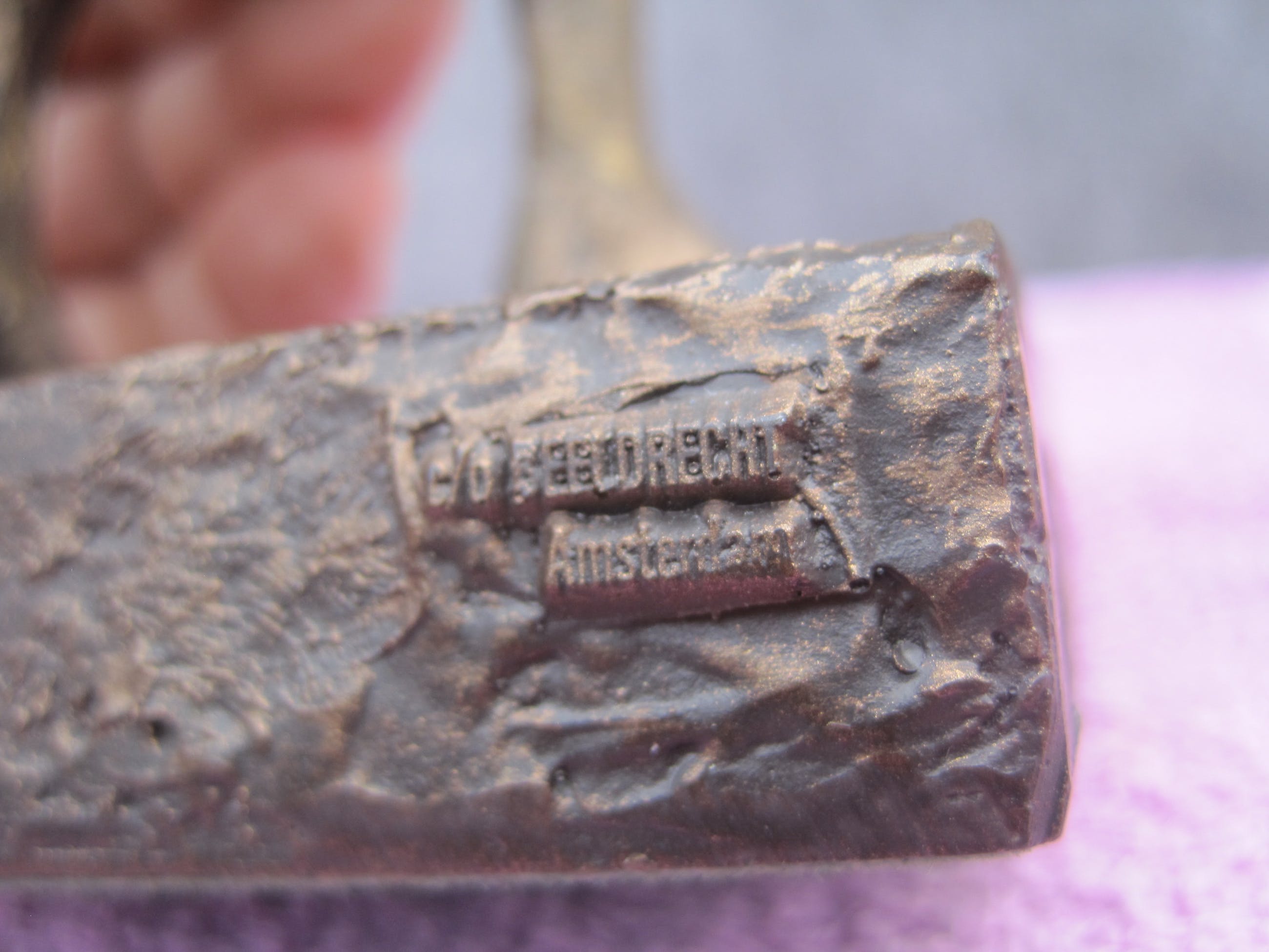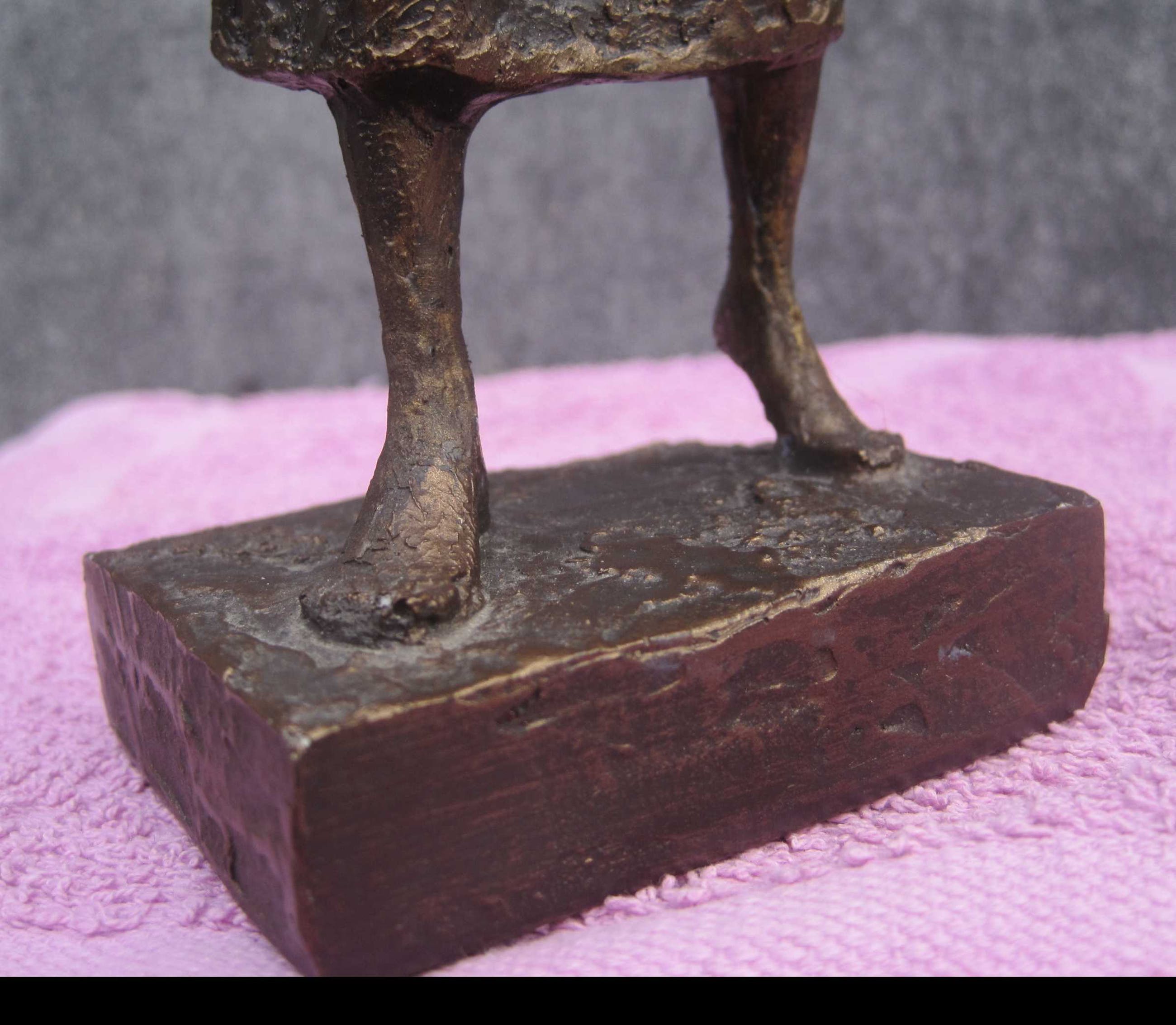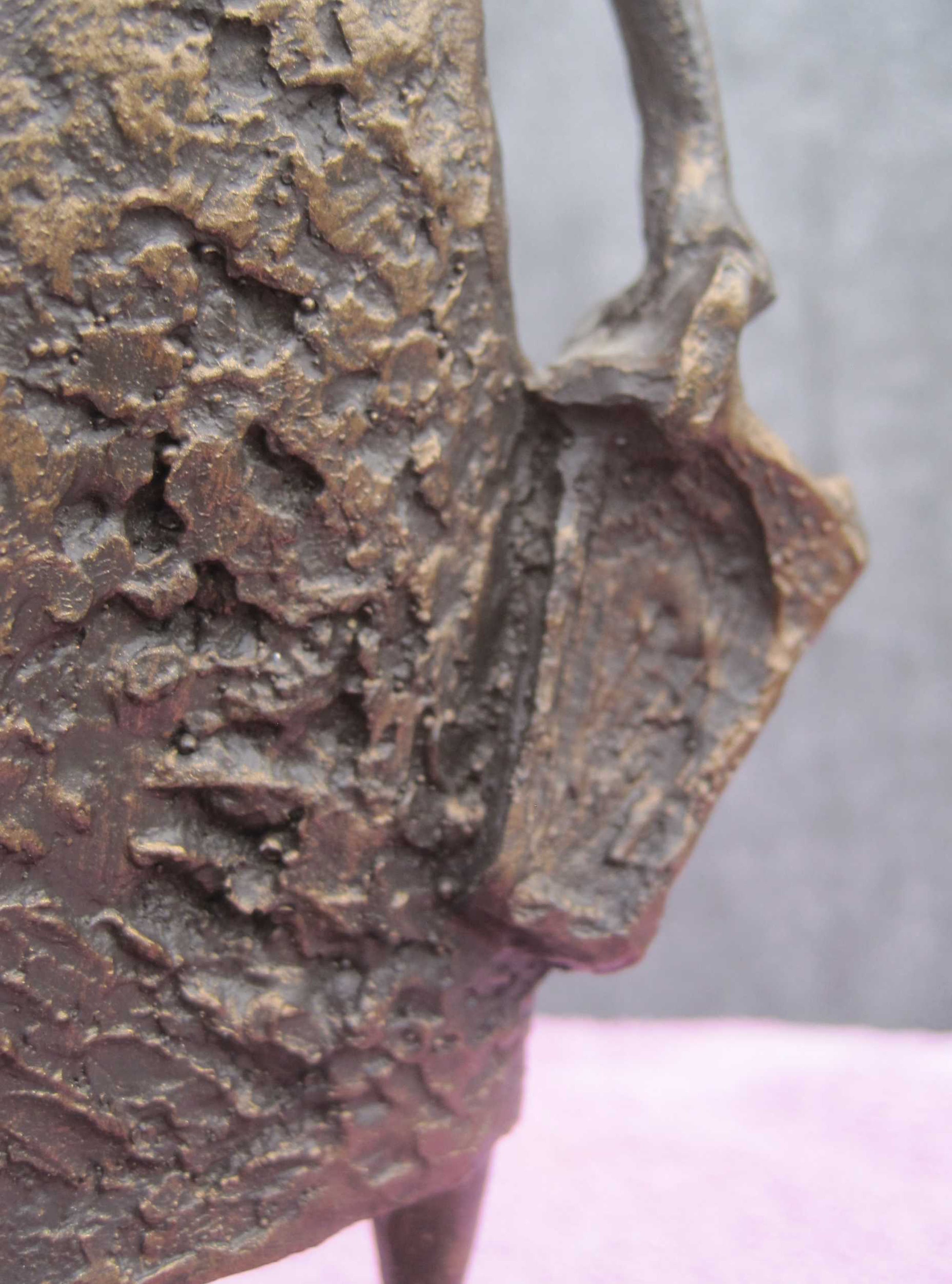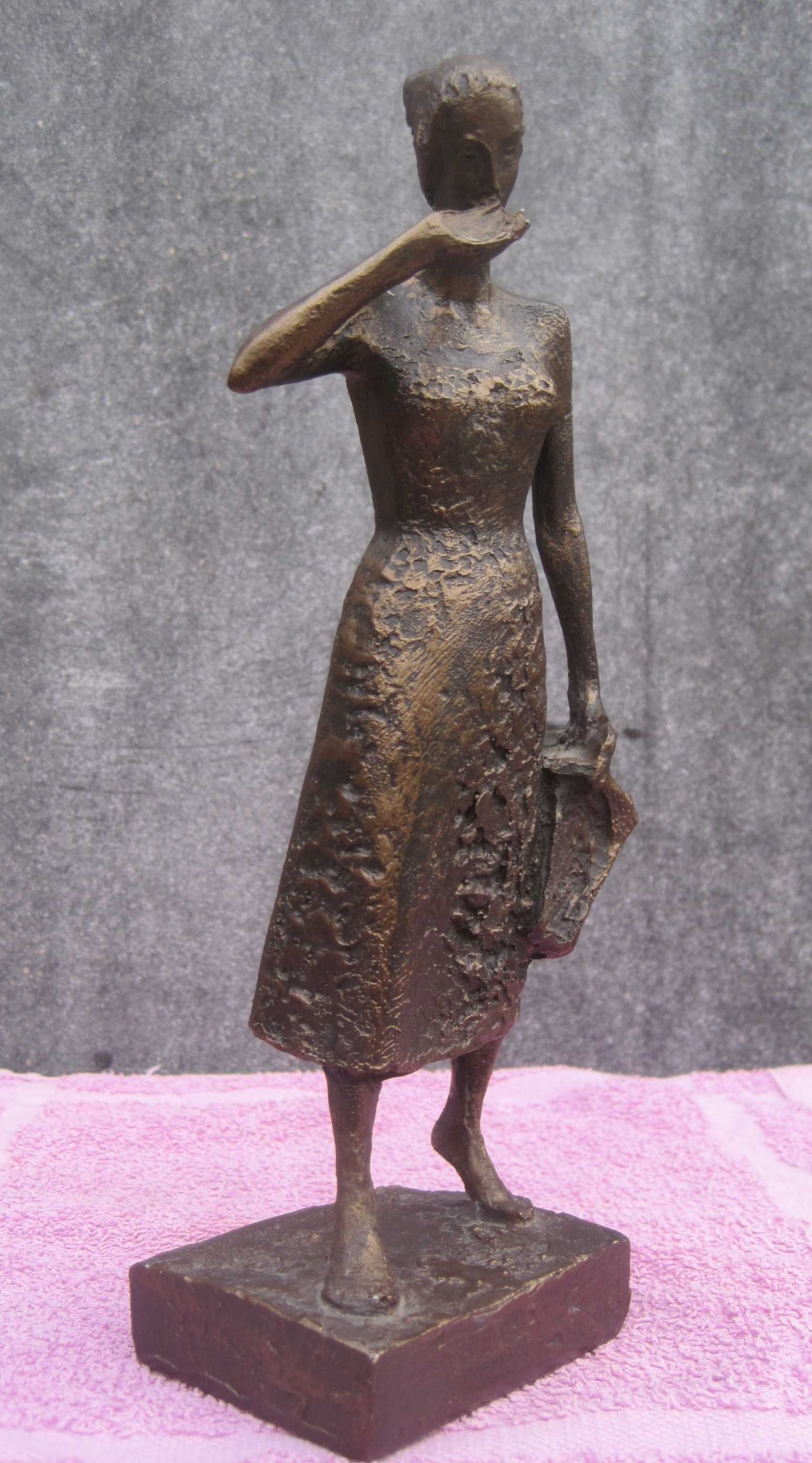 Een beeldje van 24 cm groot. Gesigneerd in de sokkel en met de vermelding Beeldrecht Amsterdam. Een beeldje uit een mirakelspel uit de 16e eeuw over een meisje dat door de duivel wordt bezeten.Uiteindelijk slaagt zij erin om aan de greep van de duivel te ontsnappen. Het heel bekende originele bronzen beeld staat in Nijmegen op de Grote Markt en is gemaakt door Vera Tummers - van Hasselt in opdracht van V&D als geschenk aan de stad. Het beeldje verkeert in een goede staat.