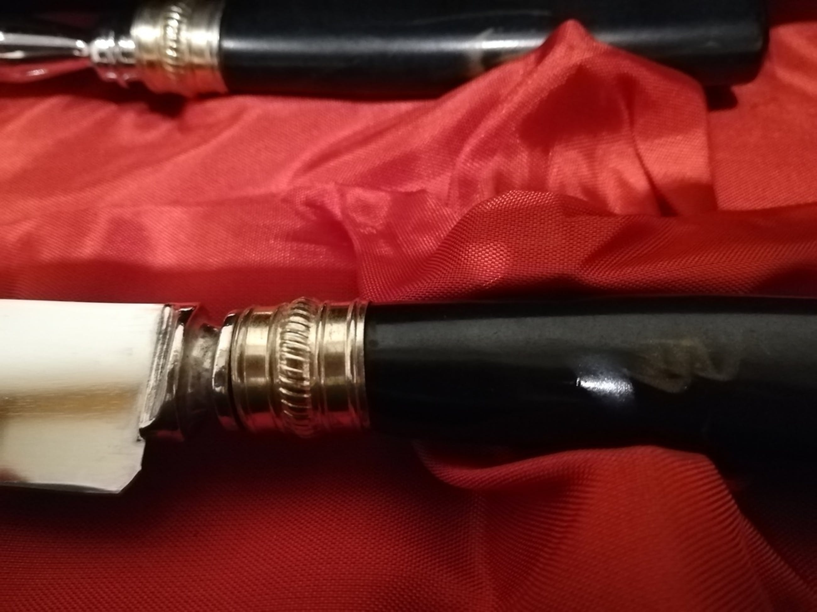 de ring tussen mes en handvat is verguld met bladgoud,