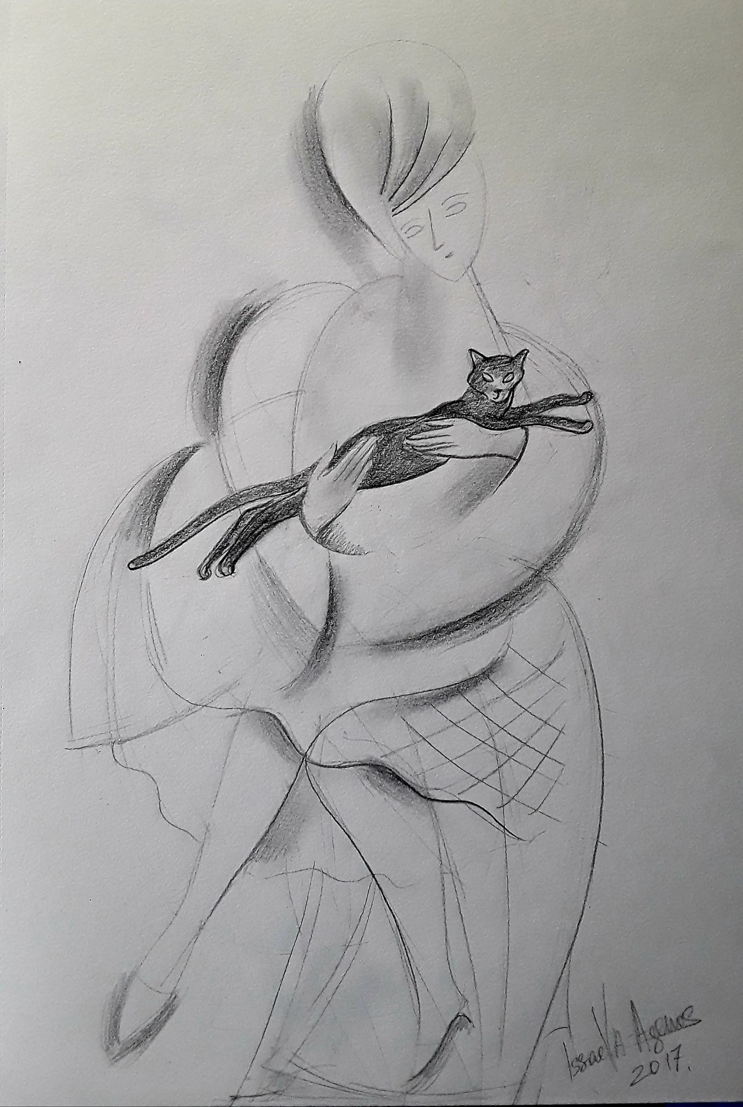 Ontdek deze originele tekening van een van Frankrijks meest uitzonderlijke kunstenaars. Deze magnifieke, zuivere lijntekening, "Vrouw met een kat", uit 2017, toont Veronika Issaeva-Agenos als een eclectische kunstenaar, die zich uitdrukt in verschillende disciplines: tekenen, ontwerpen, schilderen, decoreren en textiel.