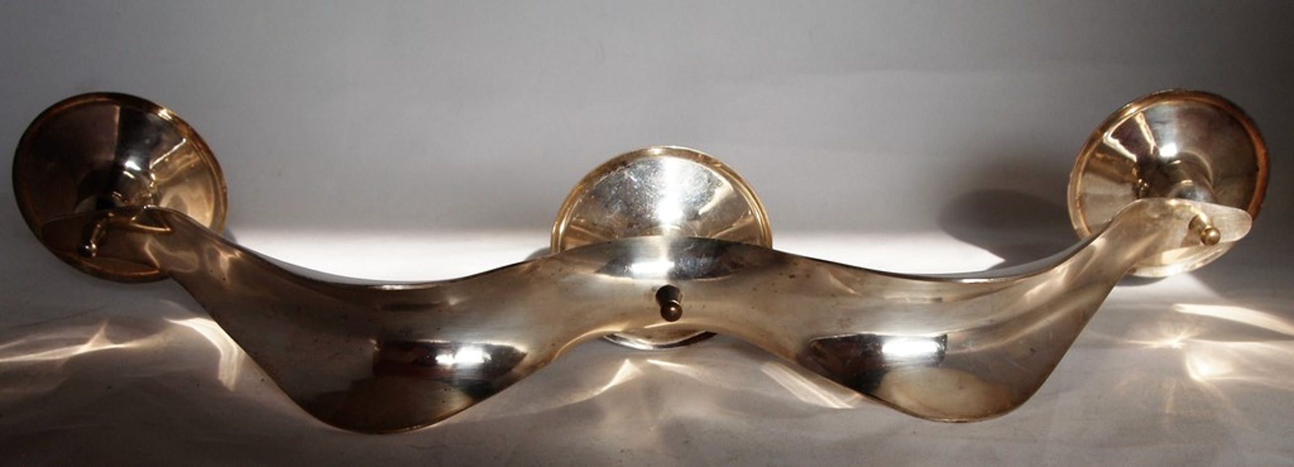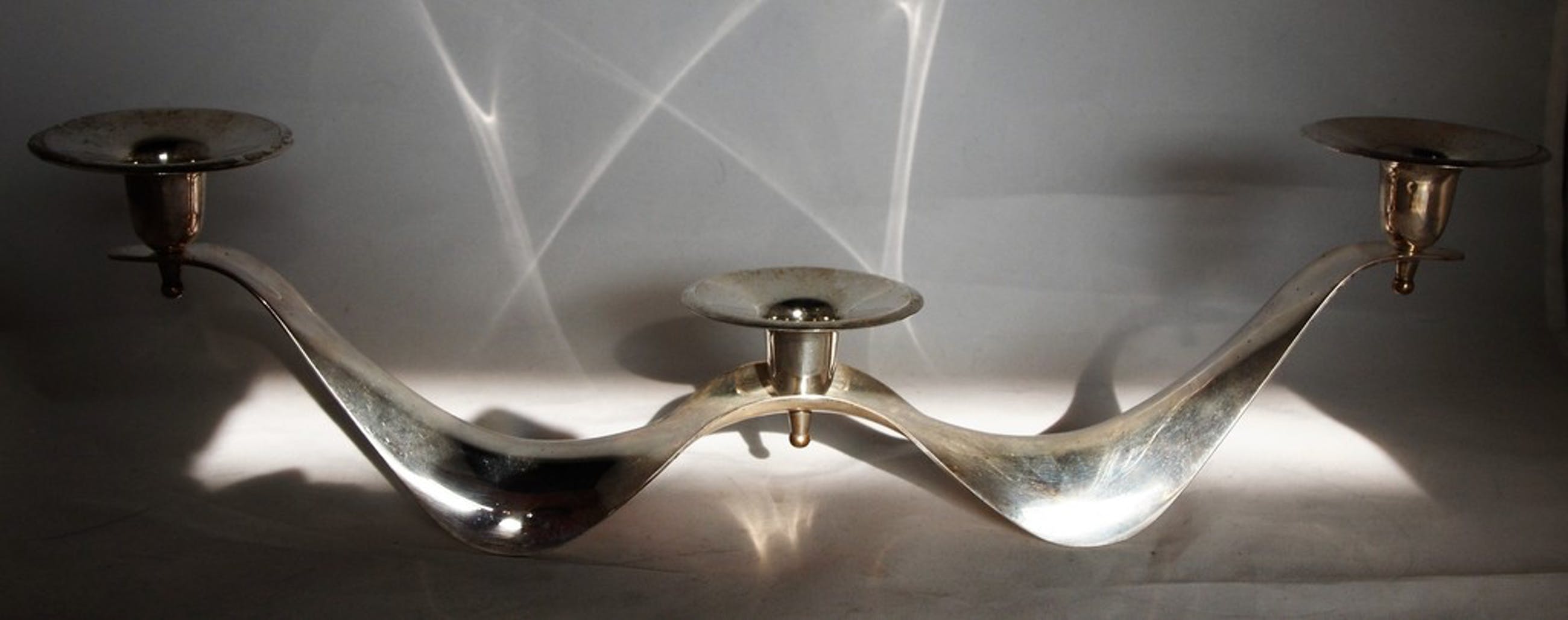 Mooie verzilverde fifties design kandelaar met drie armen. In prima onbeschadigde conditie. Niet gemerkt. Afmetingen;
