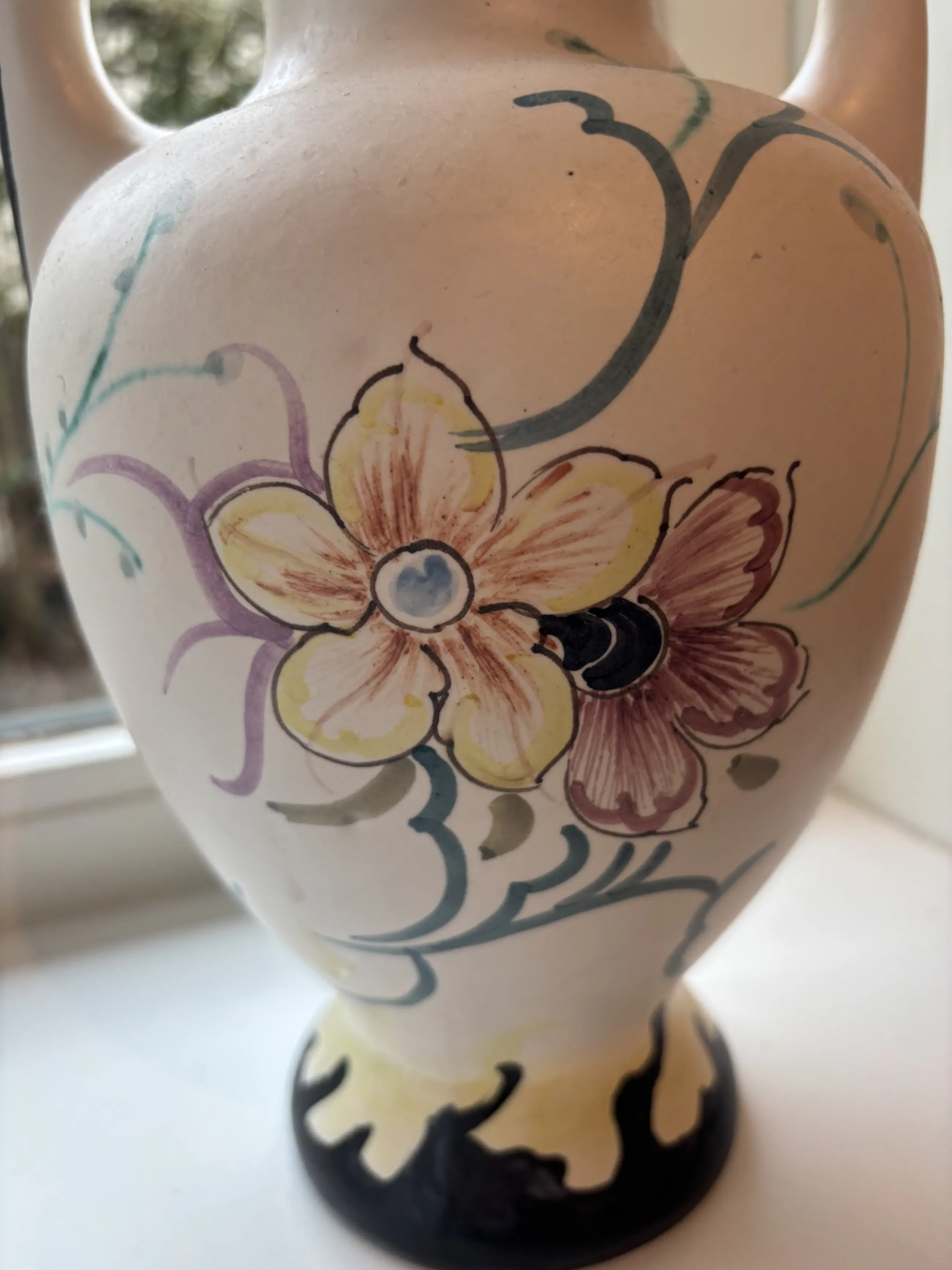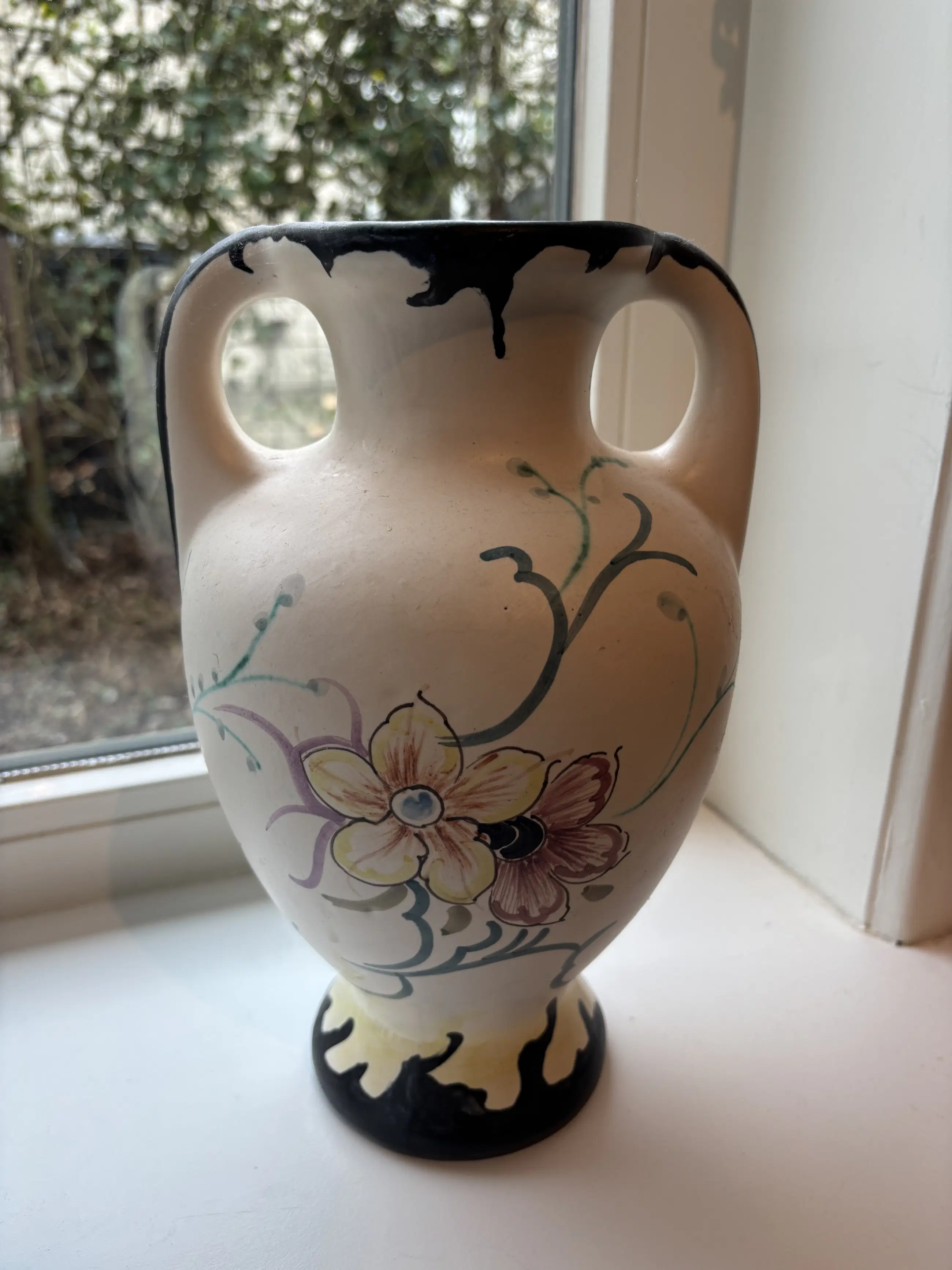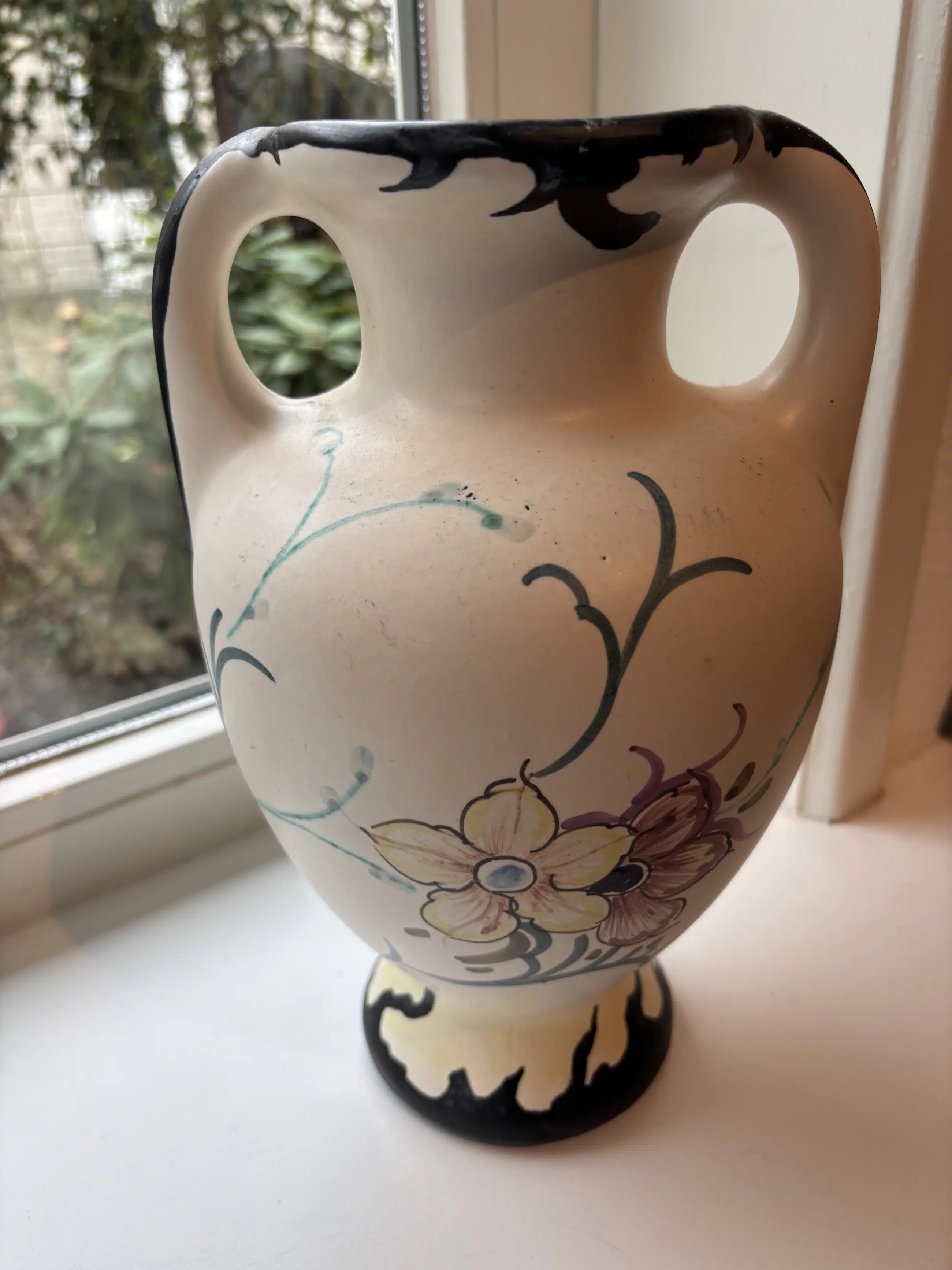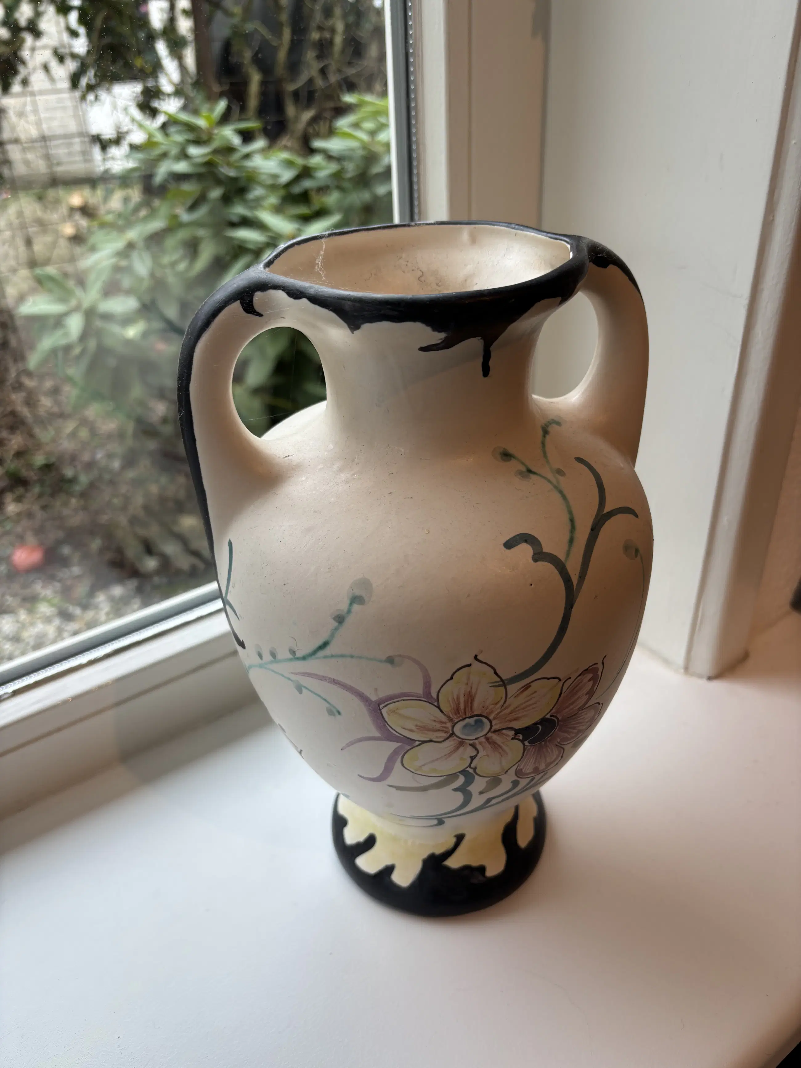 Mooie onbeschadigde mooie oorvaas. Van Gouda Holland, meet merktekens. 27,5 cm hoog met mooi beschildering.