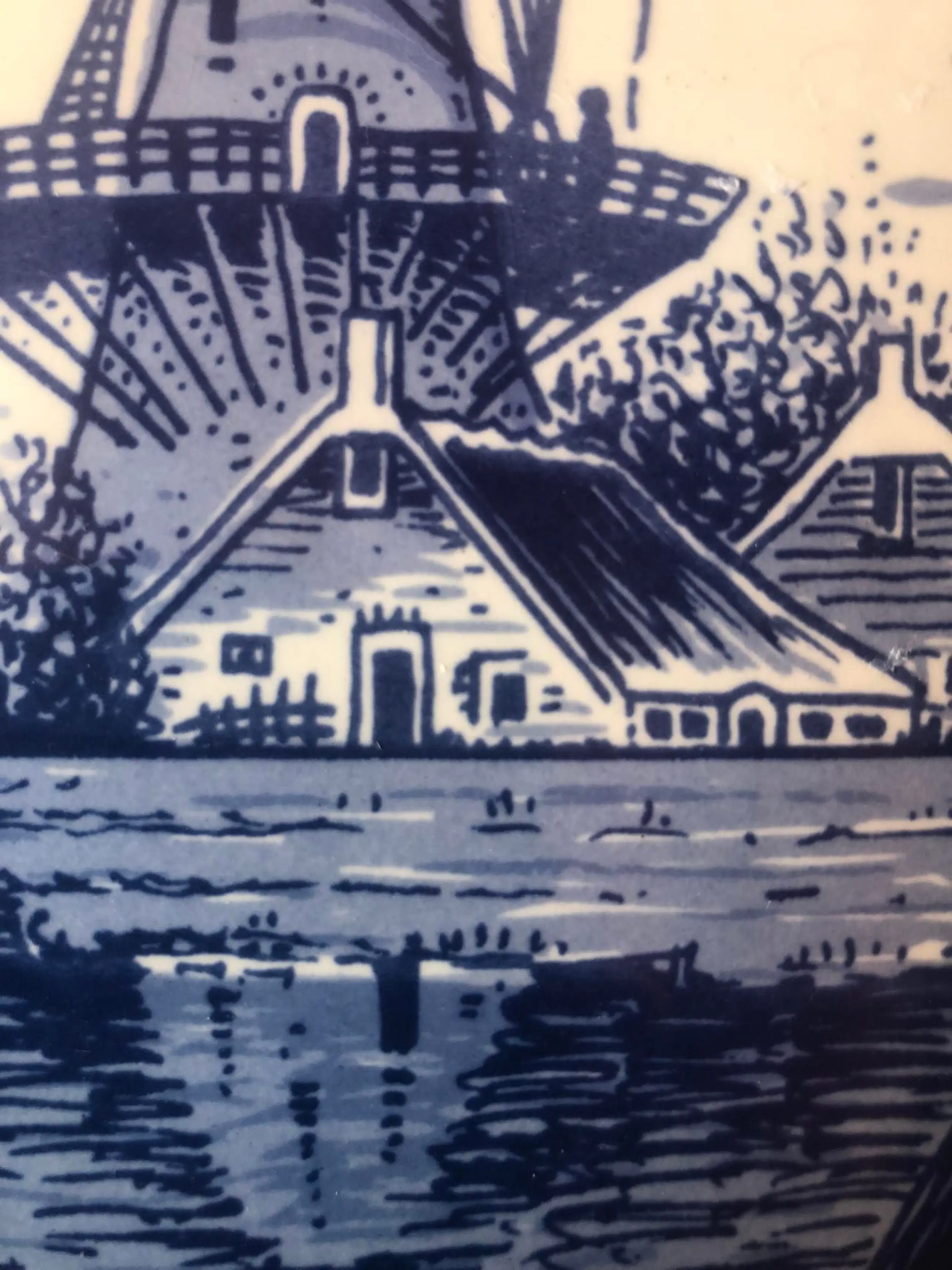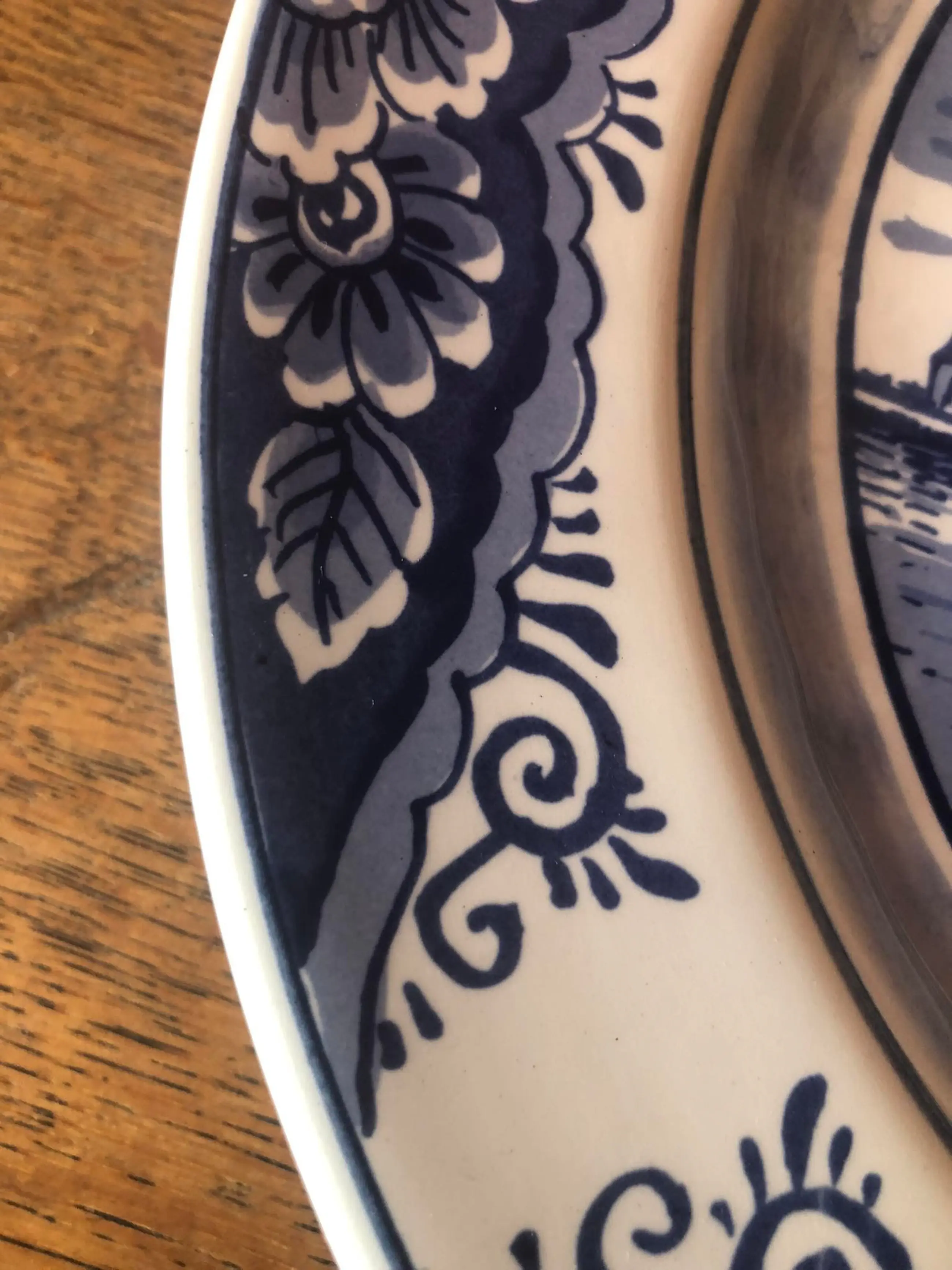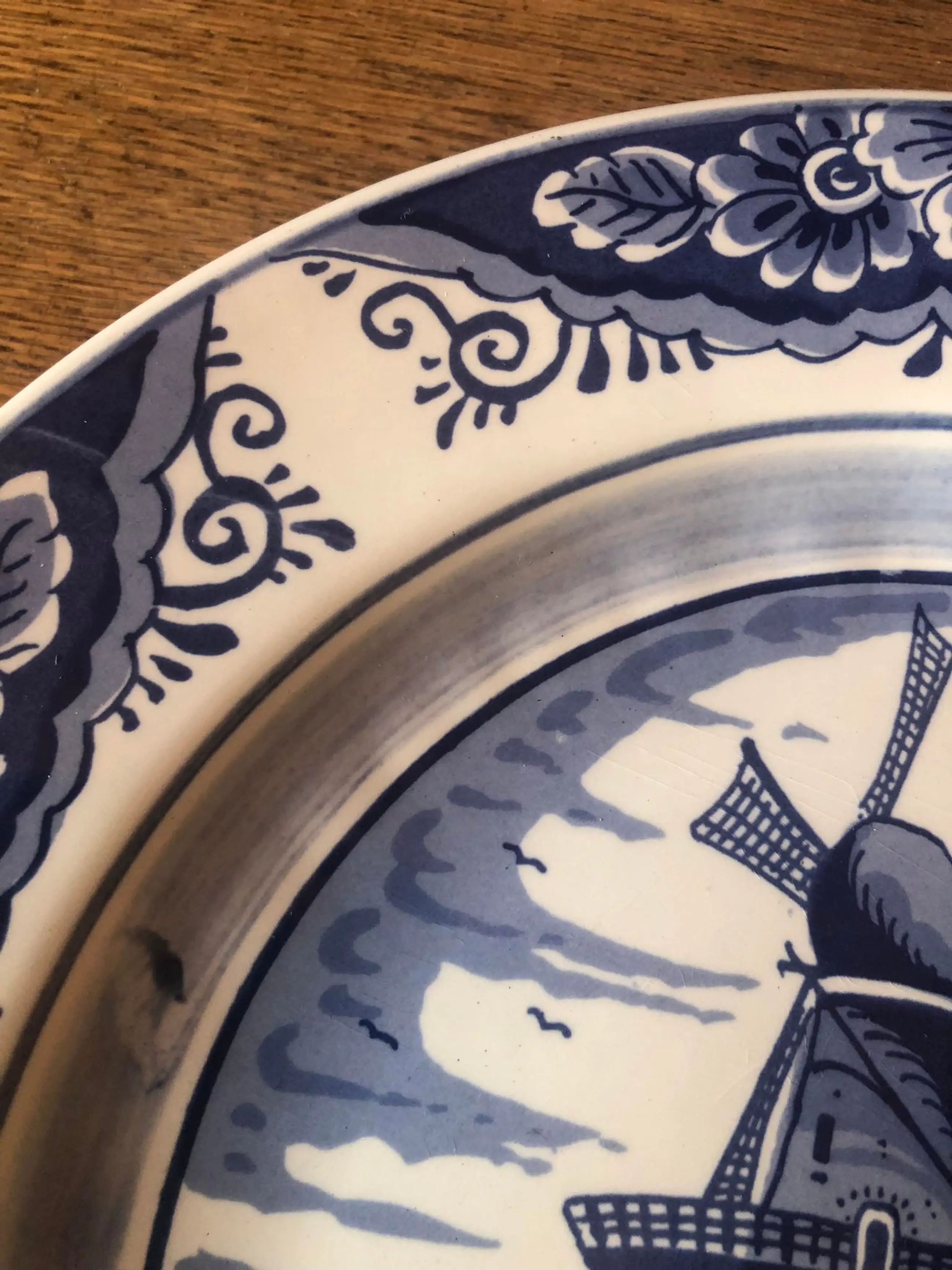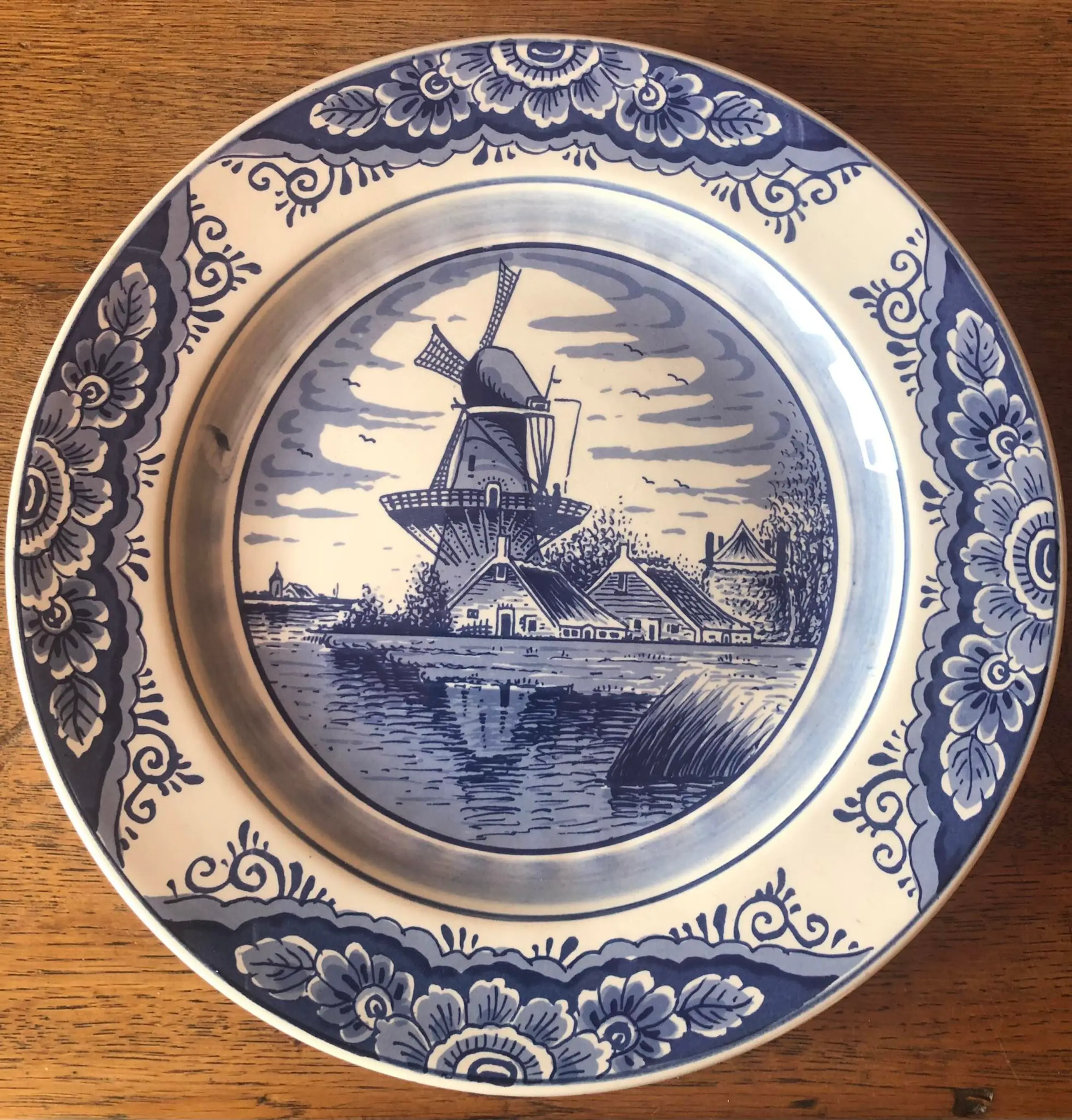 Prachtig puntgaaf bord met afbeelding van een molen aan de Zuiderzee van plateelfabriek Pyramide in Gouda. Pyramide was actief in de periode 1946-1994 en maakte vooral blauwwitte keramiek voor de souvenirmarkt.