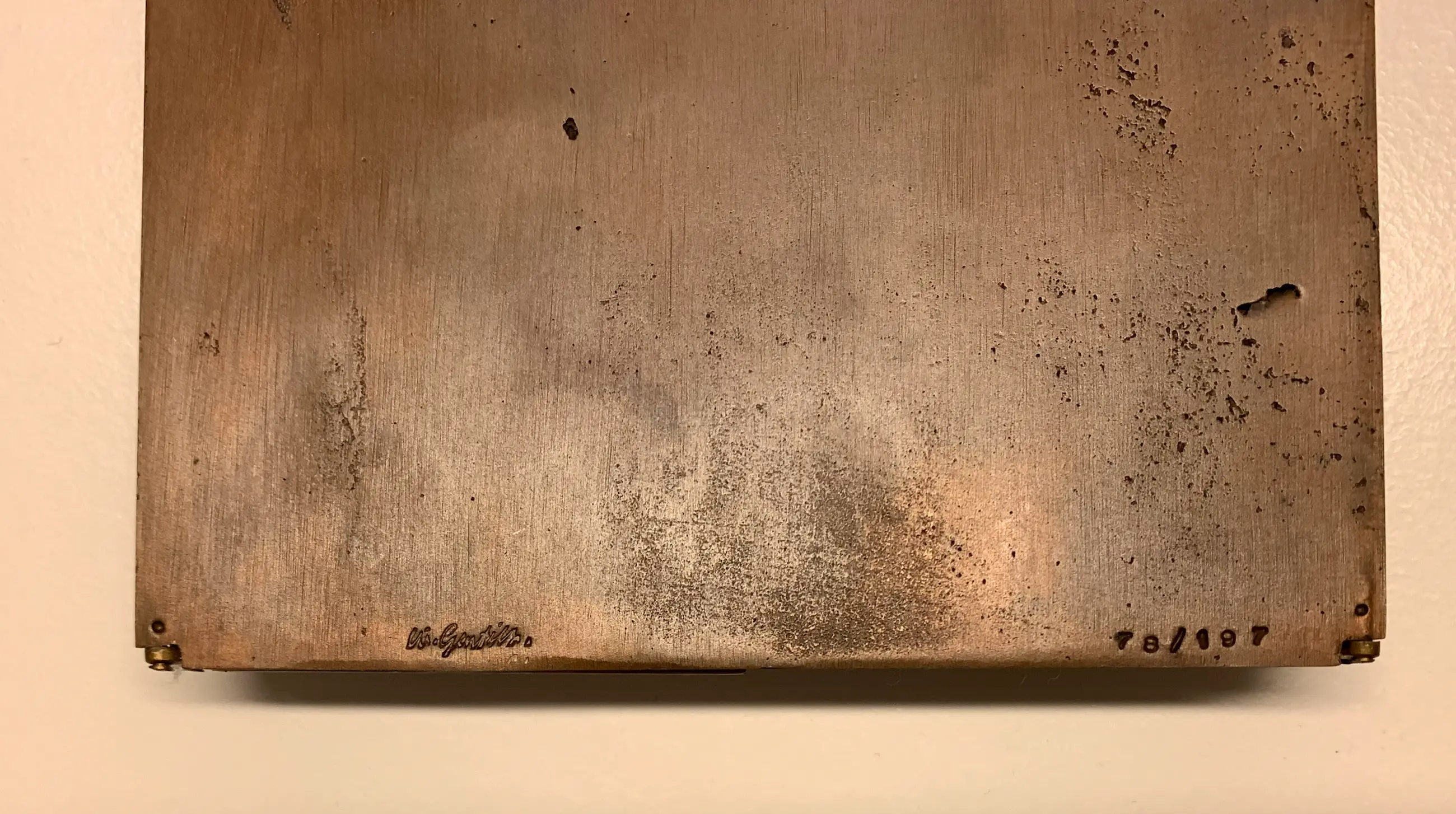 Afmeting boek: 45 x 34 x 3 cm. Afmeting Bronsje: 13 x 12 cm.