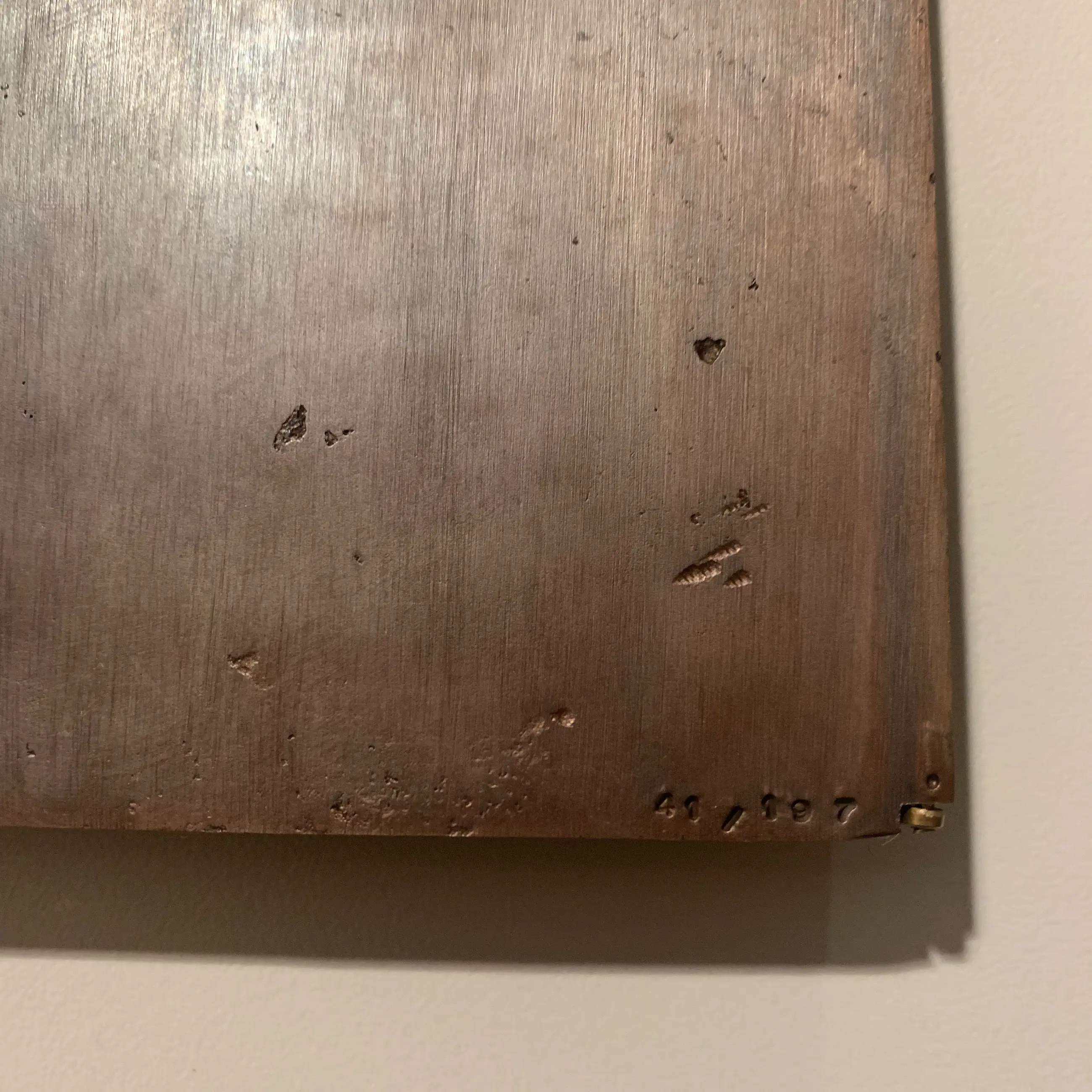 Afmeting boek: 45 x 34 x 3 cm. Afmeting Bronsje: 13 x 12 cm.