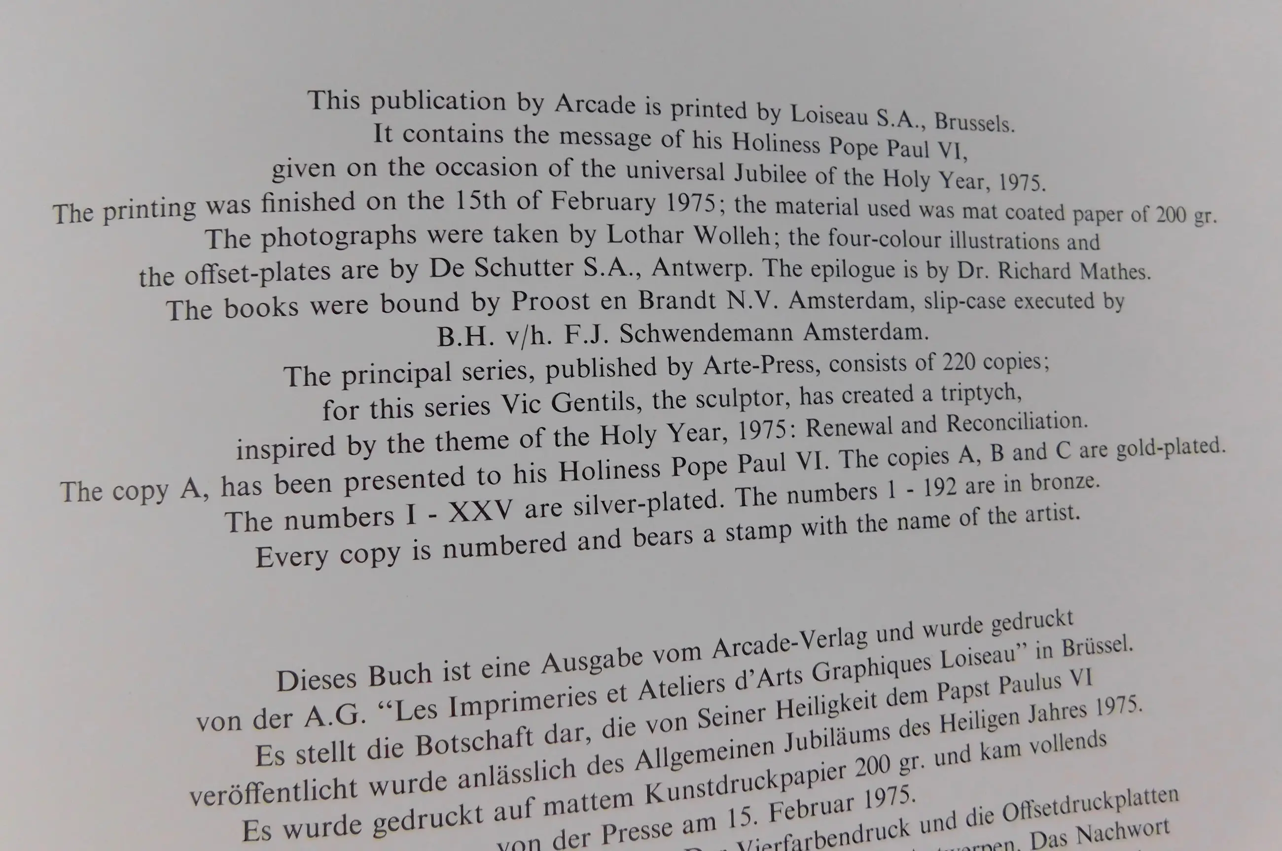 Het exemplaar A is aangeboden aan Zijne Heiligheid Paus Paulus VI. De exemplaren A, B en C zijn verguld.