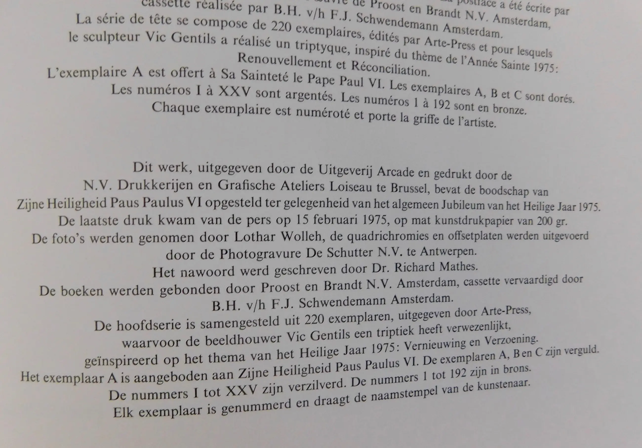 Het exemplaar A is aangeboden aan Zijne Heiligheid Paus Paulus VI. De exemplaren A, B en C zijn verguld.