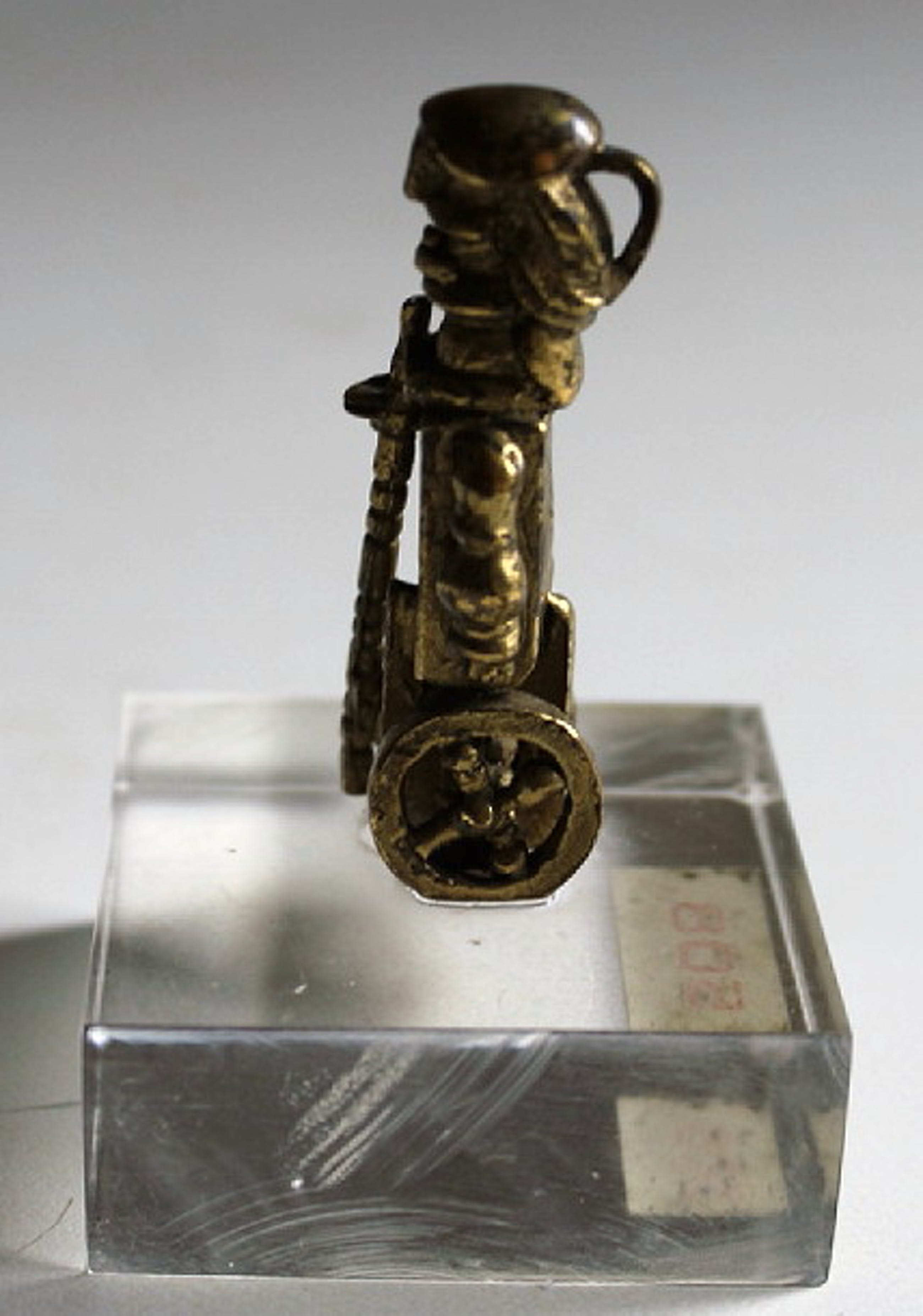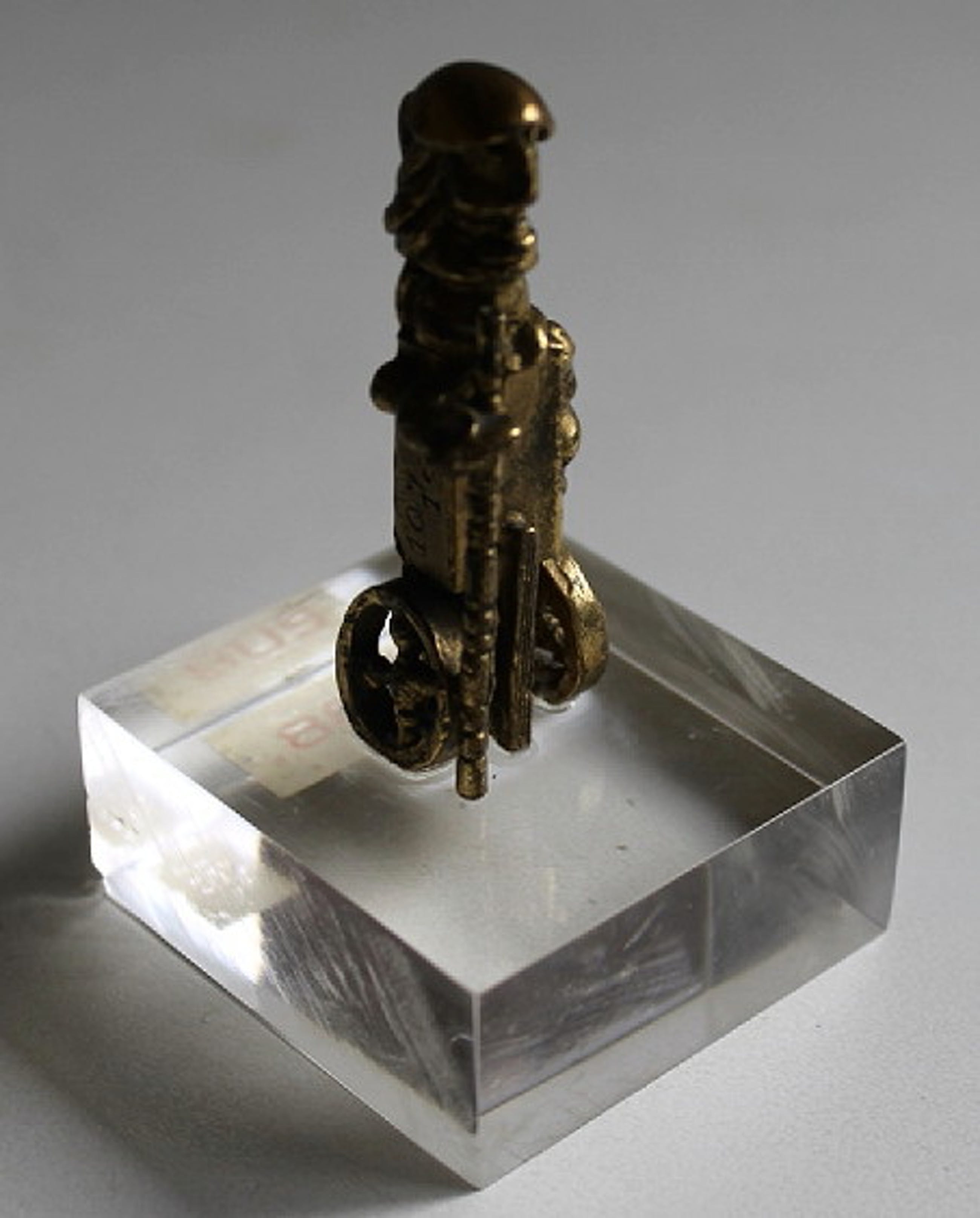 stuk schaakspel, loper in brons 107/125 op plexigas sokkel