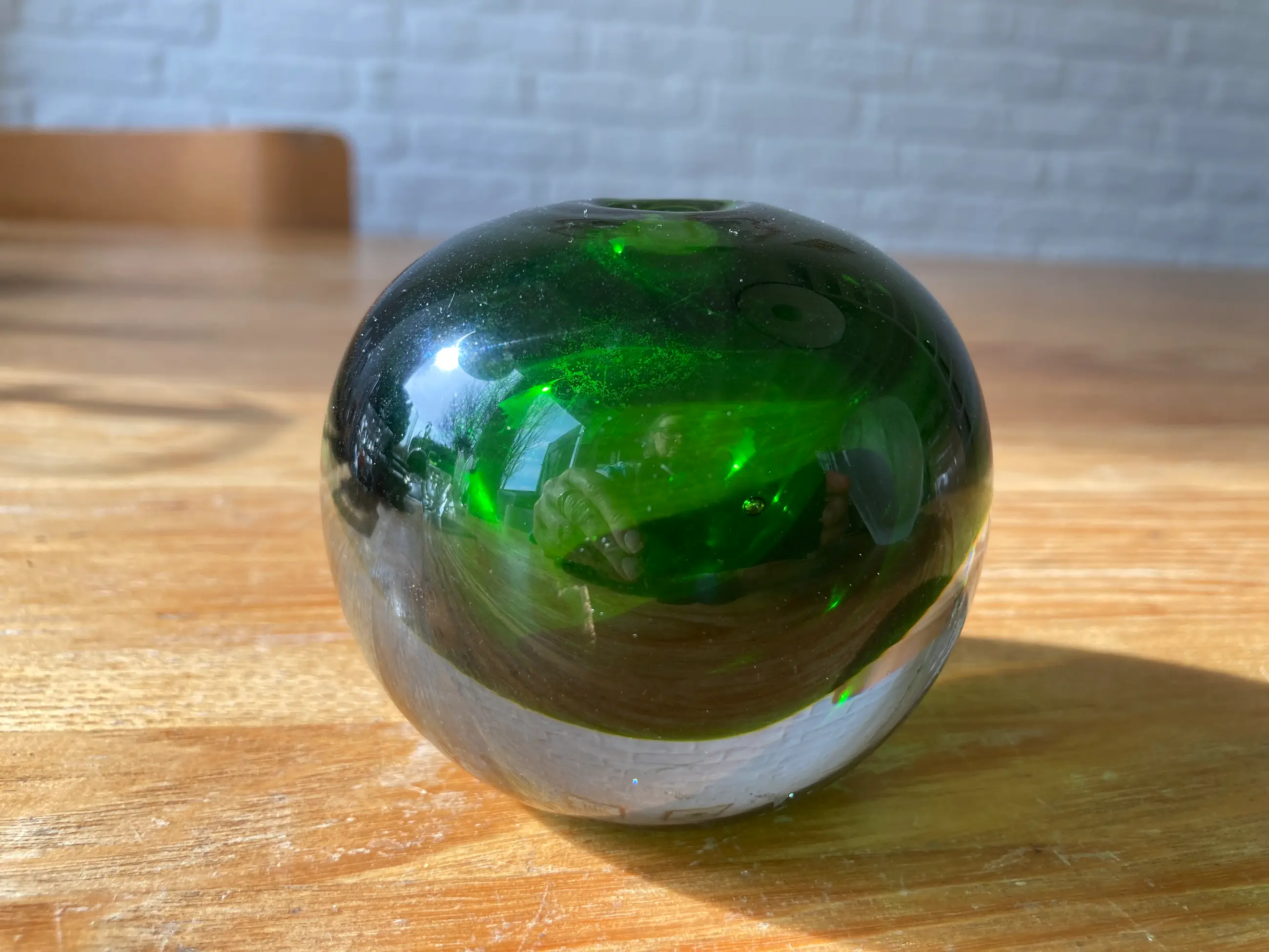 Prachtig, zwaar, helder vaasje door Vicke Lindstrand. Uit de 60 er jaren.