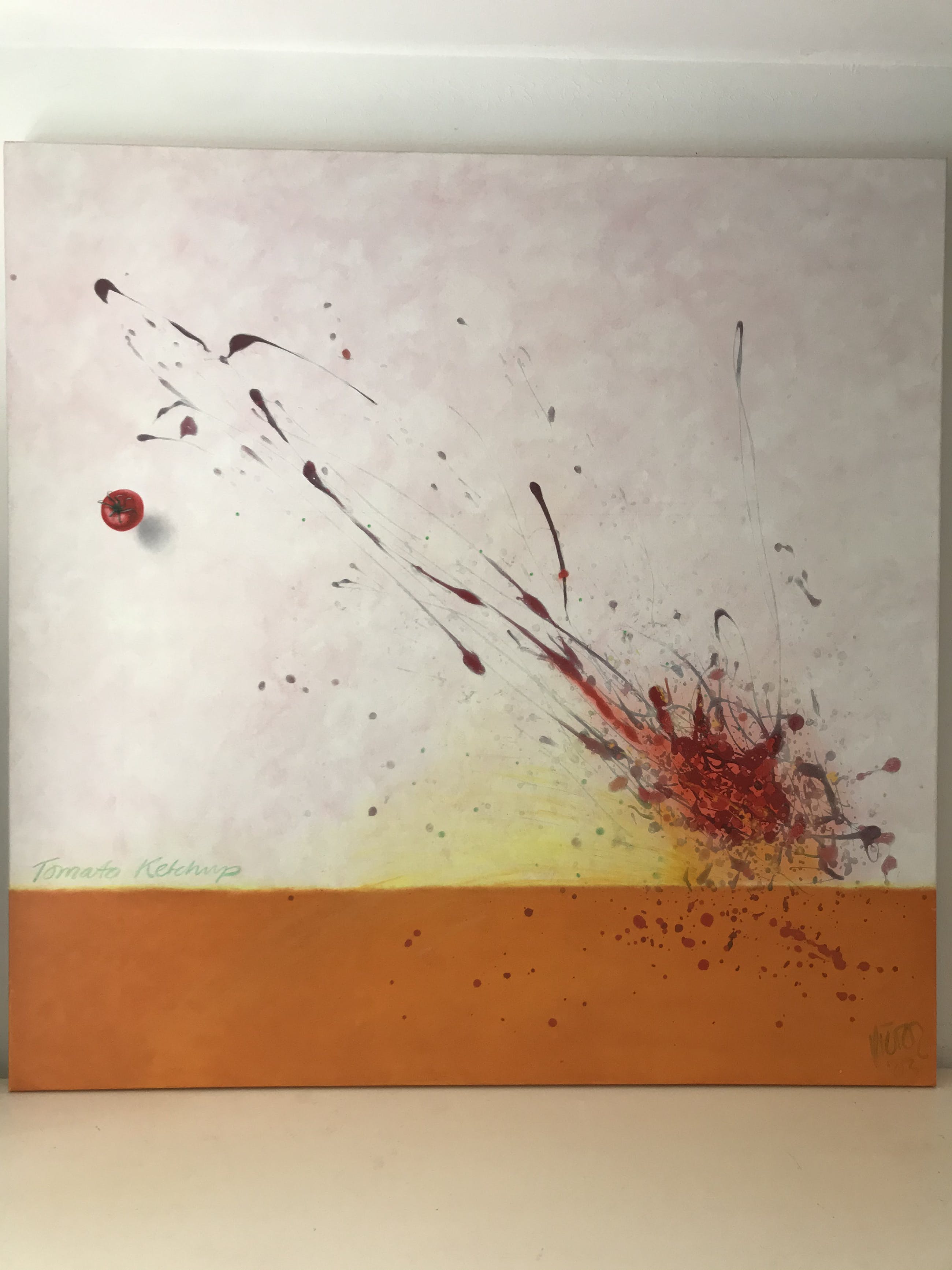 Groot schilderij, altijd in onze eetkamer gehangen, direct van de kunstenaar gekocht