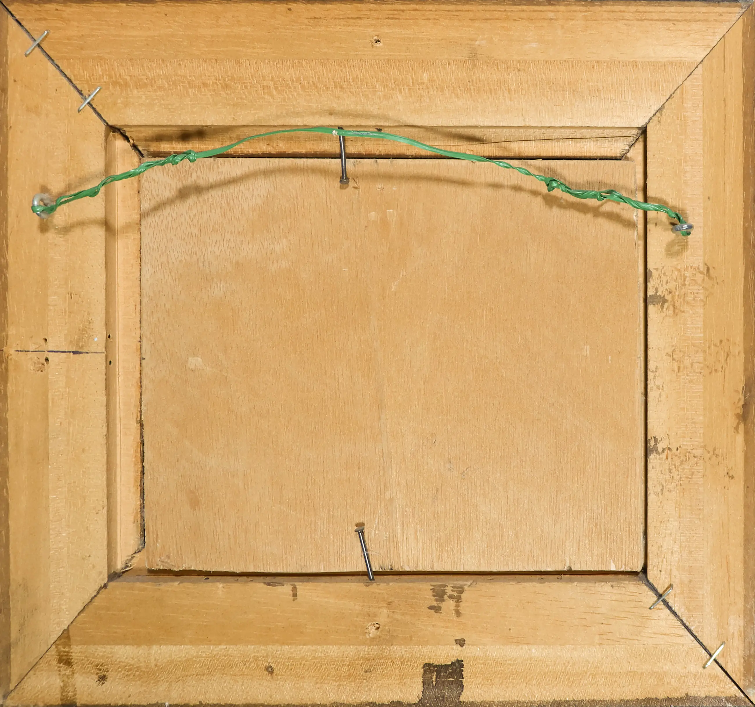 | Het beeld zit wat scheef in de lijst. Daarnaast is het vernis wat vergeeld en vuil. | |||||||||||