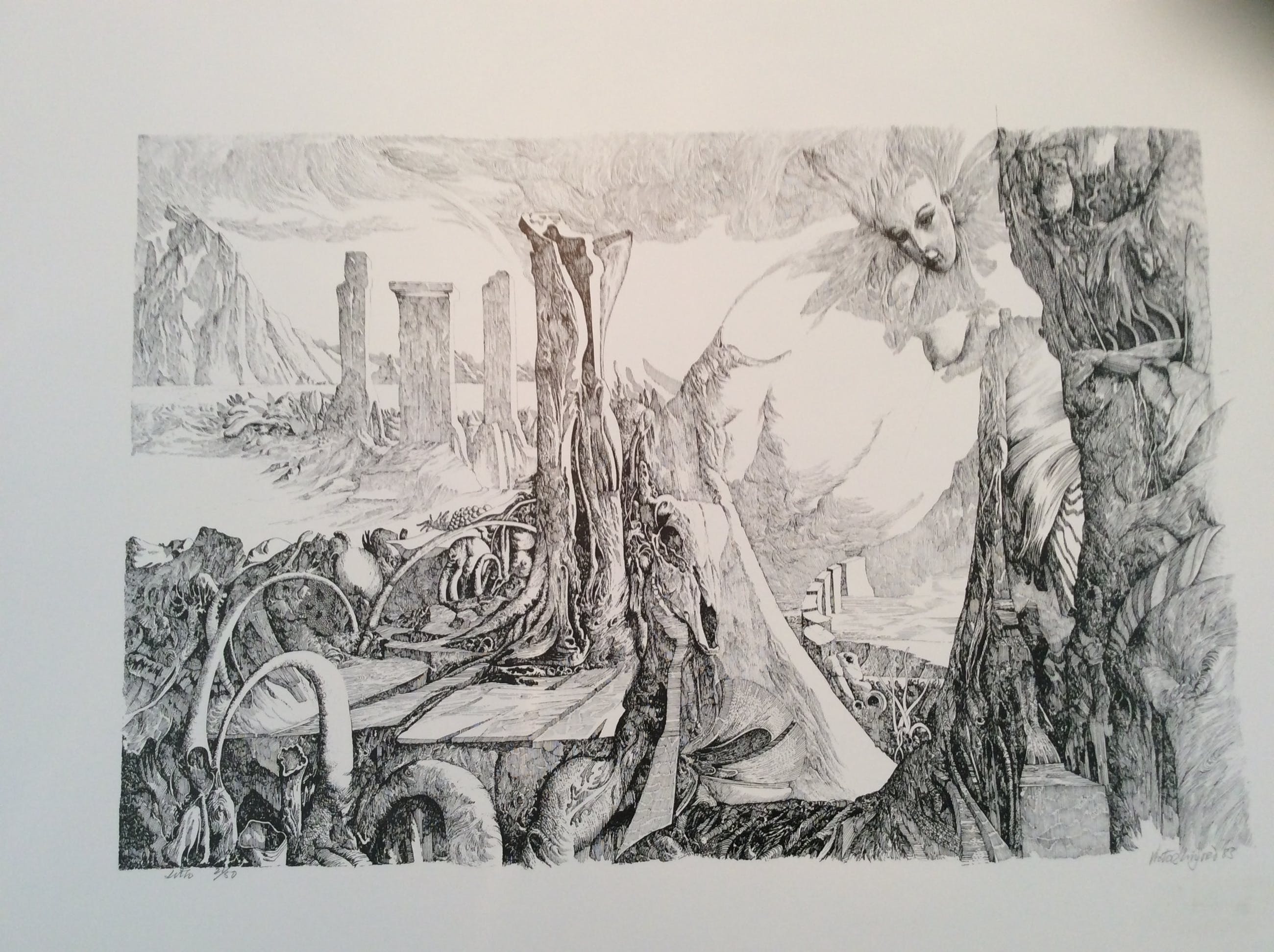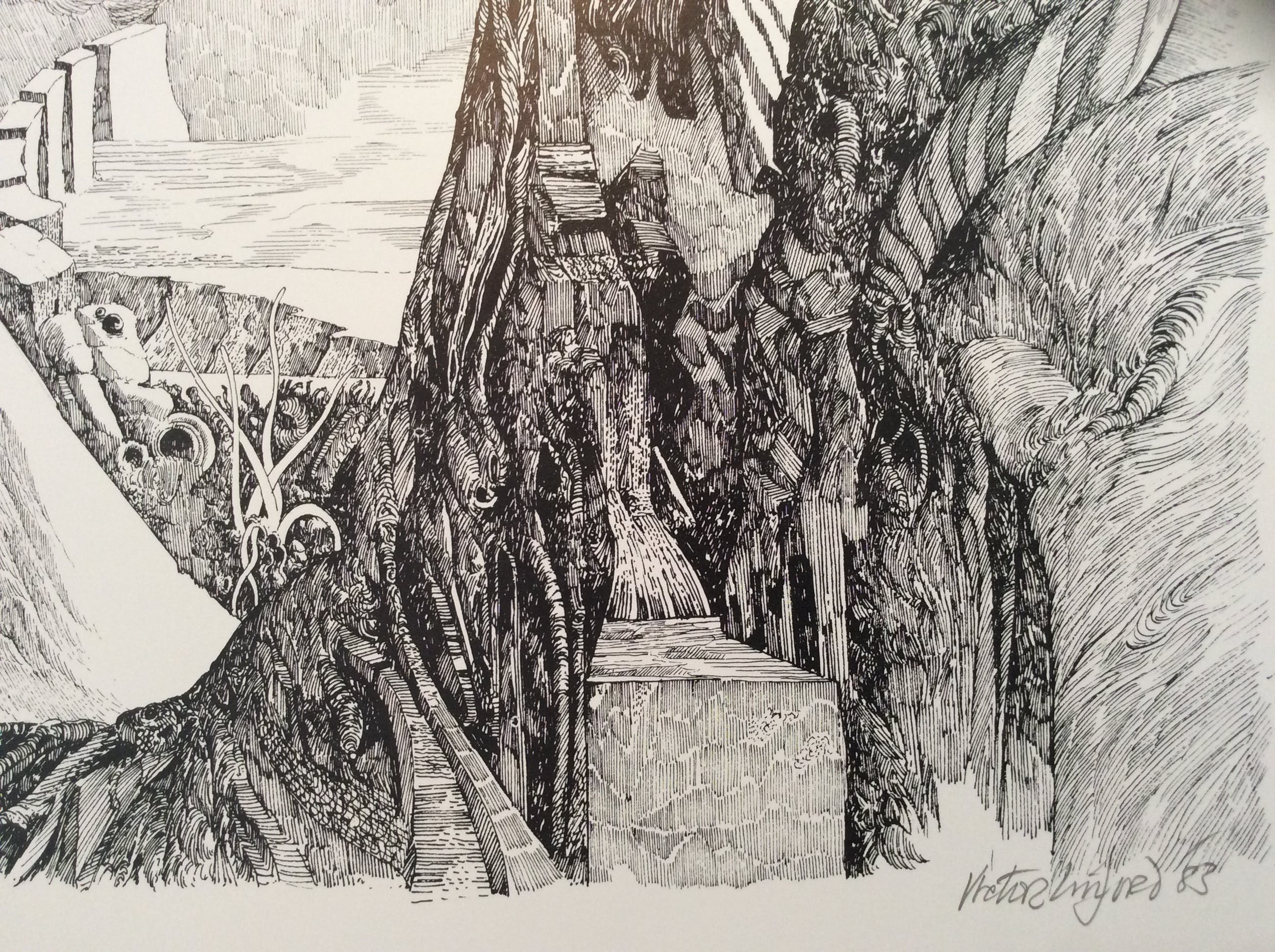 Mooie litho van Victor Linford uit 1983 van een pentekening. Genummerd en gesigneerd. Nummer 21/50. In zeer goede staat. Afmeting afbeelding 60 x 40 cm.