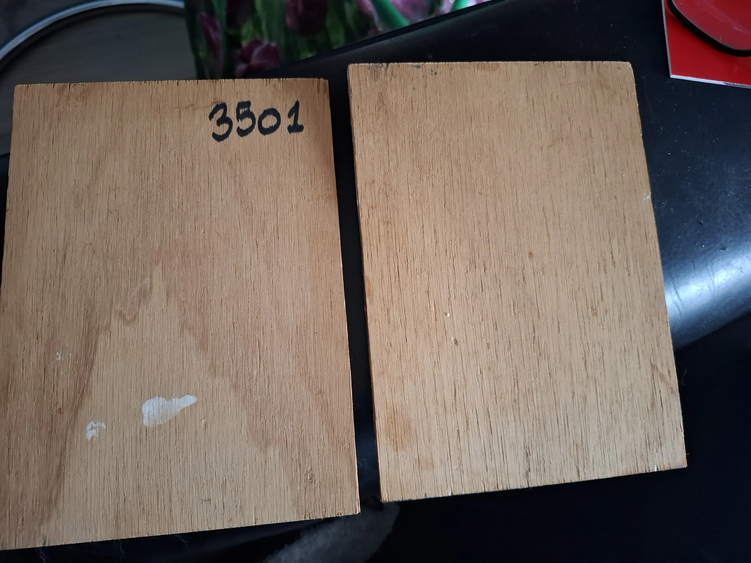 2 paneeltjes (20x15 cm), olieverf op hout: karakteristiek vrouwelijk portret en karakteristiek mannelijk portret, door Victor van Neer, geboren Gouda 19-11-1918.