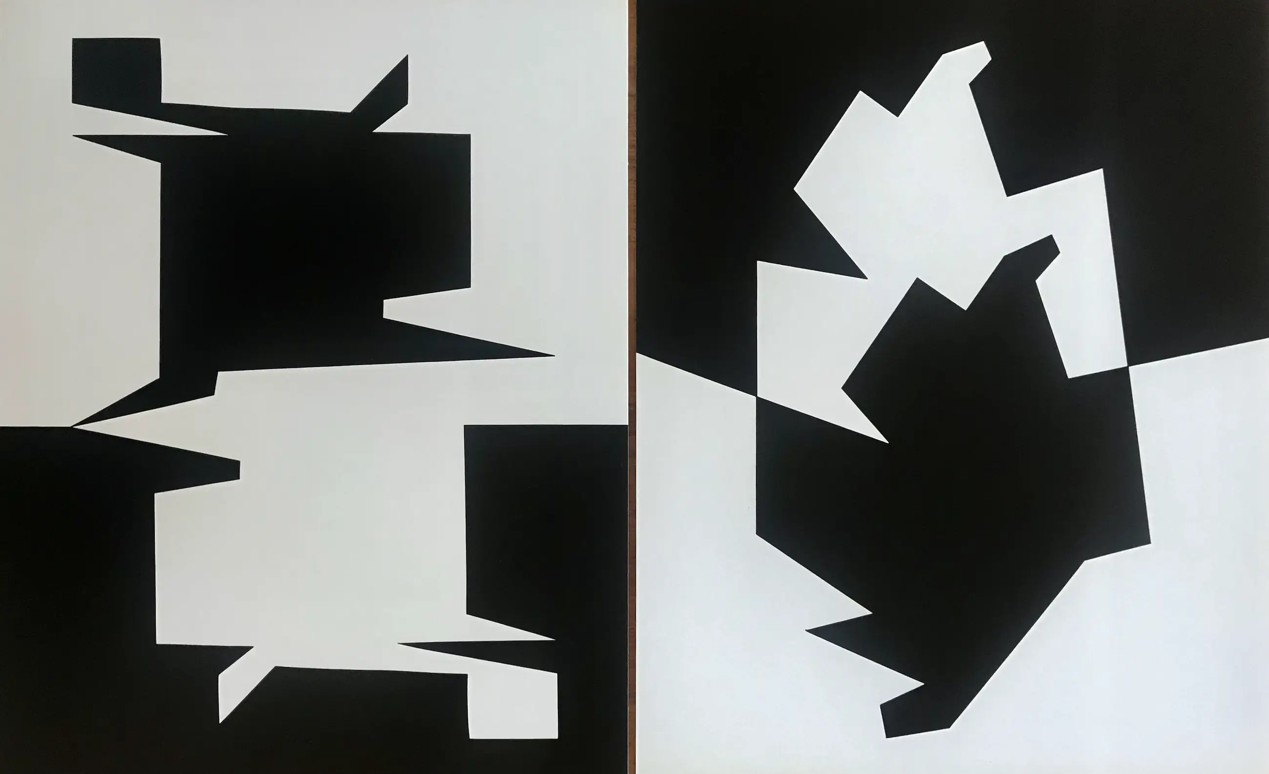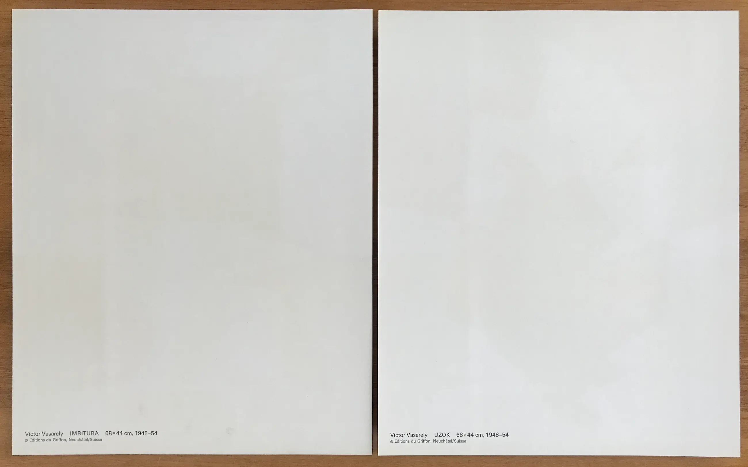 Kunstenaar: Victor Vasarely Titel van de kunstwerken: IMBITUBA Gebaseerd op het originele werk van Vasarely uit 1948 - 1954 (68x44 cm) UZOK Gebaseerd op het originele werk van Vasarely uit 1948 - 1954 (68x44 cm)