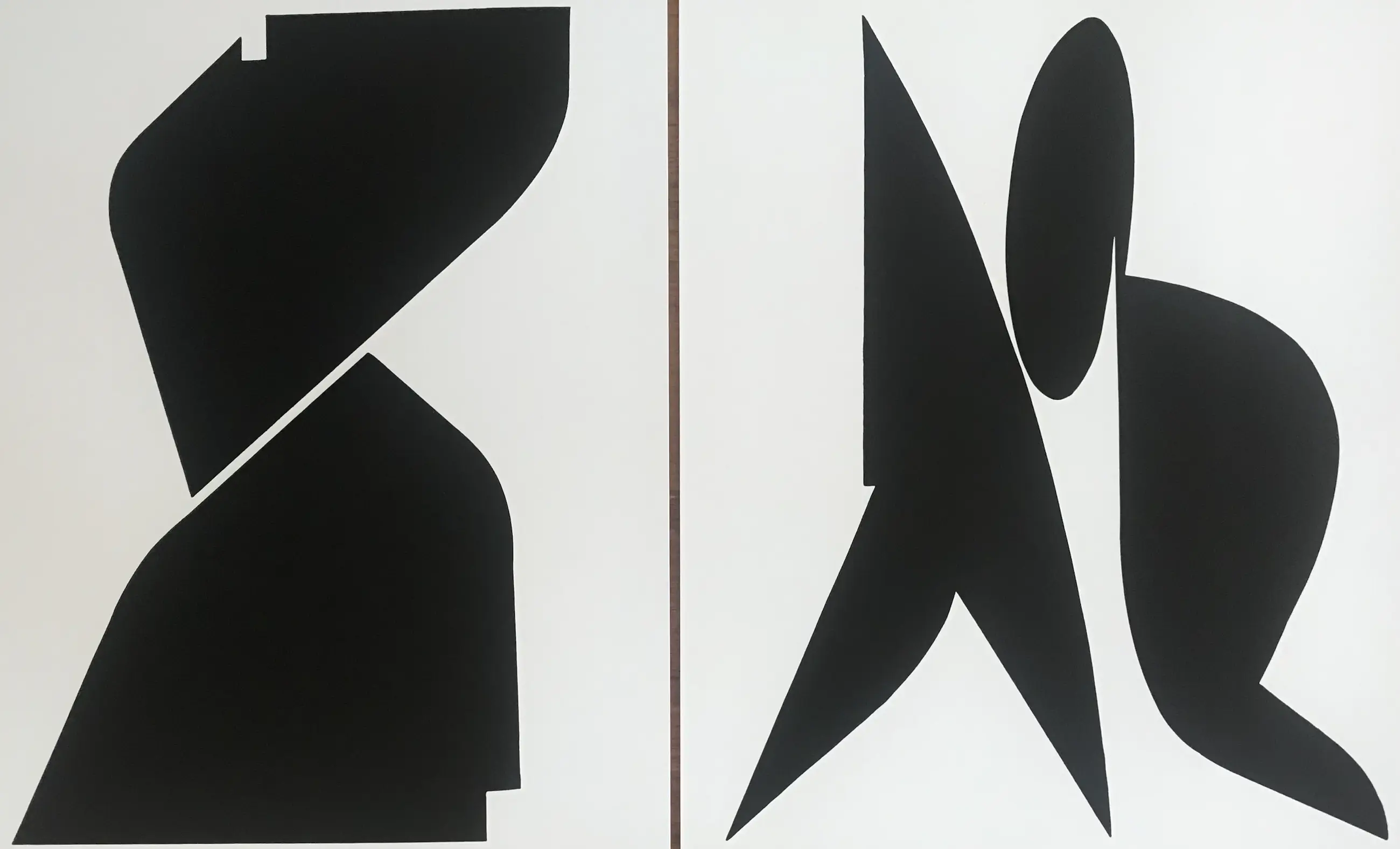 Kunstenaar: Victor Vasarely Titel van de kunstwerken: KANDAHAR Gebaseerd op het originele werk van Vasarely uit 1948 - 1954 (68x44 cm) DOROG Gebaseerd op het originele werk van Vasarely uit 1948 - 1954 (68x44 cm)
