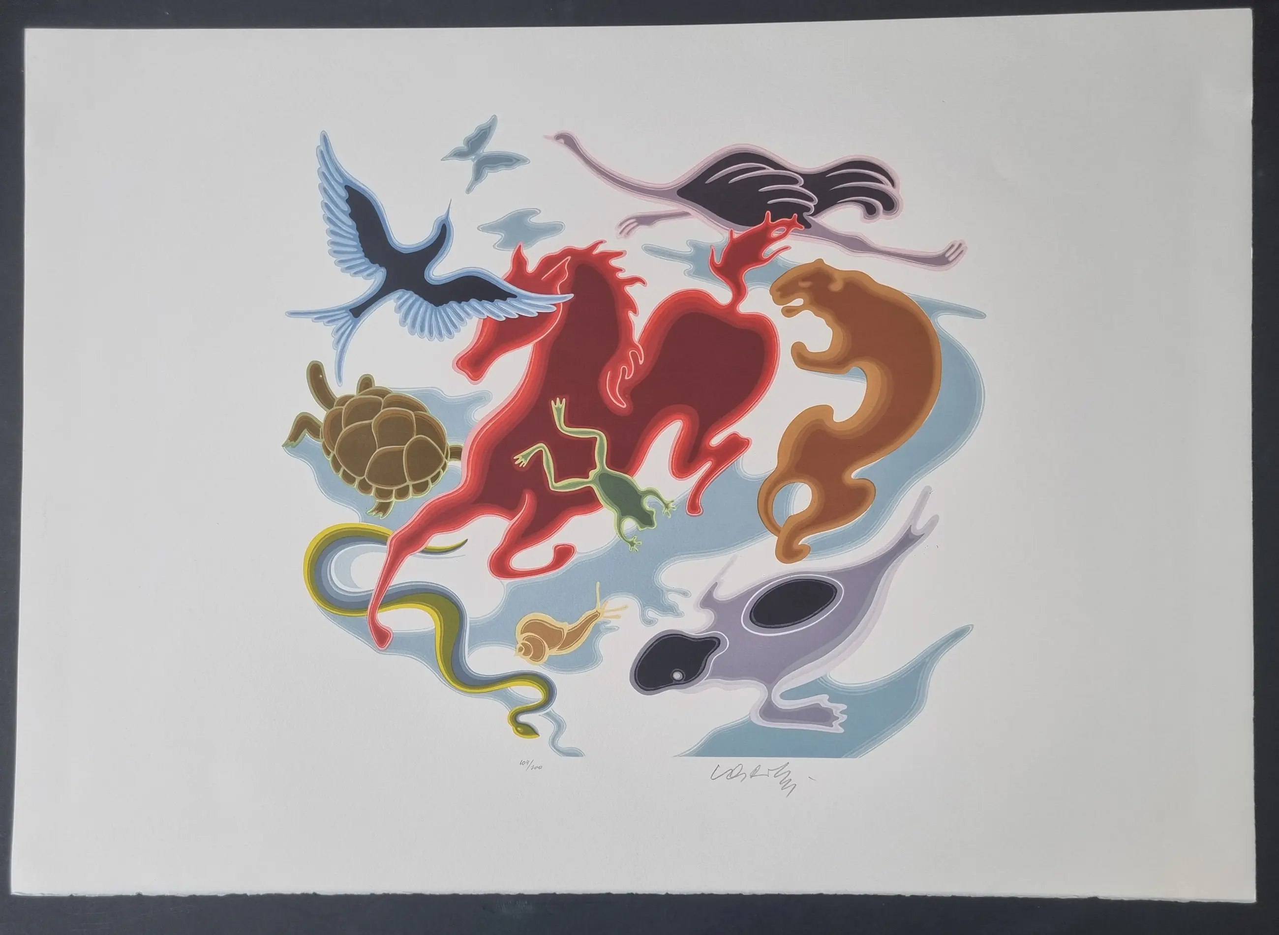 Kleurenlithografie op BFK Rives papier gerealiseerd in 1986. Het behoort tot de suite "Origines". Handgesigneerd in potlood rechtsonder. Oplage 104/200.