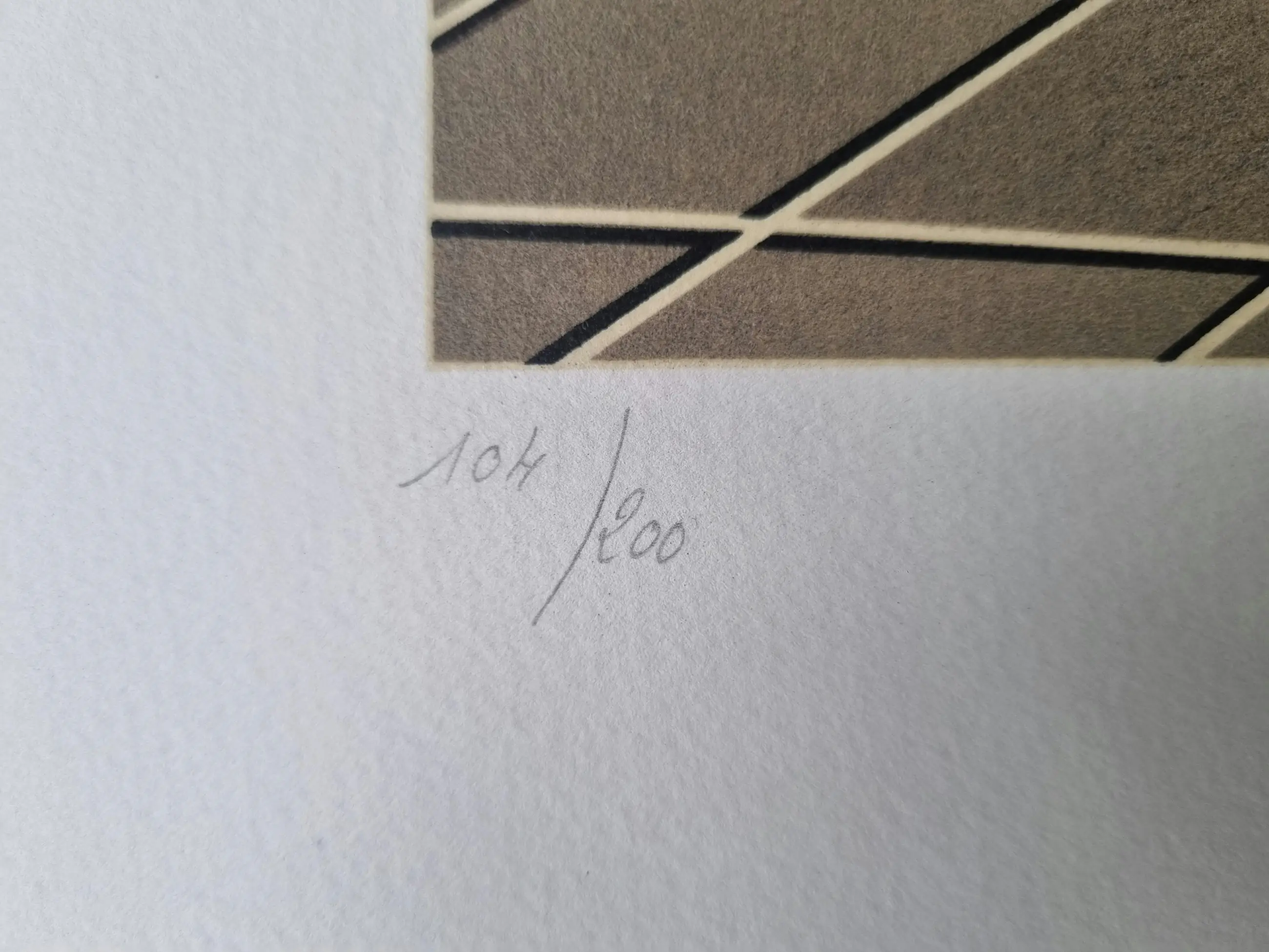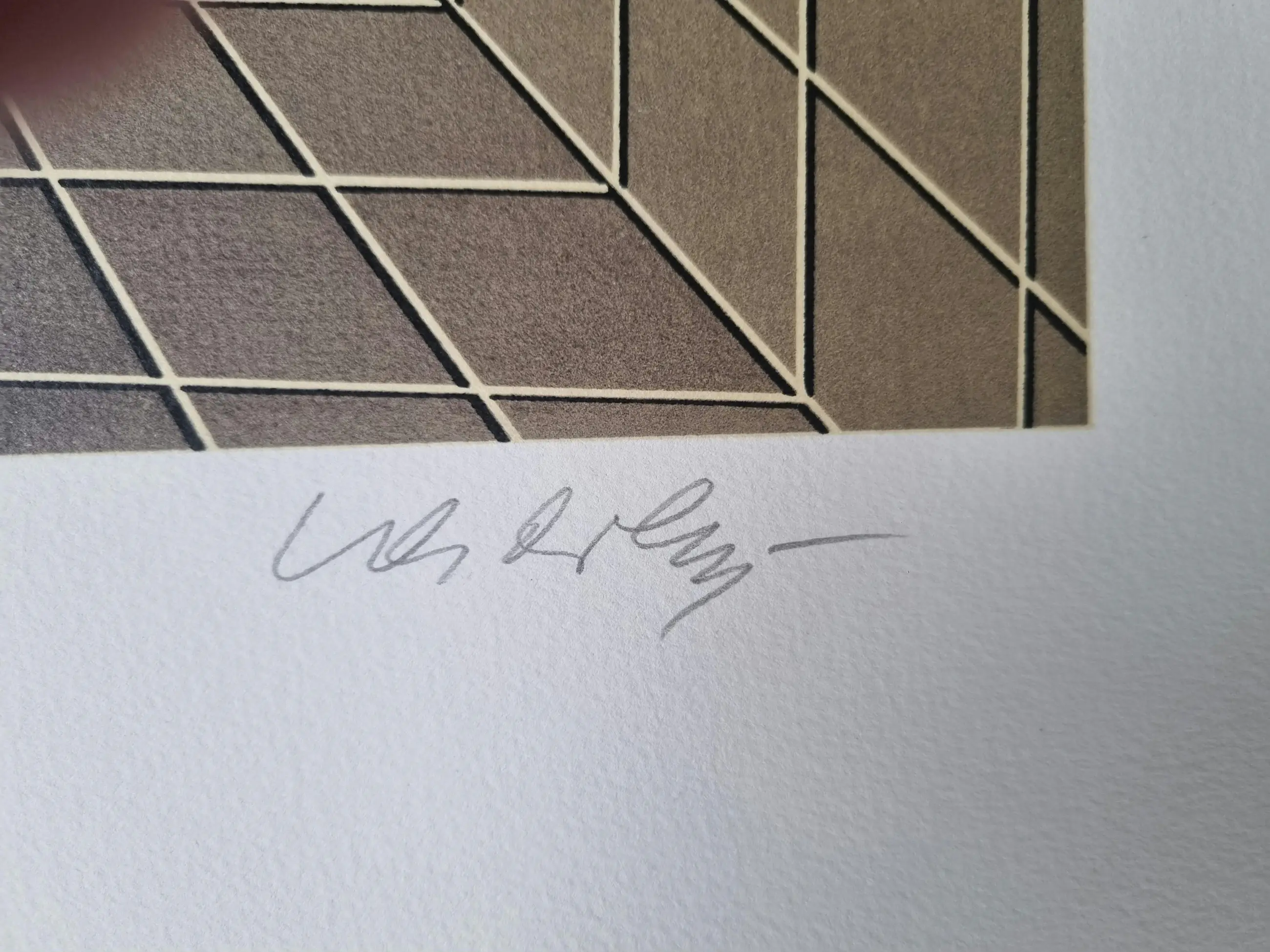 ✔️ Victor Vaserely litho uit 1986 ✔️ Titel : Etude de perspective uit de serie 'Origines' ✔️ Met de hand gesigneerd en genummerd ✔️ Afmeting blad: 54 cm x 76 cm ✔️ Afm.afbeelding : 41 cm x 59 cm ✔️ Conditie: zeer goed