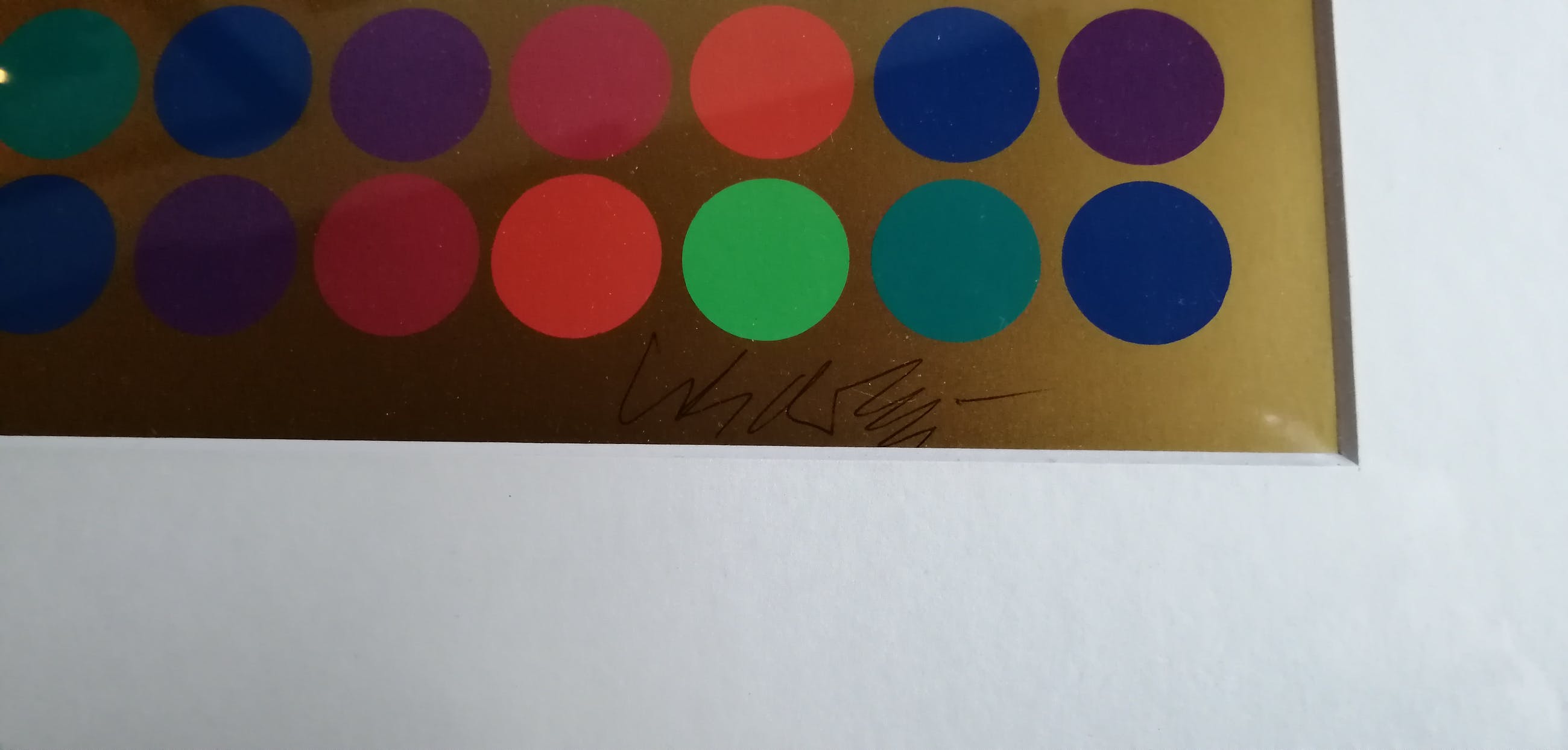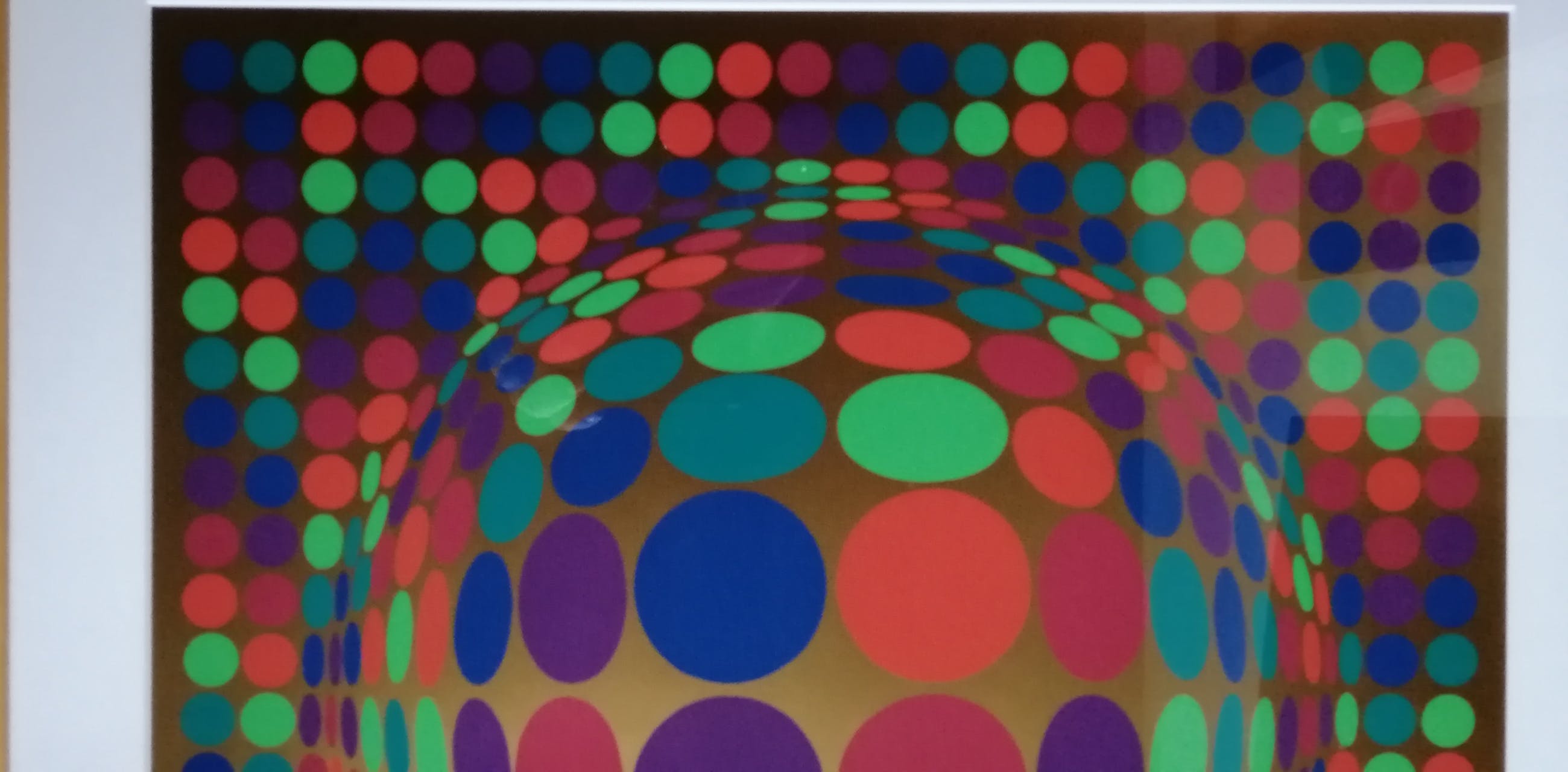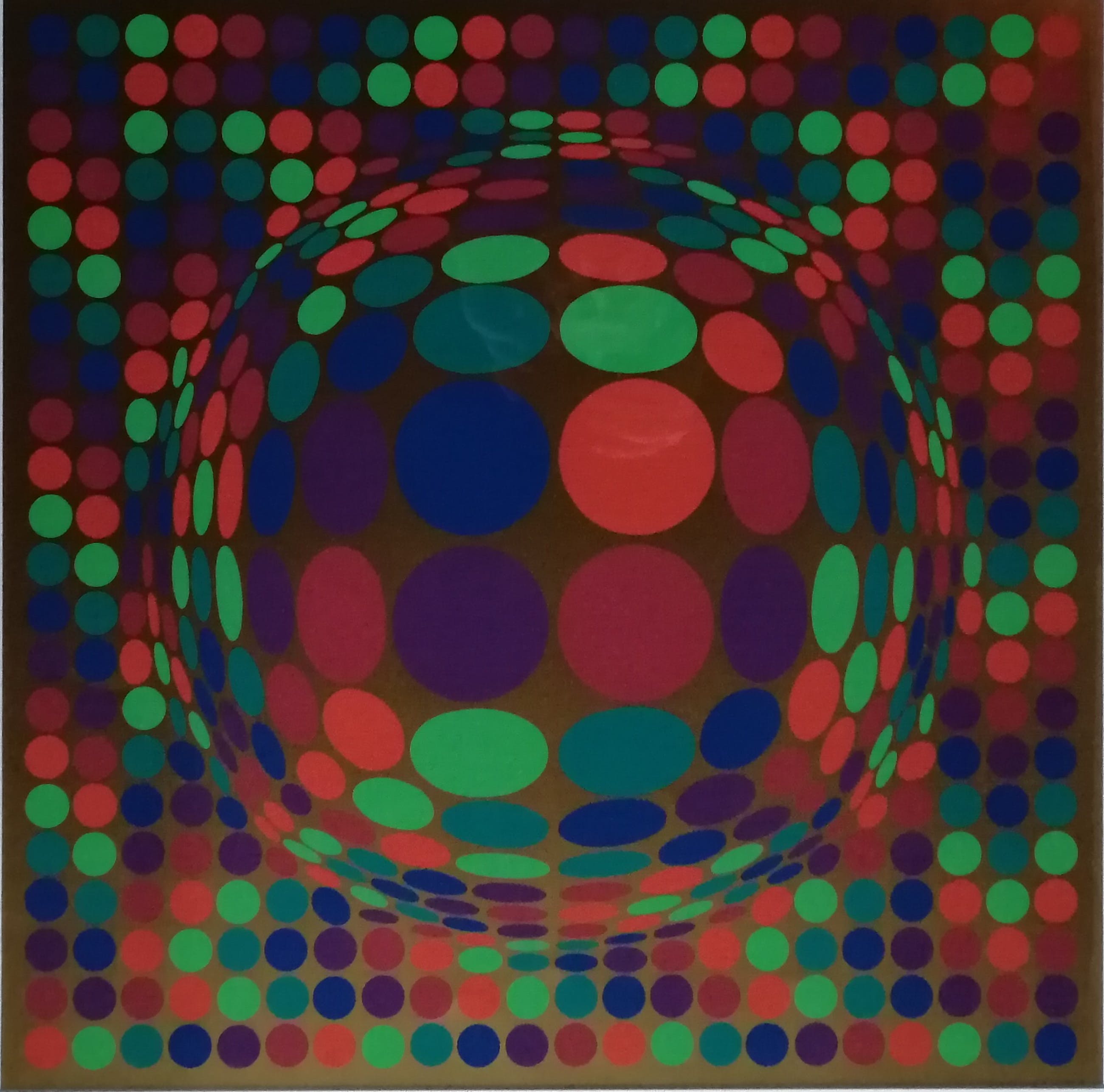 Prachtige zeefdruk in kleuren.Gesigneerd rechtsonder.Mooie blank houten inlijsting.Victor Vasarély werd geboren te Pécs (Hongarije) op 9 april 1906 en overleed te Parijs op 15 maart 1997. Hij genoot zijn opleiding aan de Academie te Boedapest.In 1930 ging hij naar Parijs. Verzend- en verpakkingskosten binnen Nederland 20,00 euro.