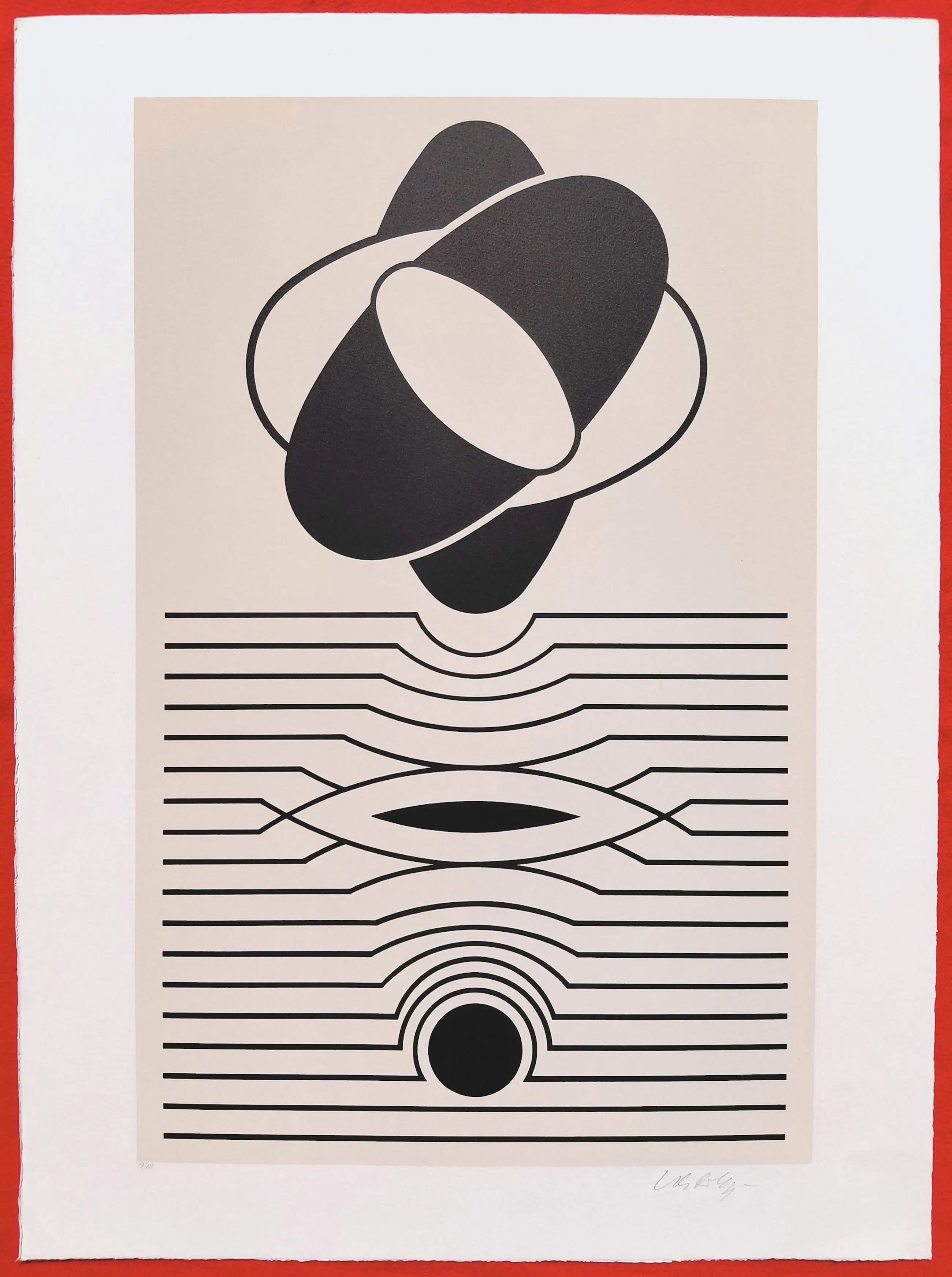 Strakke Op-Art compositie van Victor Vasarely. Zeefdruk op geschept papier, met potlood gesigneerd en genummerd (19/150). In uitstekende conditie.