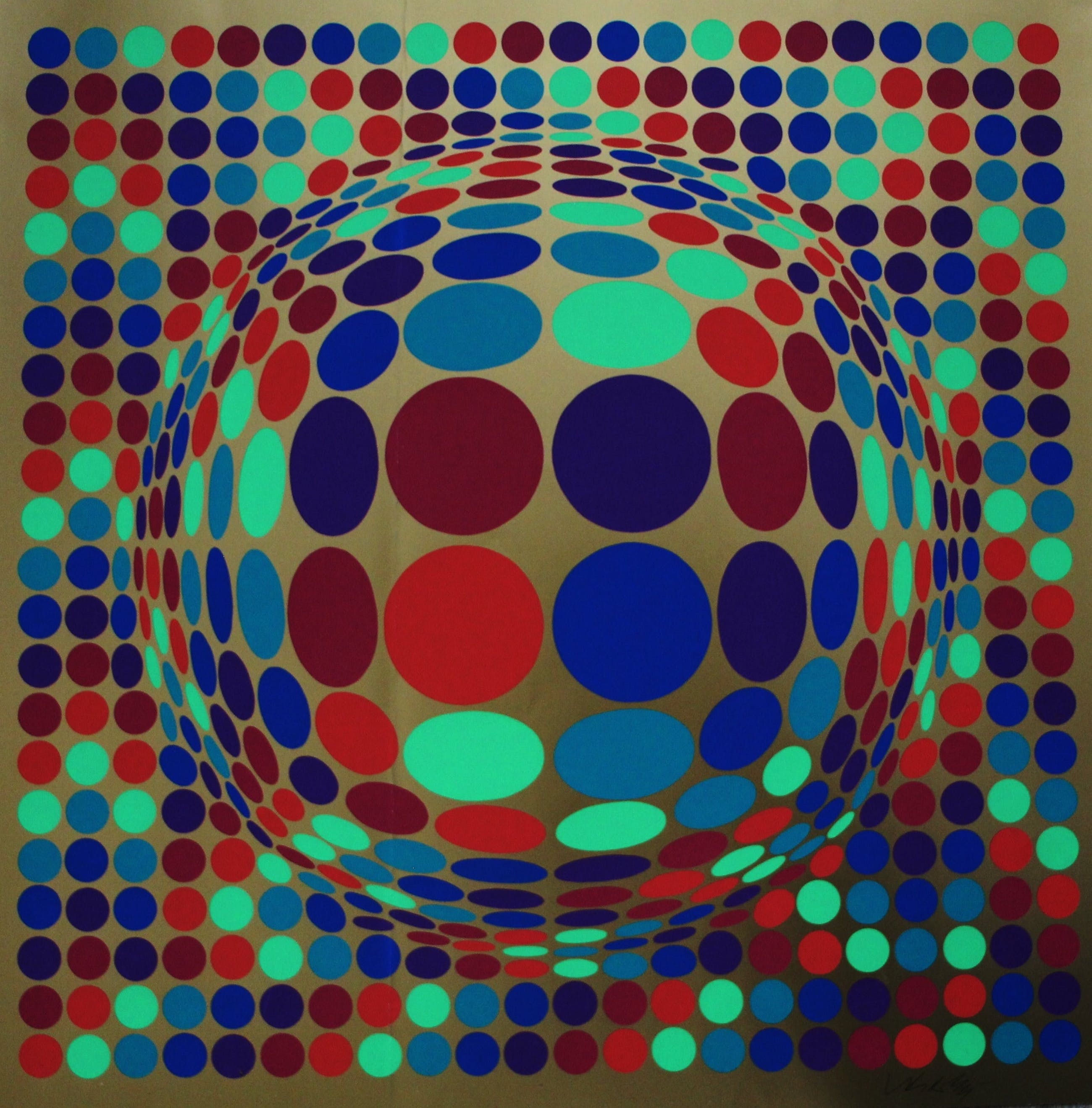 Zeefdruk van Victor Vasalery. Afmetingen blad: H58.5 x b58.5cm. Het werk is rechts onderaan, met potlood, gesigneerd door de kunstenaar. De authenticiteit van het aangeboden werk wordt volledig gegarandeerd. Een certificaat van echtheid kan, op aanvraag, worden gemaild.