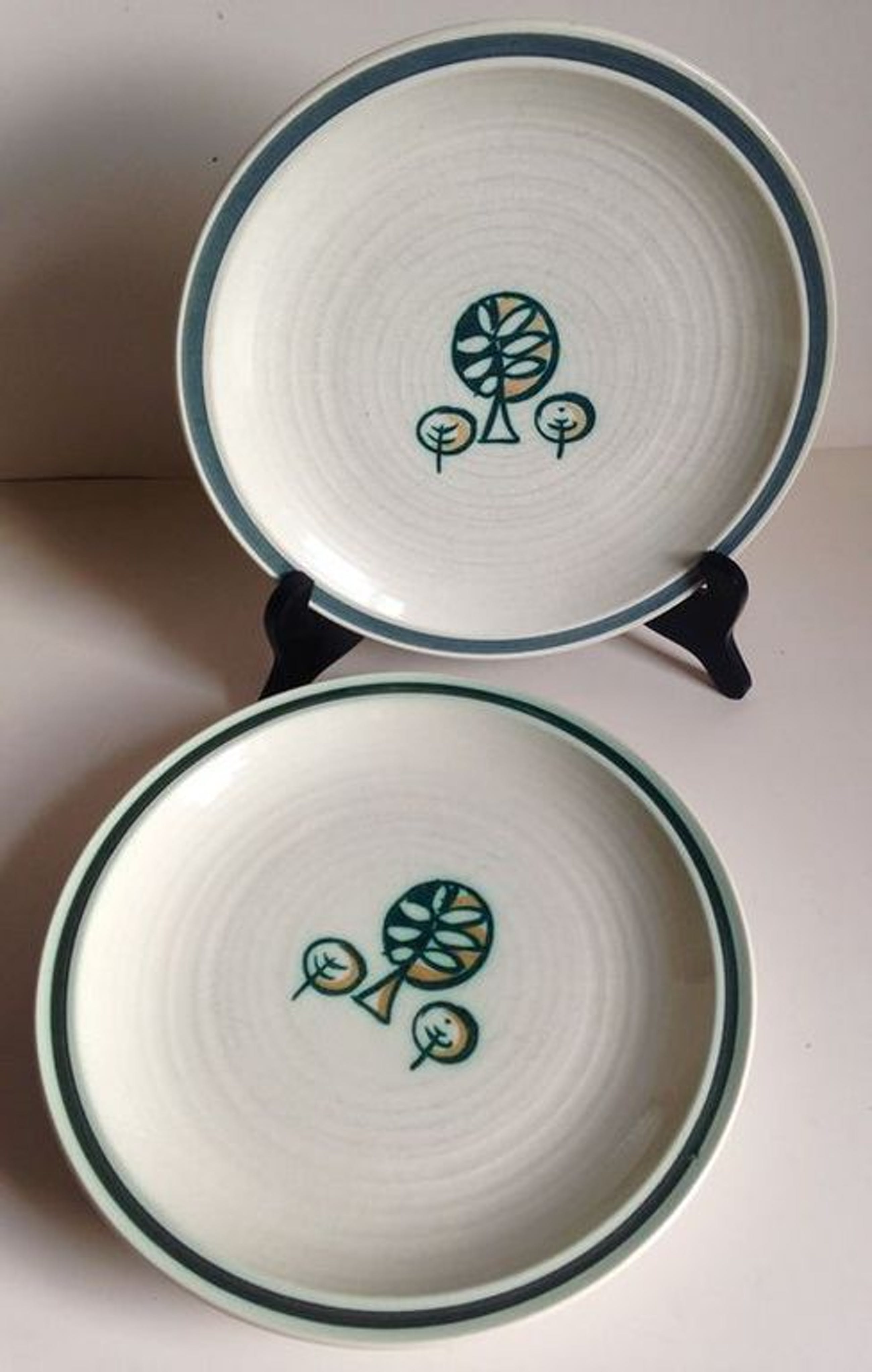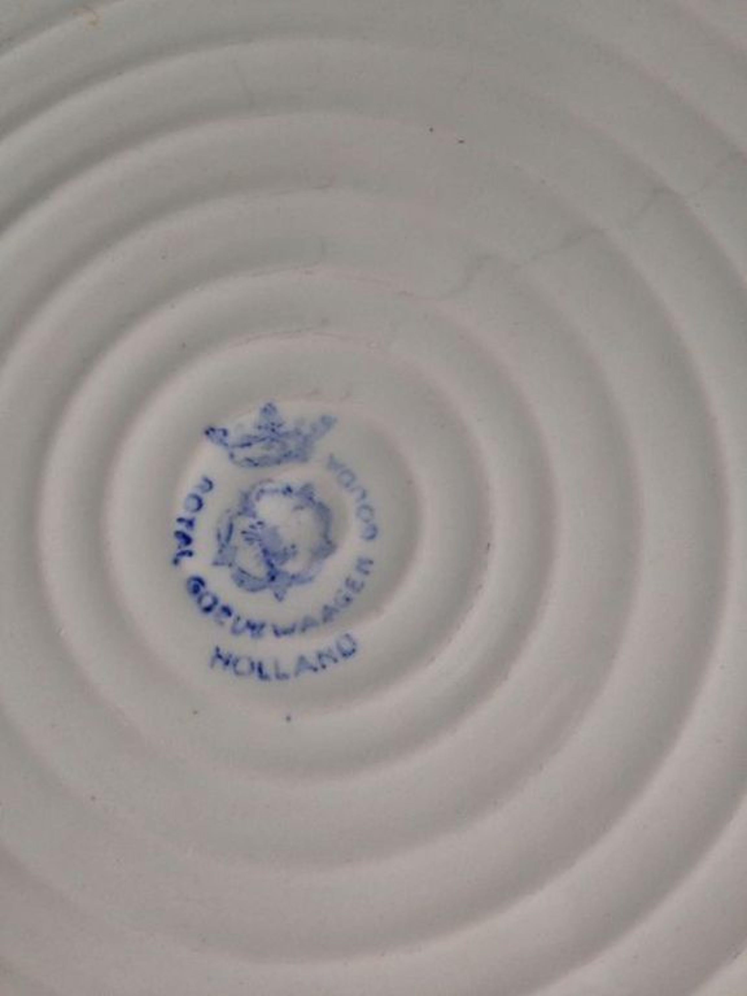 De borden zijn in prima gebruikte staat. Drie borden hebben het blauwe Goedewaagen merkteken en één het uitgebreidere groene. Ik vermoed dat het ene brod op een later tijdstip is geproduceerd