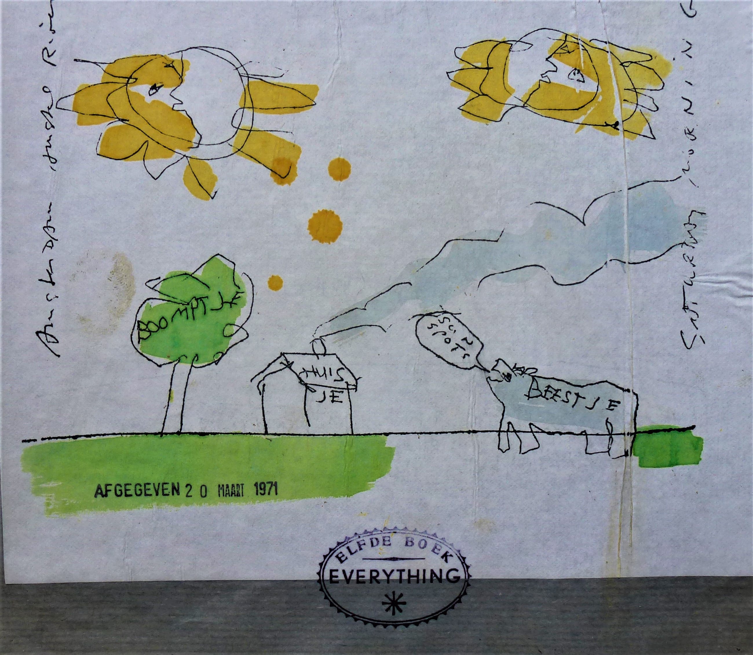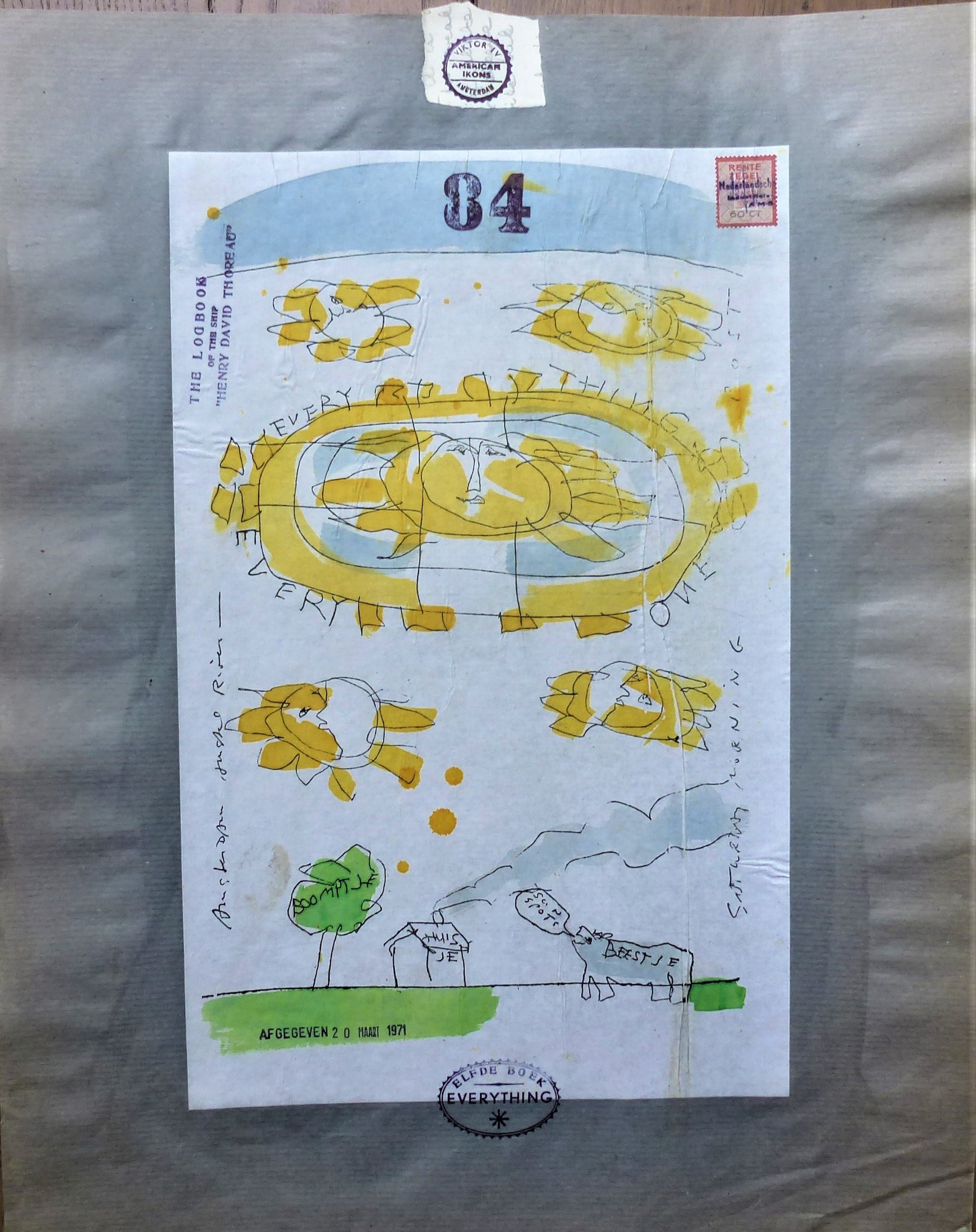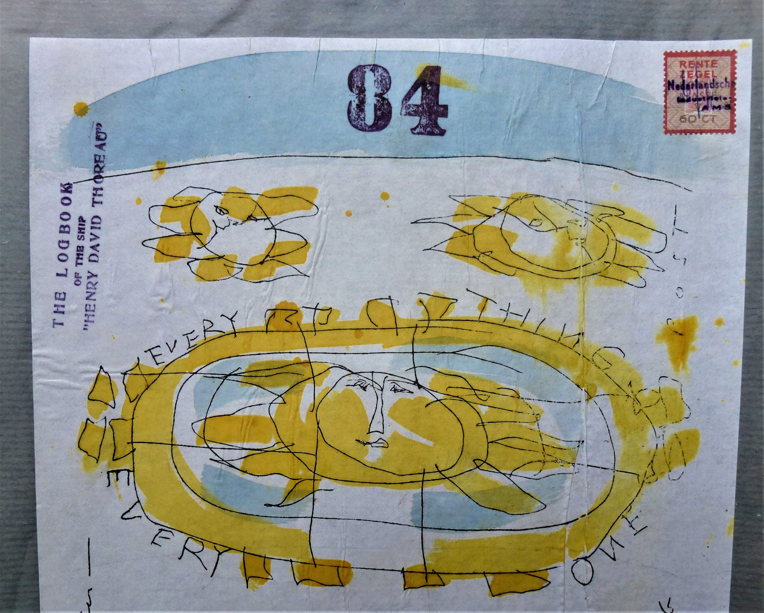 Logboek blad van het schip Henry David Thoreau. Uit het elfde boek Everything Getekend gestempeld en geplakt door Viktor Four / Walter Carl Gluck . Gedateerd : 20 maart 1971 Genummerd: 84. Conditie : Zeer goed . Herkomst : Gekocht in de jaren '70 van Viktor Four .