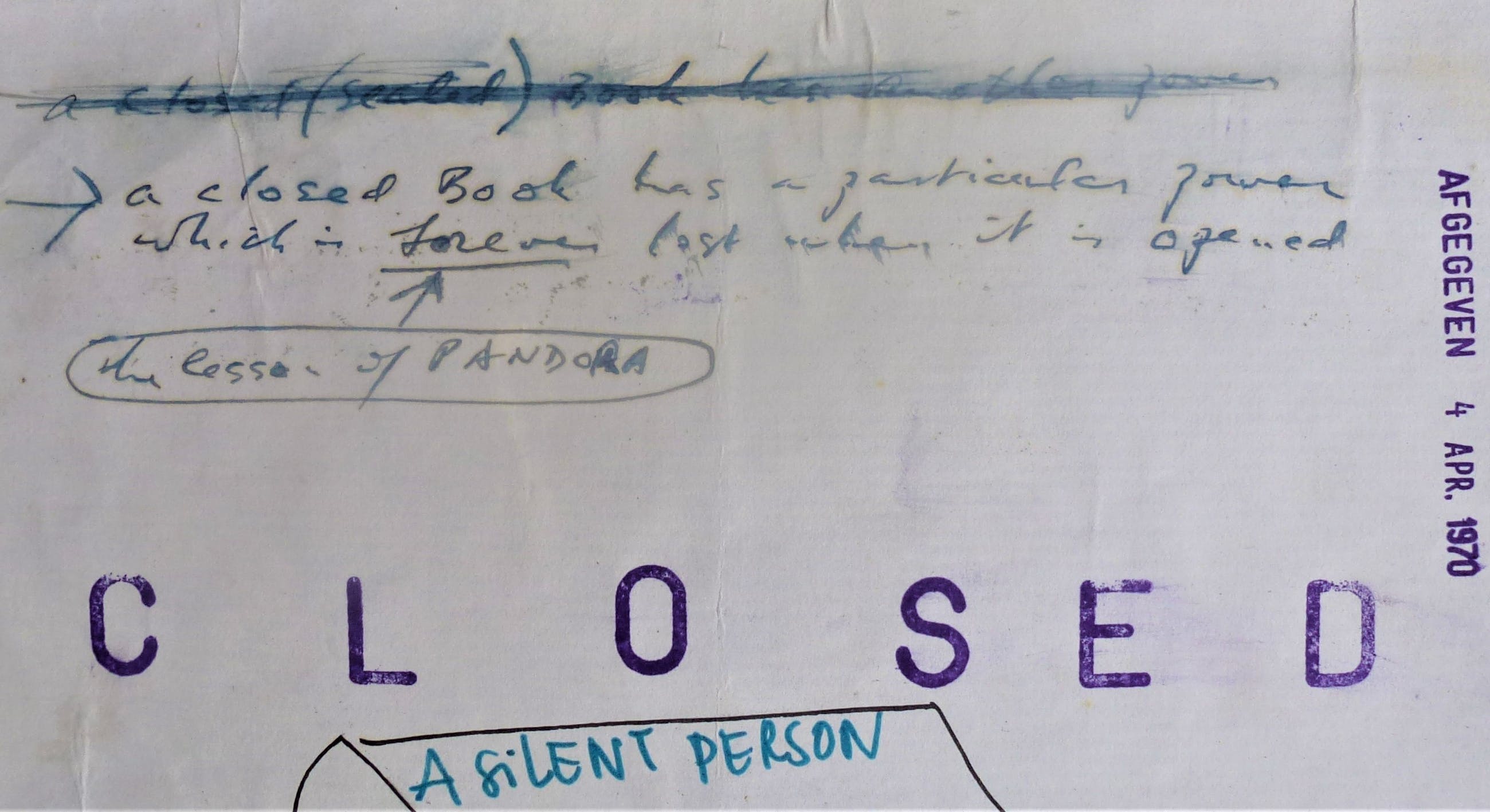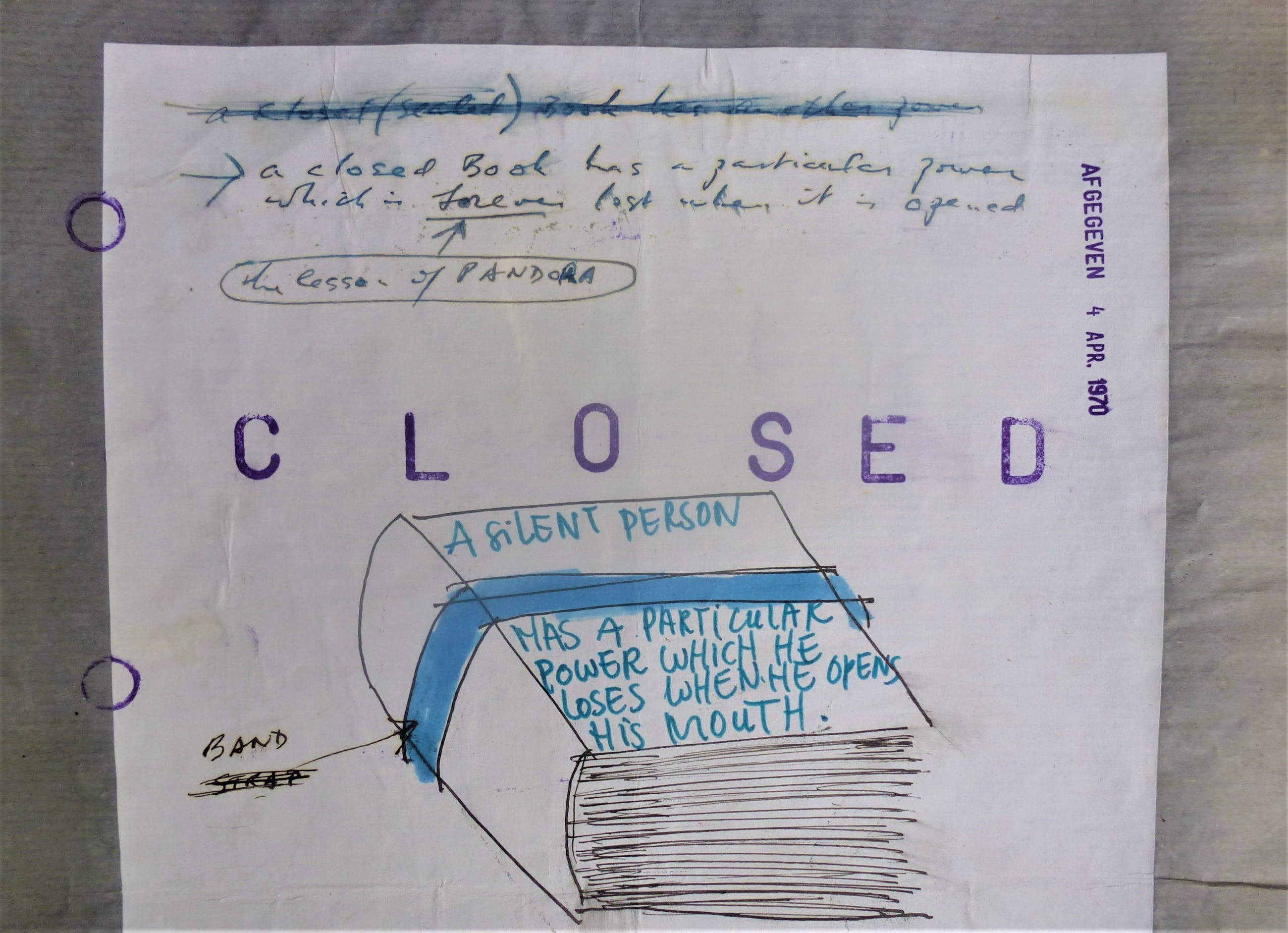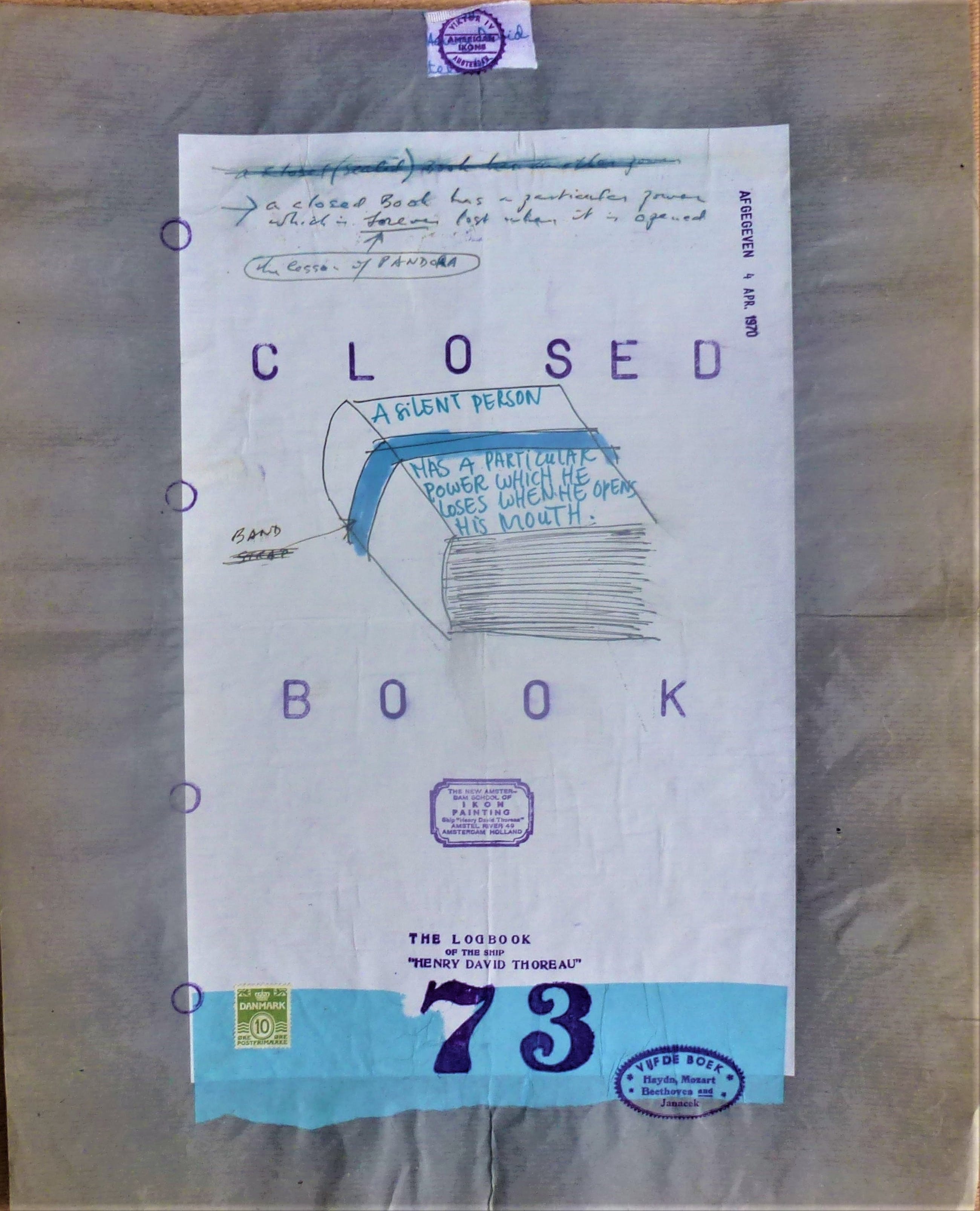 Logboek blad van het schip Henry David Thoreau. Uit het vijfde boek Haydn Mozart Beethoven en Janacek . Getekend geplakt en gestempel door Viktor Four/ Carl Walter Gluck. Gedateerd: 4 apr 1970 . Titel :Closed Book Afmetingen : 44 cm x 34,5 cm Genummerd : 73 Herkomst gekocht in de jaren '70 van de kunstenaar, Wordt aangetekend verzonden