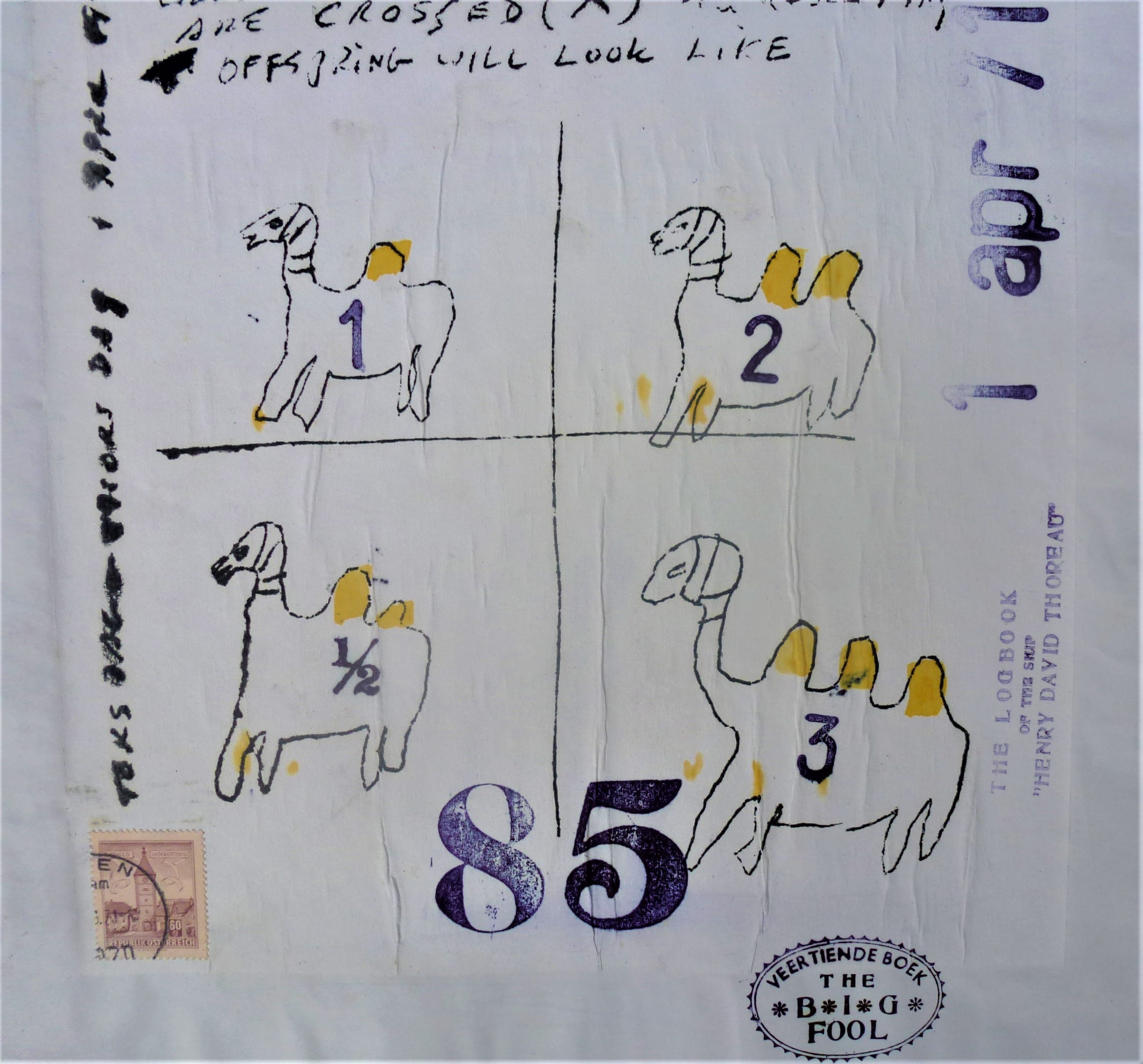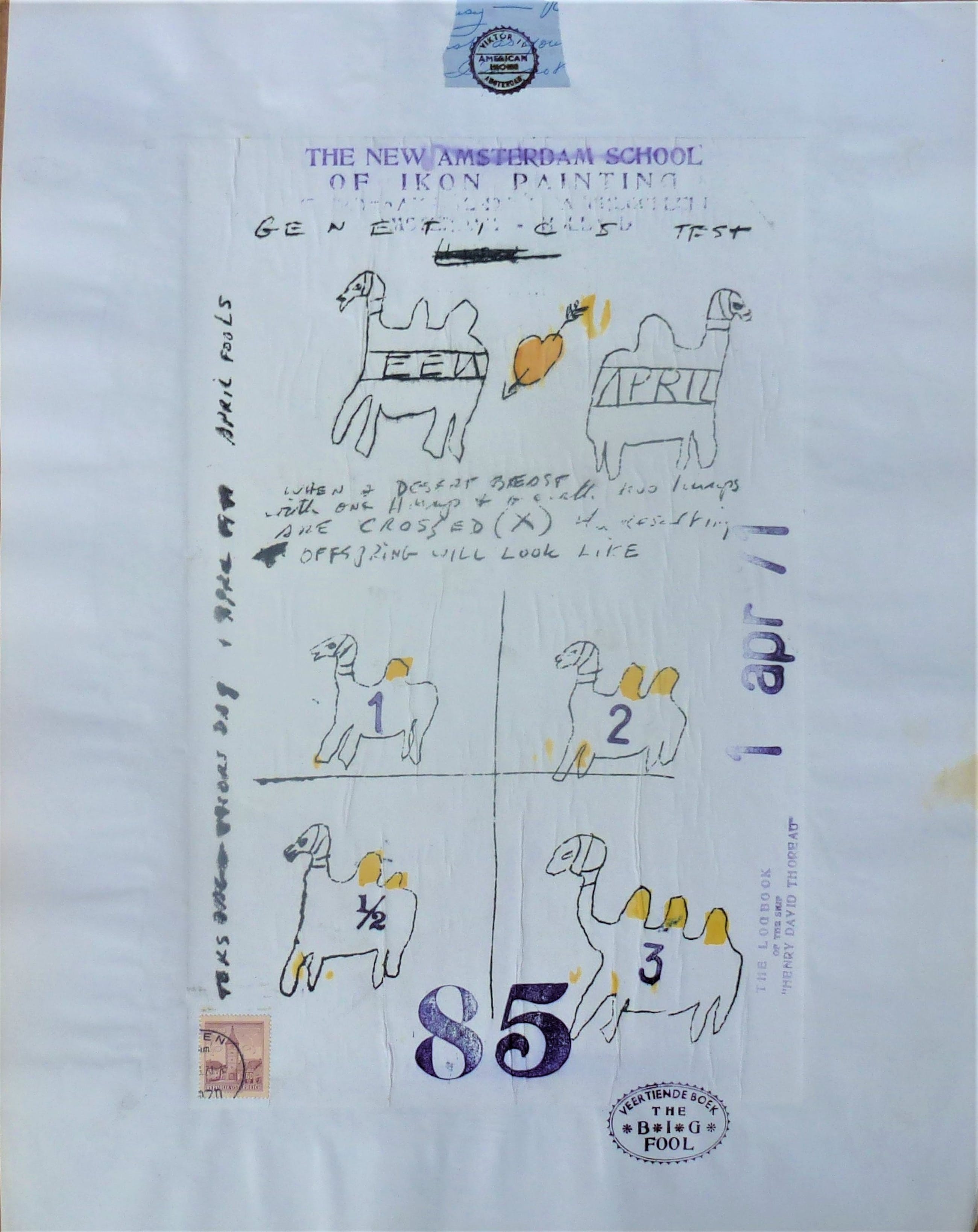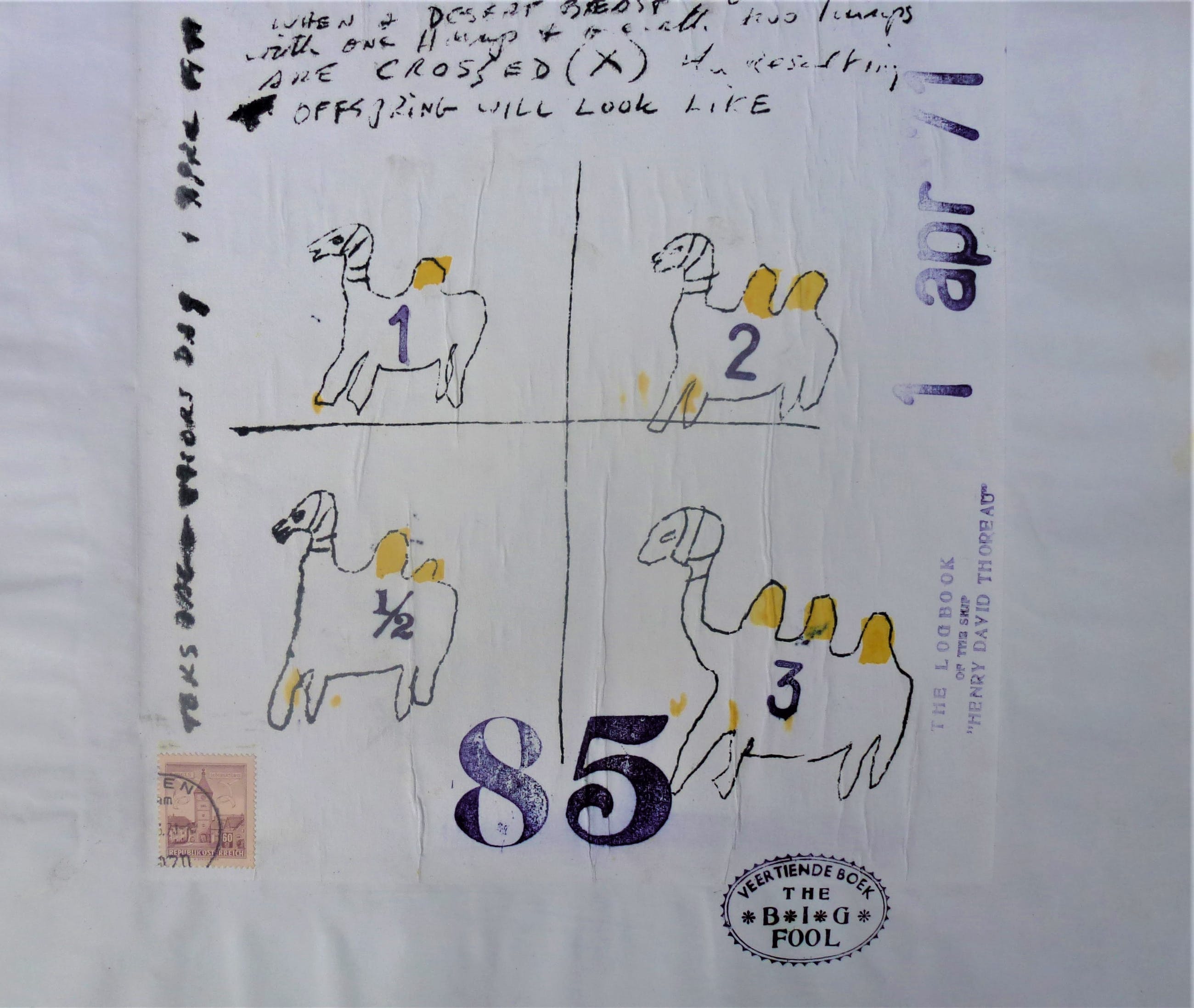 Logboek blad van het schip Henry David Thoreau. Uit het veertiende boek The Big Fool. Getekend geplakt en gestempel door Viktor Four/ Carl Walter Gluck. Gedateerd: 1 apr 71 Titel :EEN APRIL. Afmetingen : 44 cm x 34,5 cm Genummerd : 85 Herkomst gekocht in de jaren '70 van de kunstenaar, Wordt aangetekend verzonden
