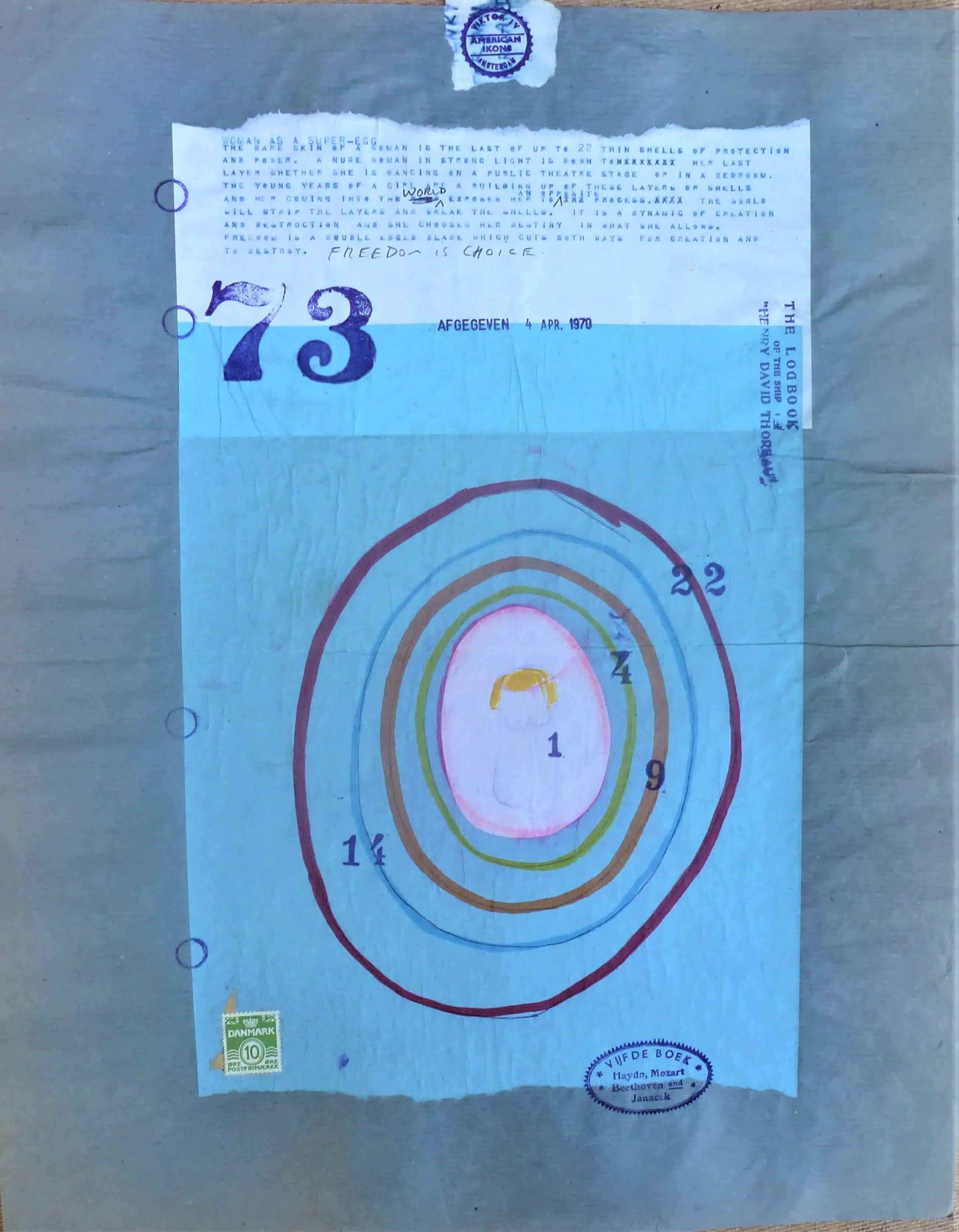 Logboek blad van het schip Henry David Thoreau . Uit het vijfde boek Haydn Mozart Beethoven and Janacek. Gedateerd 4 apr.1970 Genummerd 73 . Getekend gestempeld en geplakt door Viktor IV /Walter Carl Gluck Afmetingen : 43,5 cm x 34,5 cm. Conditie : goed. Herkomst : Gekocht in de jaren '70 van de kunstenaar Wordt aangetekend verzonden .