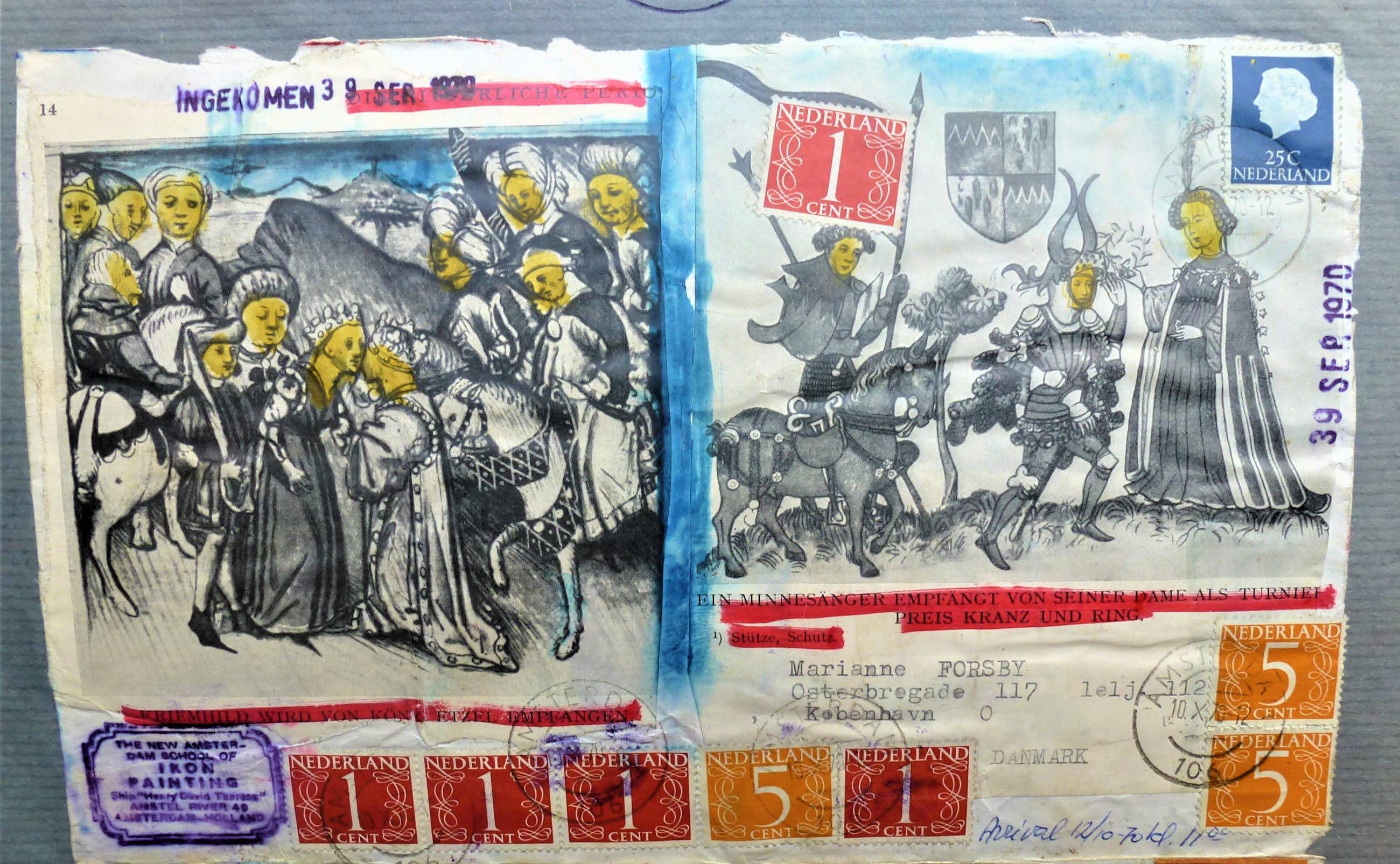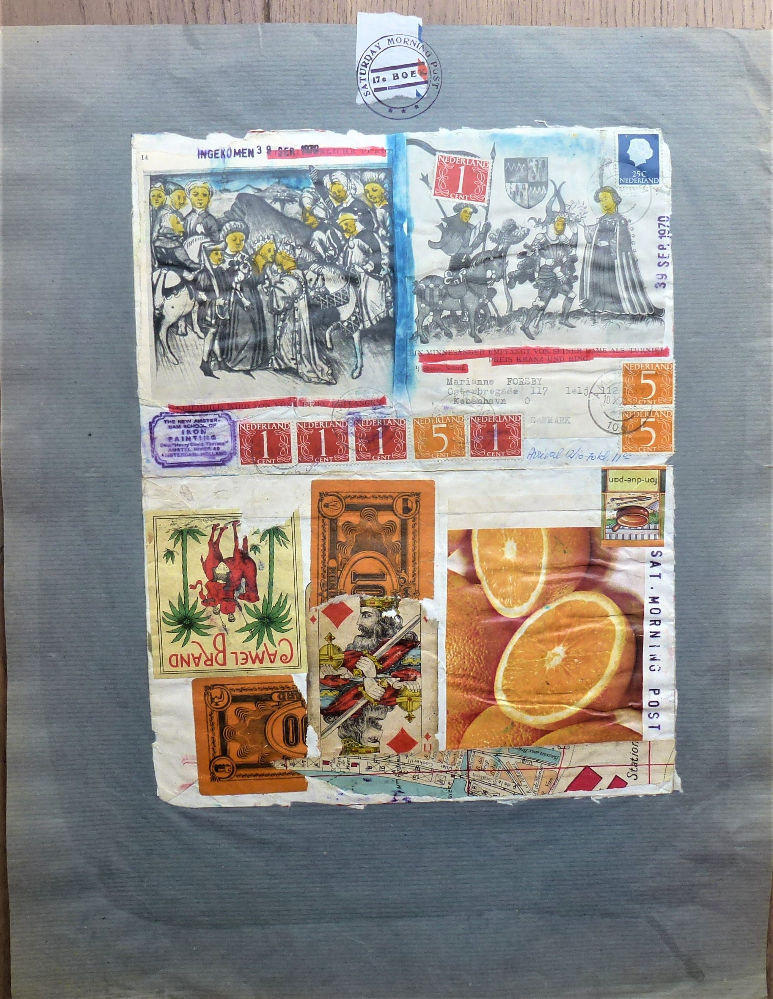 Logboek blad van het schip Henry David Thoreau . Uit het 17e boek Saterday Morning post Geplakt en gestempeld door Viktor IV /Walter Carl Gluck. Gedateerd : 3 sep 1970 Herkomst : Gekocht in de jaren '70 van de kunstenaar