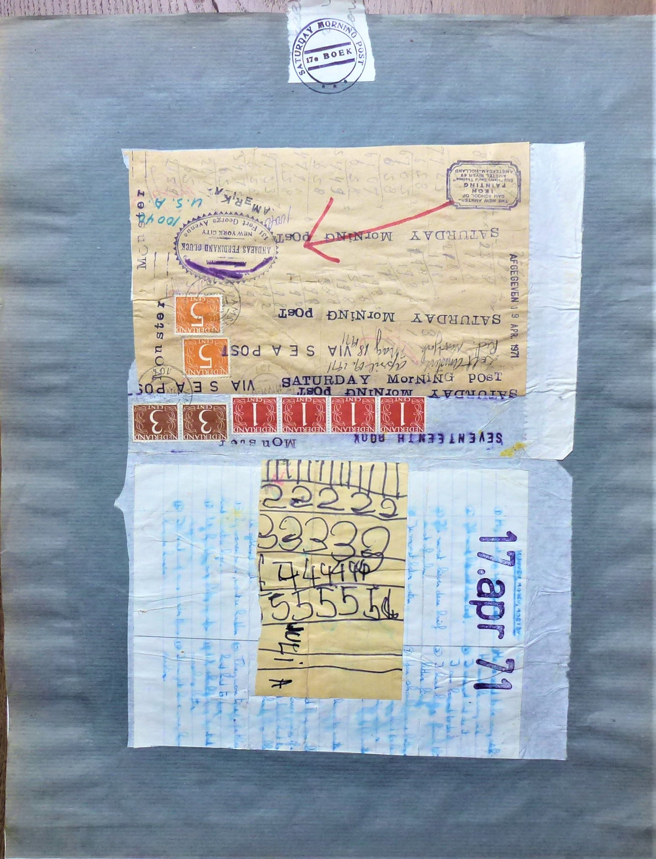 Logboek blad van het schip Henry David Thoreau . Uit het 17e boek Saterday Morning post Gedateerd 17.apr.71 Getekend gestempeld en geplakt door Viktor IV /Walter Carl Gluck Afmetingen : 43,5 cm x 34,5 cm. Herkomst : Gekocht in de jaren '70 van de kunstenaar Wordt aangetekend verzonden .