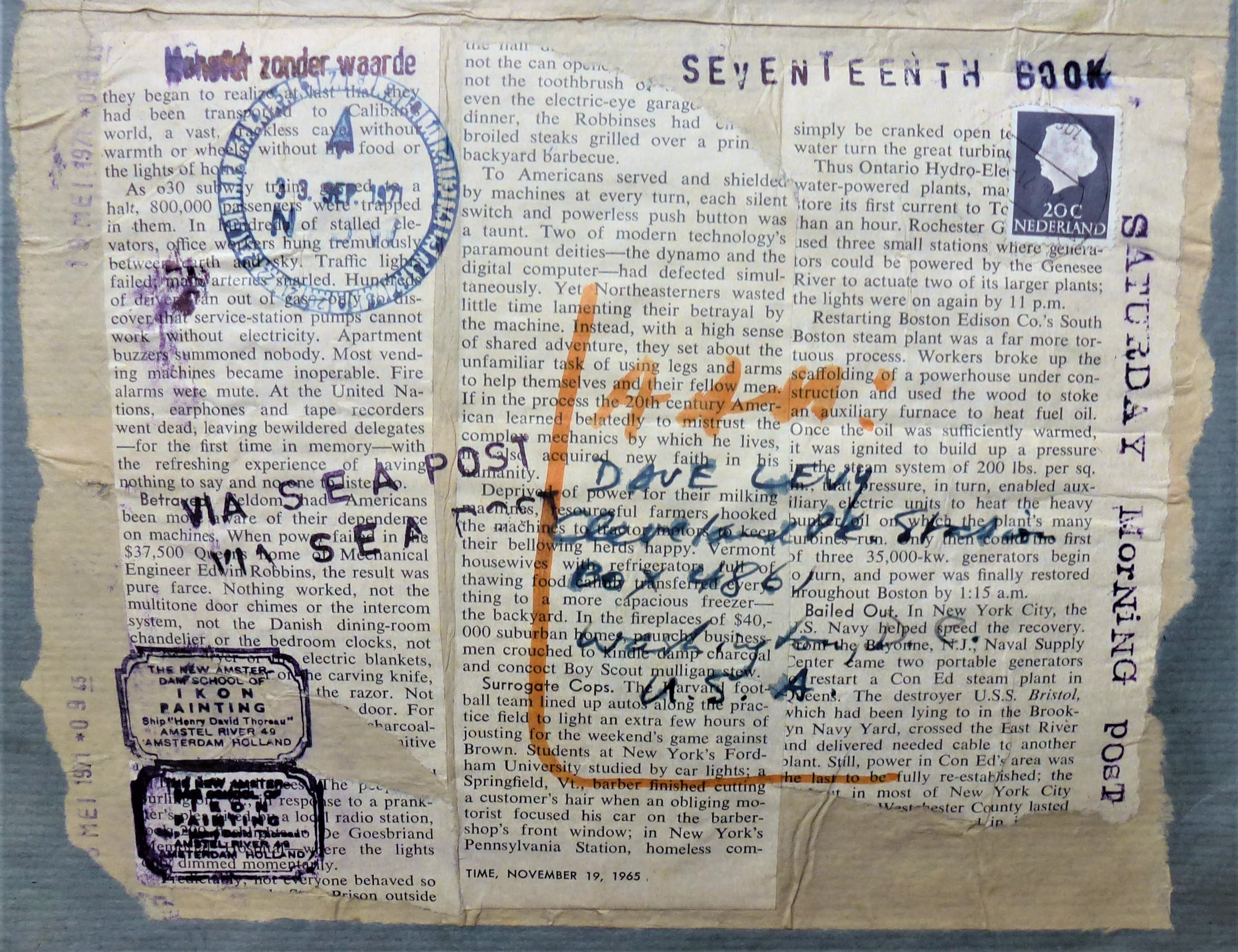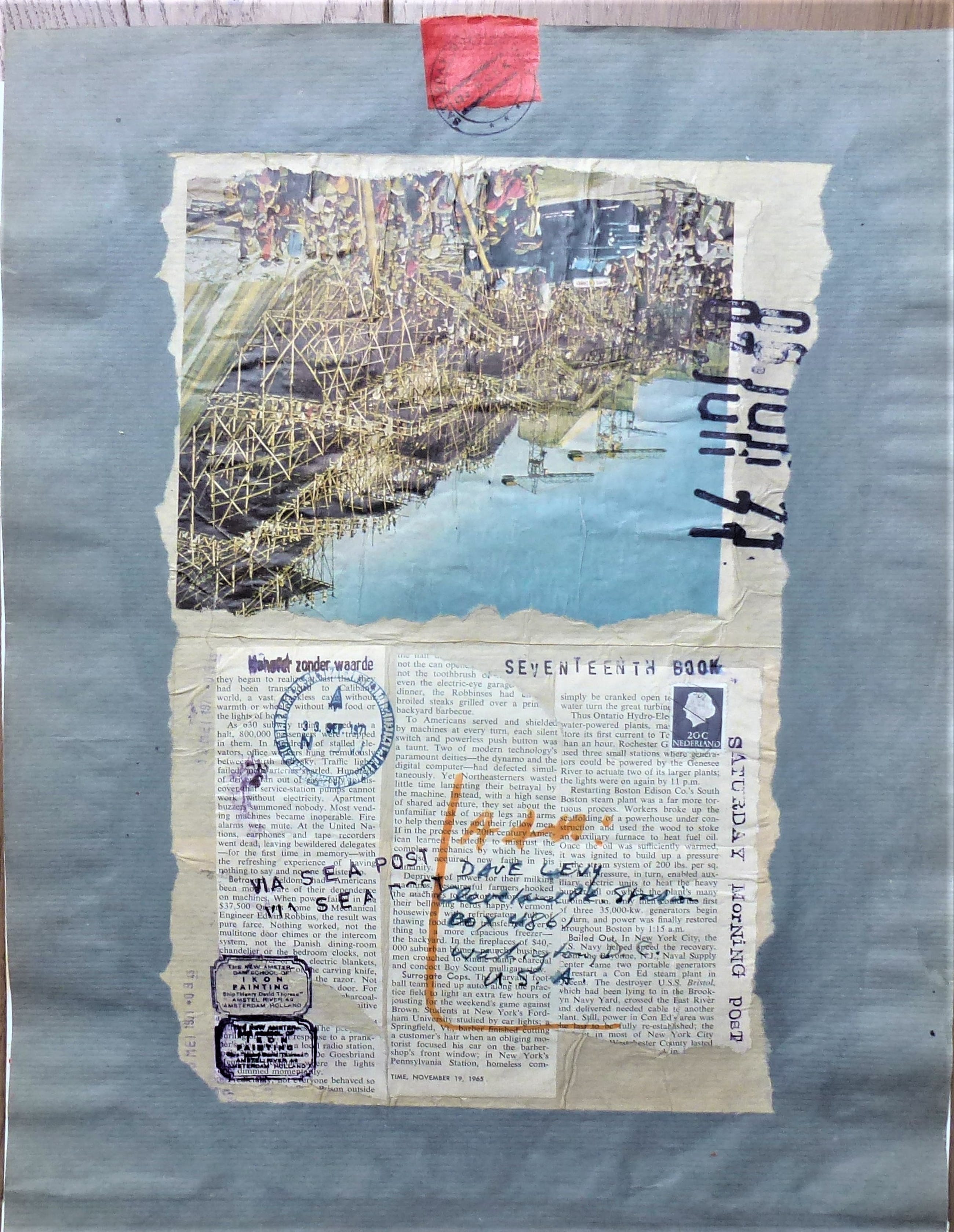 Logboek blad van het schip Henry David Thoreau . Uit het 17e boek Saterday Morning post Gedateerd 06. juli. 71. 07.juli. 71. Getekend gestempeld en geplakt door Viktor IV /Walter Carl Gluck Afmetingen : 43,5 cm x 34,5 cm. Herkomst : Gekocht in de jaren '70 van de kunstenaar Wordt aangetekend verzonden .