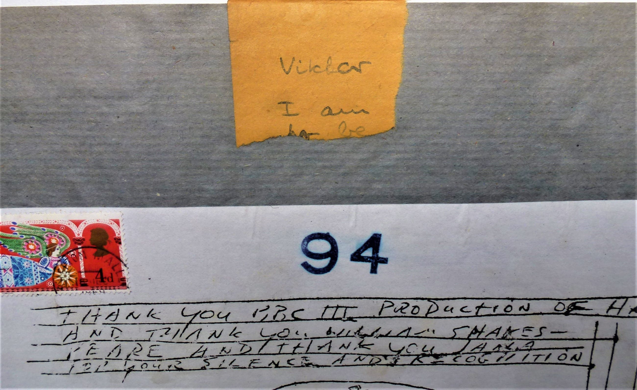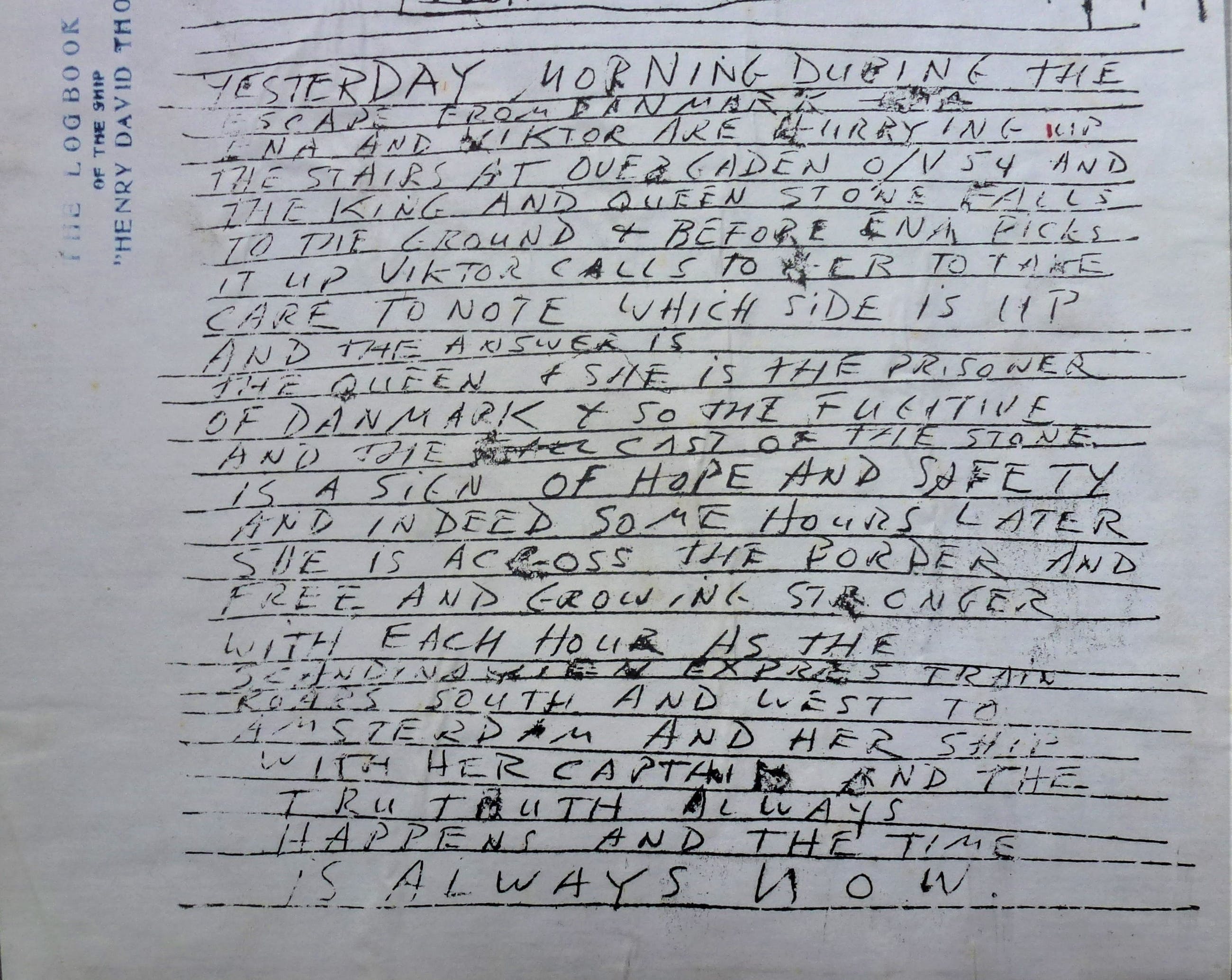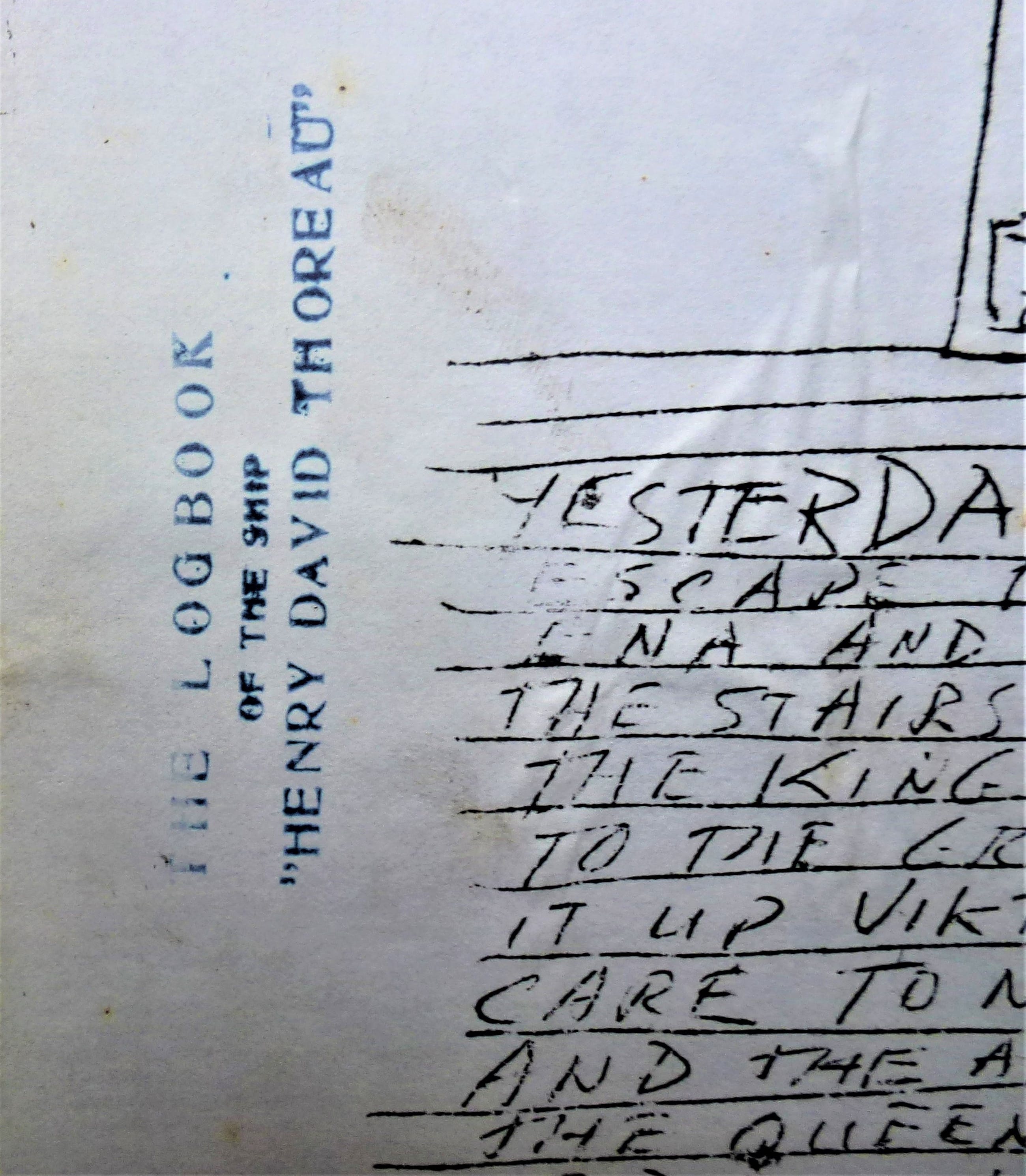 Logboek blad van het schip Henry David Thoreau. Getekend geplakt en gestempel door Viktor Four/ Carl Walter Gluck. Gedateerd : 23 januari 1972 The end of efficiency is the way to the sacred which is the love . Afmetingen : 43,5 cm x 34 cm Genummerd :94 Herkomst gekocht in de jaren '70 van de kunstenaar, Wordt aangetekend verzonden