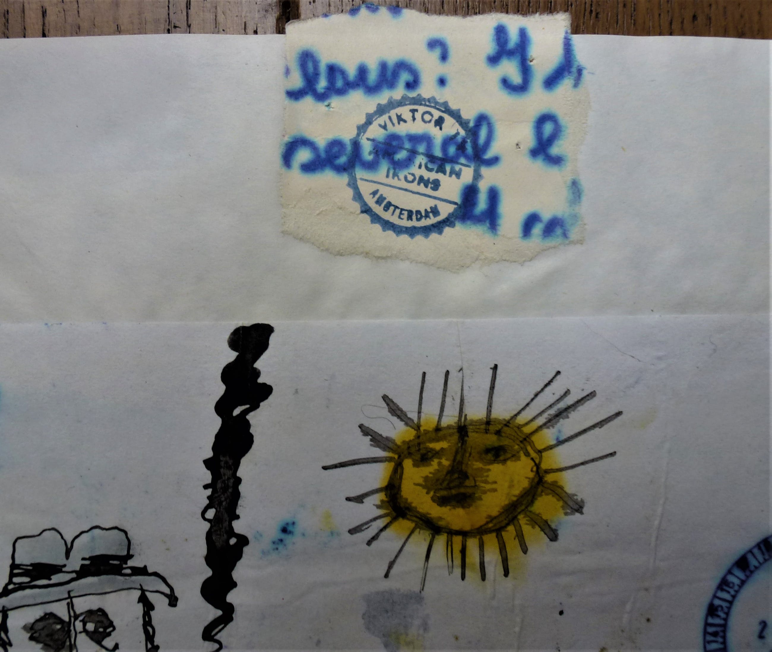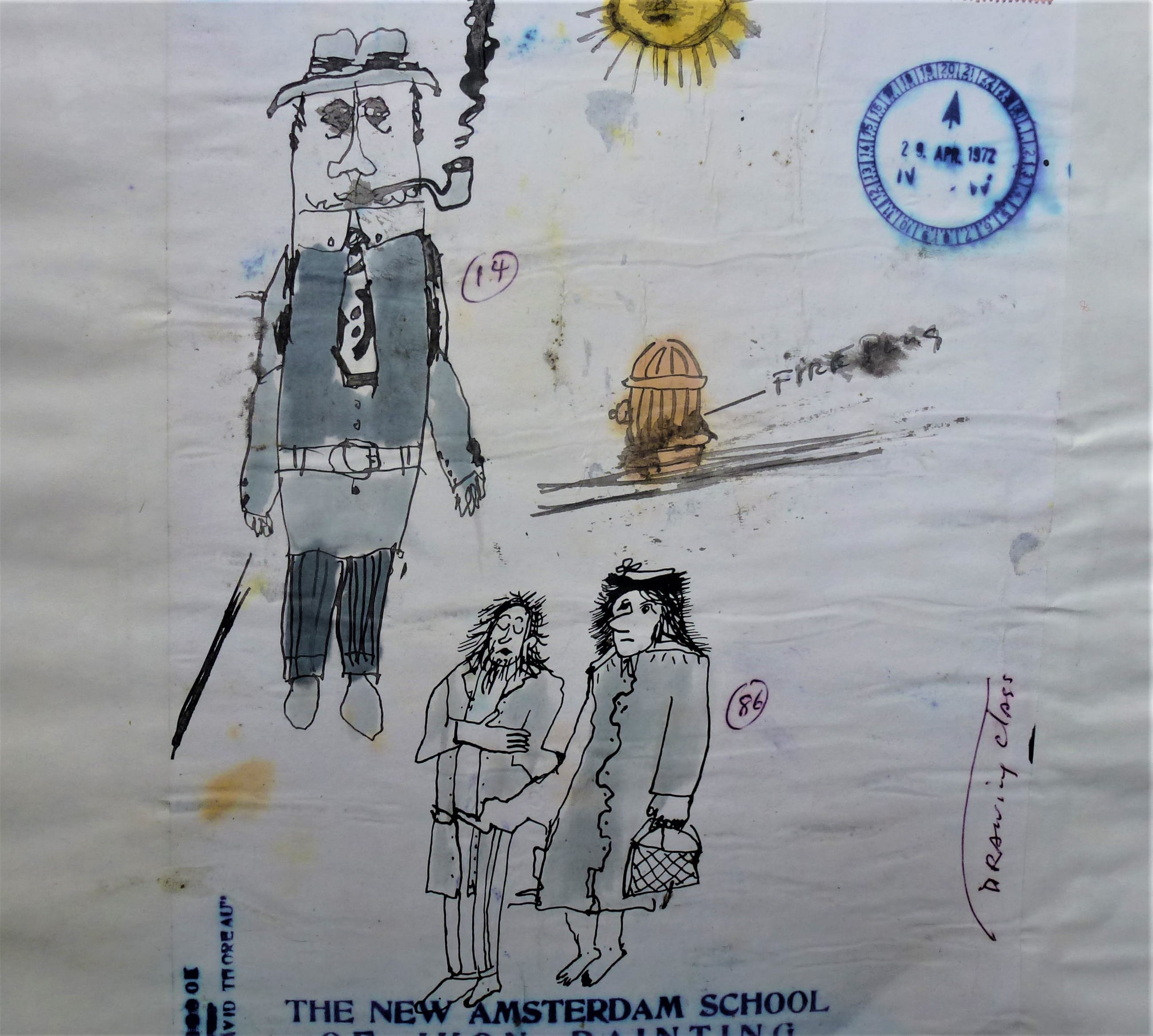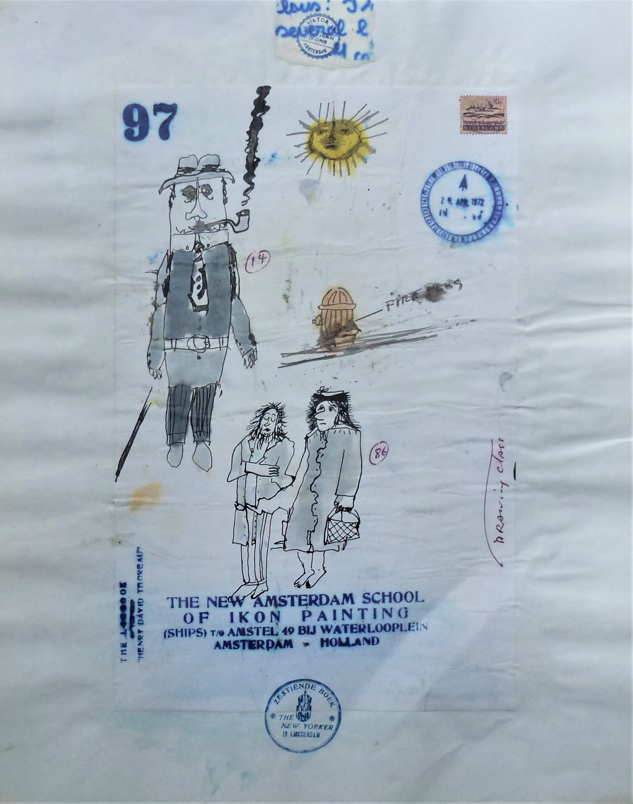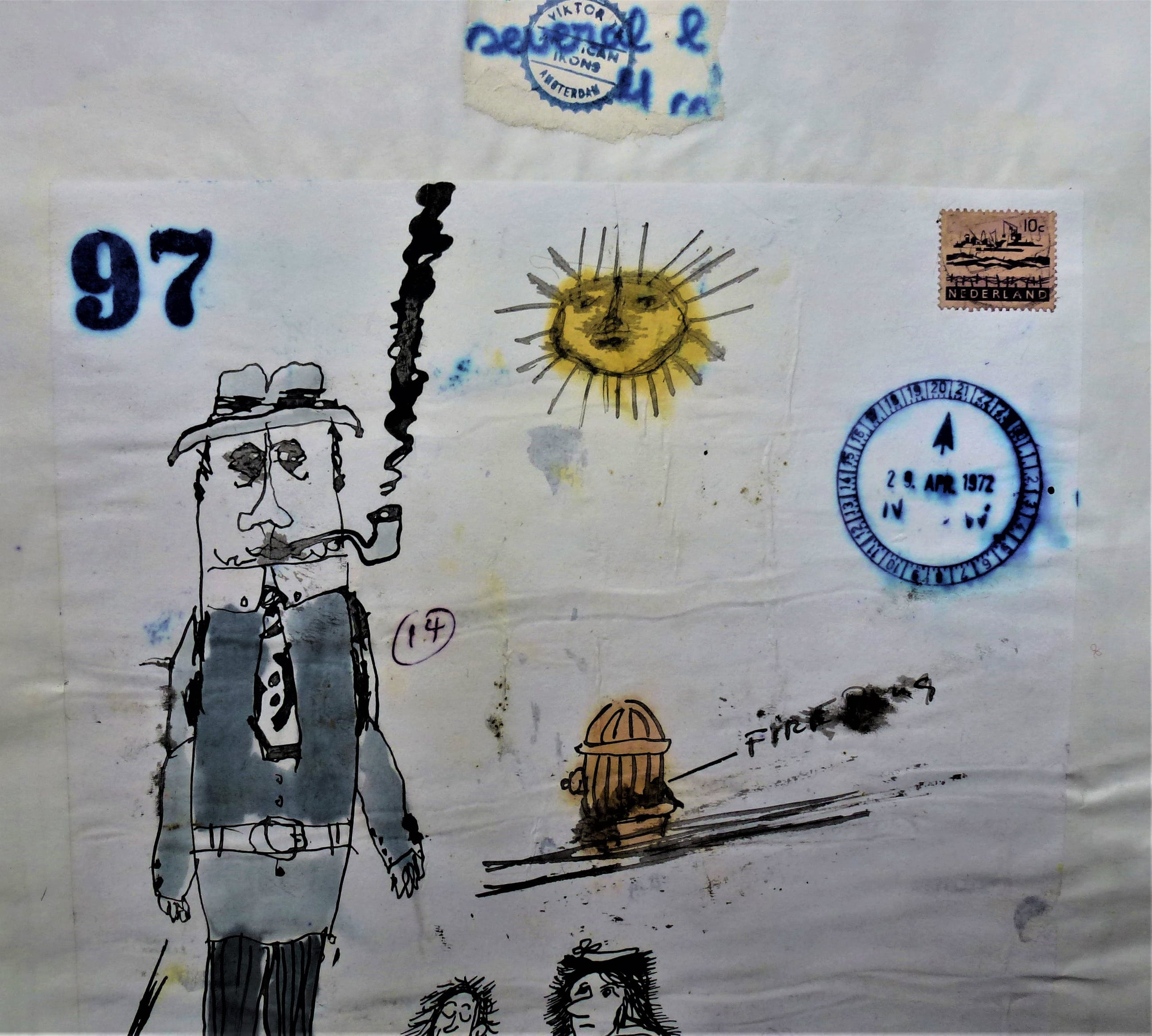 Logboekblad van het schip Henry David Thoreau . Blad uit het Zestiende Boek The New Yorker In Amsterdam . Genummerd 97 Getekend geschilderd gestempeld en geplakt door Viktor IV Gedateerd : 29 april 1972