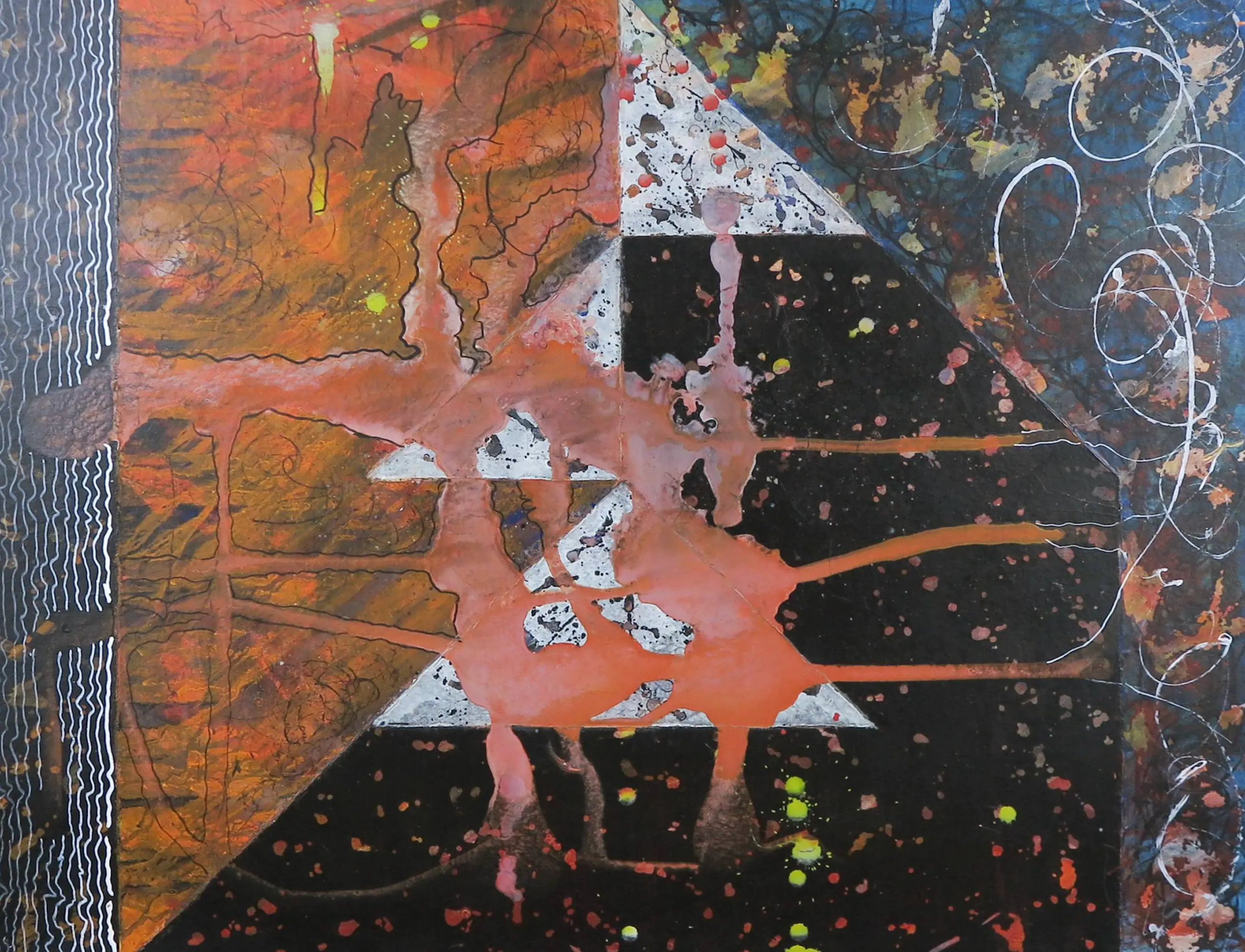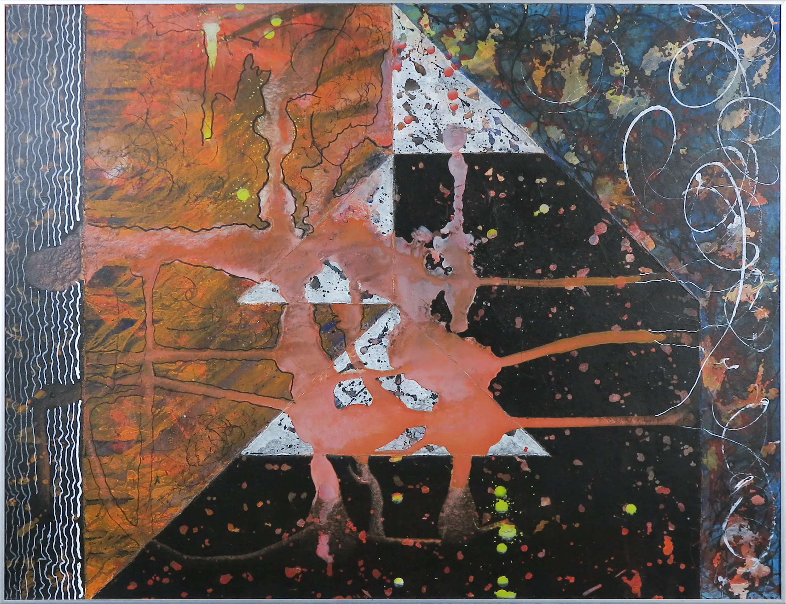 Uniek werk op boardkarton door Viktor Majdandžic in aluminium frame (zonder glasplaat).