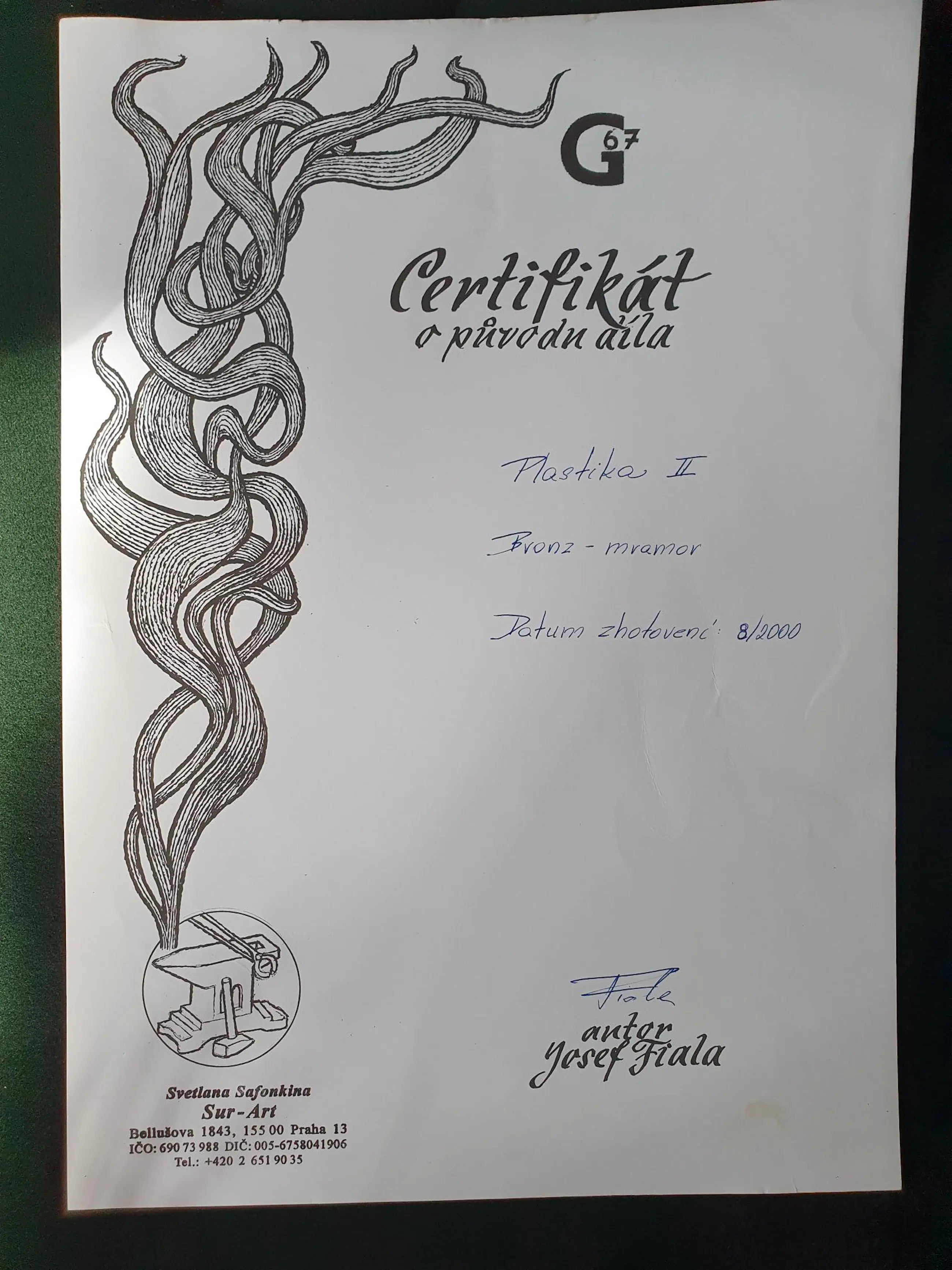 Uniek bronzenbeeld van de kunstenaar Viktor Safonkin (1967). Hij is bekend van schilderijen maar hij heeft als experiment ook dit bronzen beeld gemaakt. Het is aangekocht direct van Victor Safonkin zelf in zijn toenmalige galerie in Tsjechie in het jaar 2000. Beeld was net klaar en daarom niet gesigneerd. Safokin heeft aangegeven zeer waarschijnlijk geen beelden meer te maken omdat het zoveel werk was. Dit beeld is een experiment geweest voor hem. Totaal gewicht inclusief de marmeren sokkel ca. 25 kg. Certificaat van de galerij beschikbaar (zie fotos). Een zeer bijzonder en echt uniek object!
