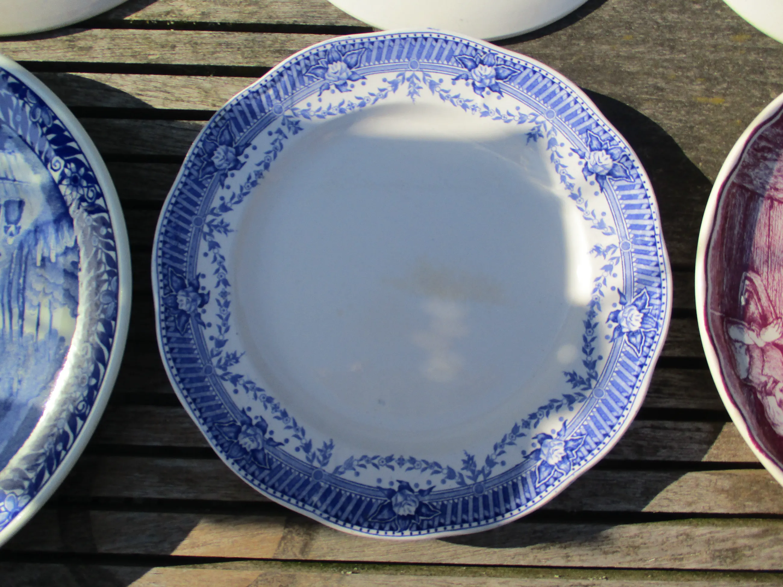10. Boch Freres la Louviere / Martine. Diameter 24.5 cm. Effen wit met blauwe bloemenrand.