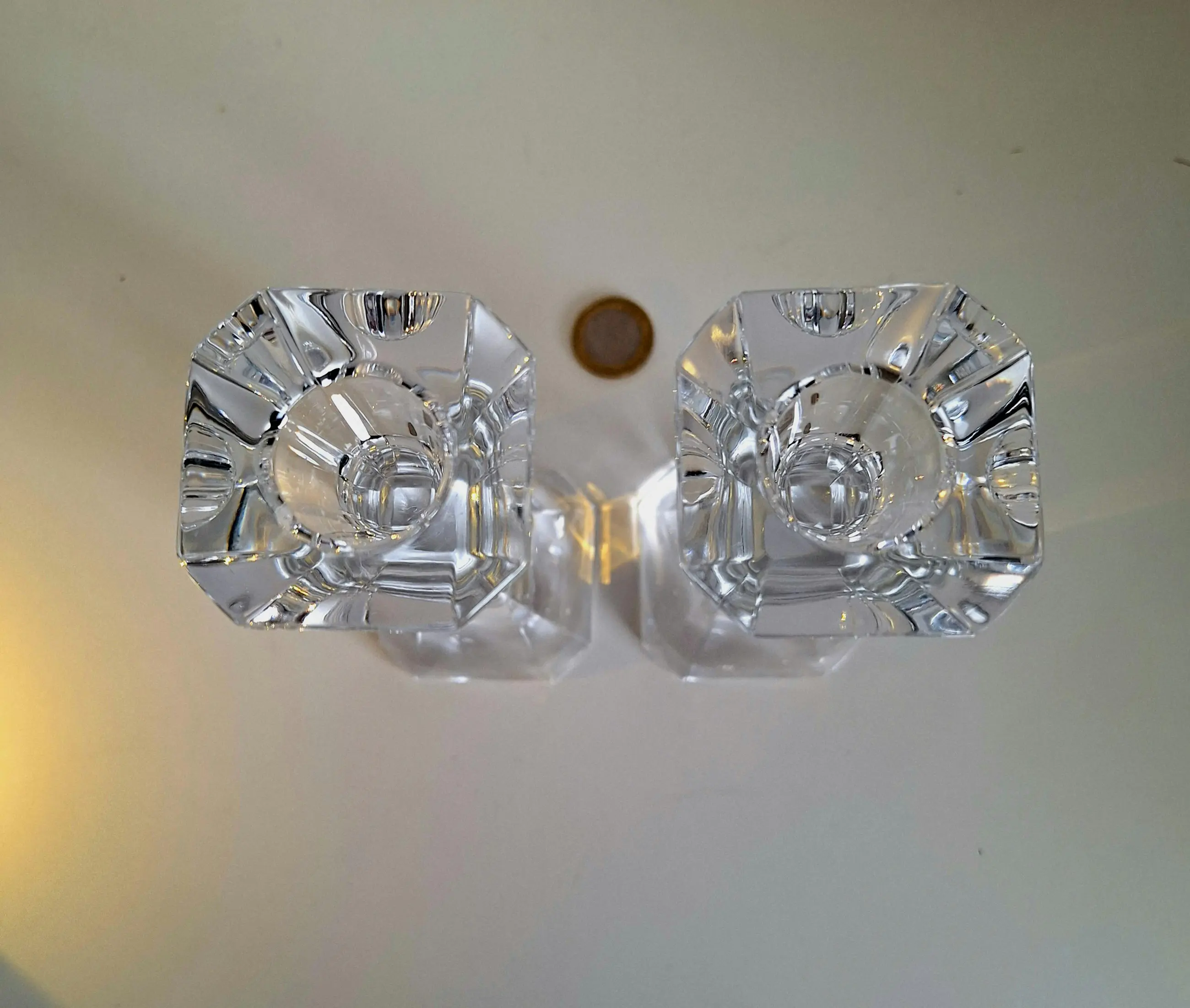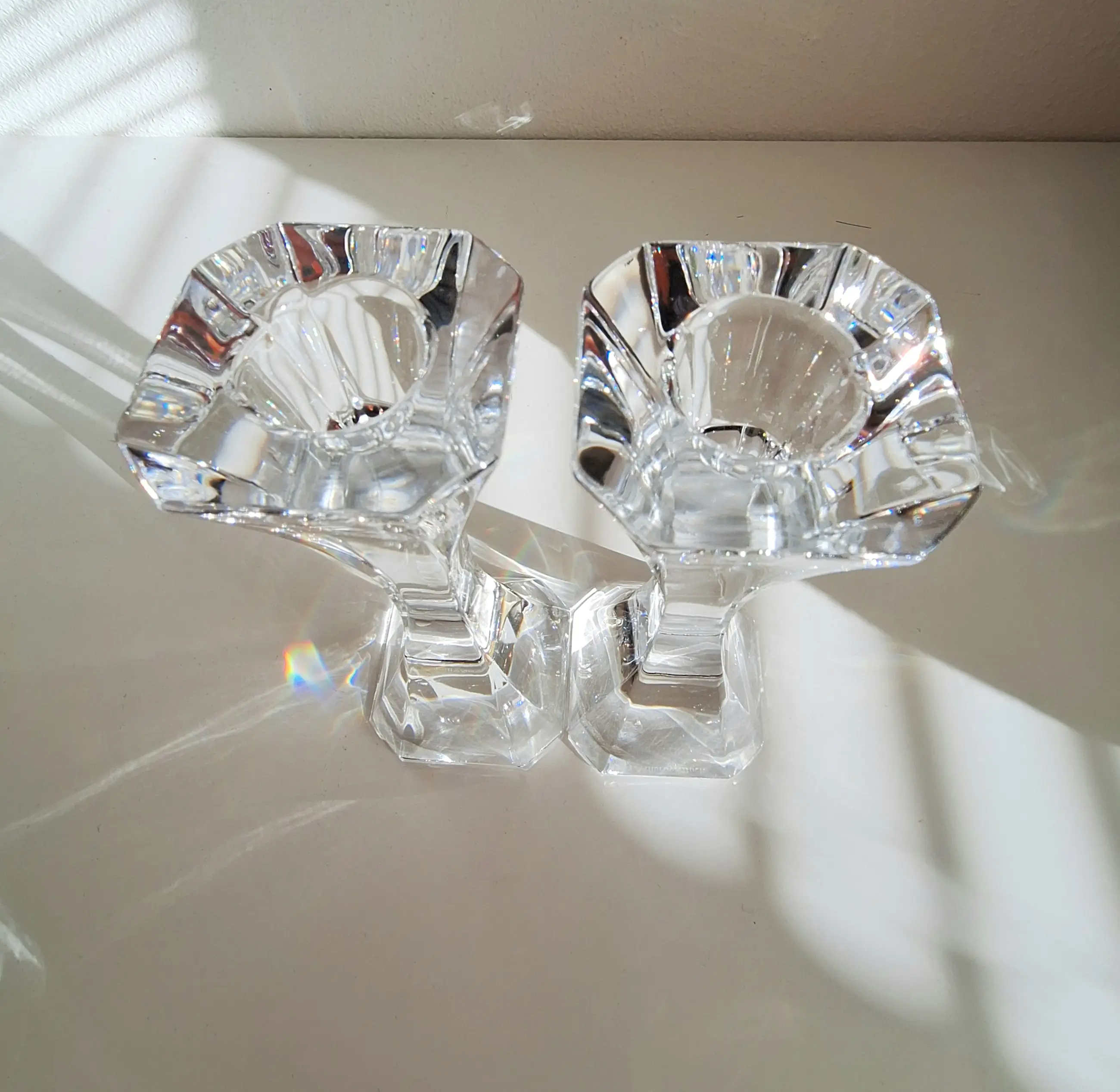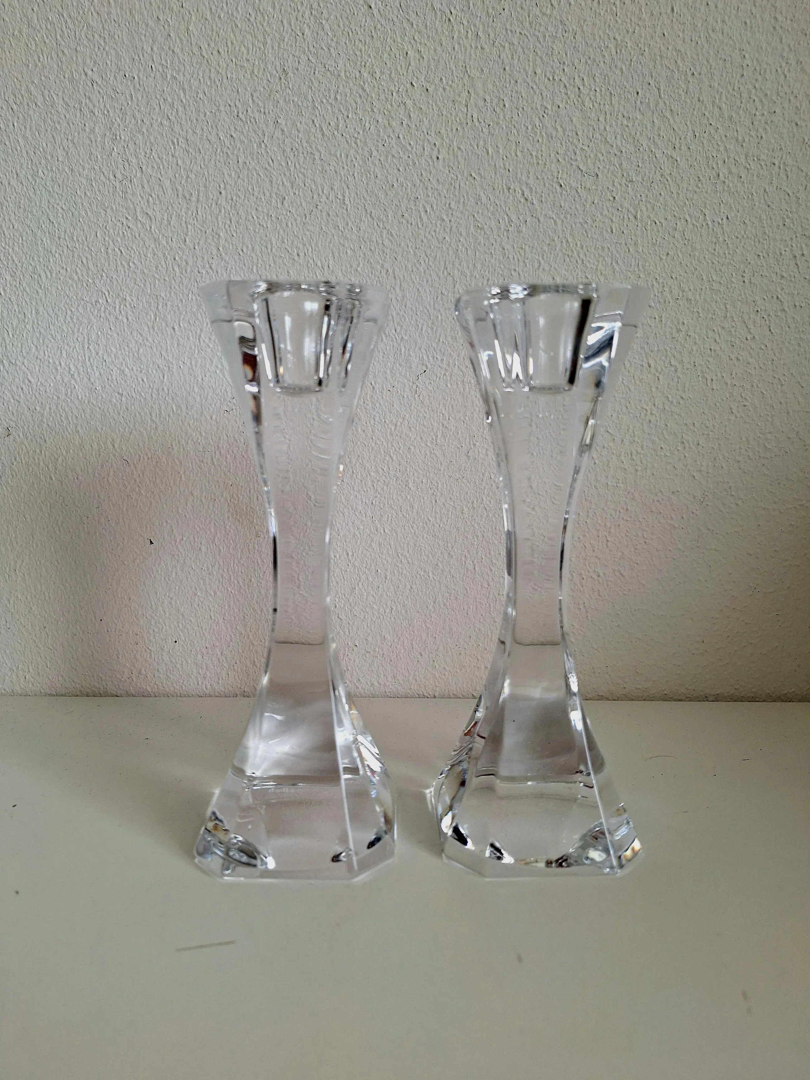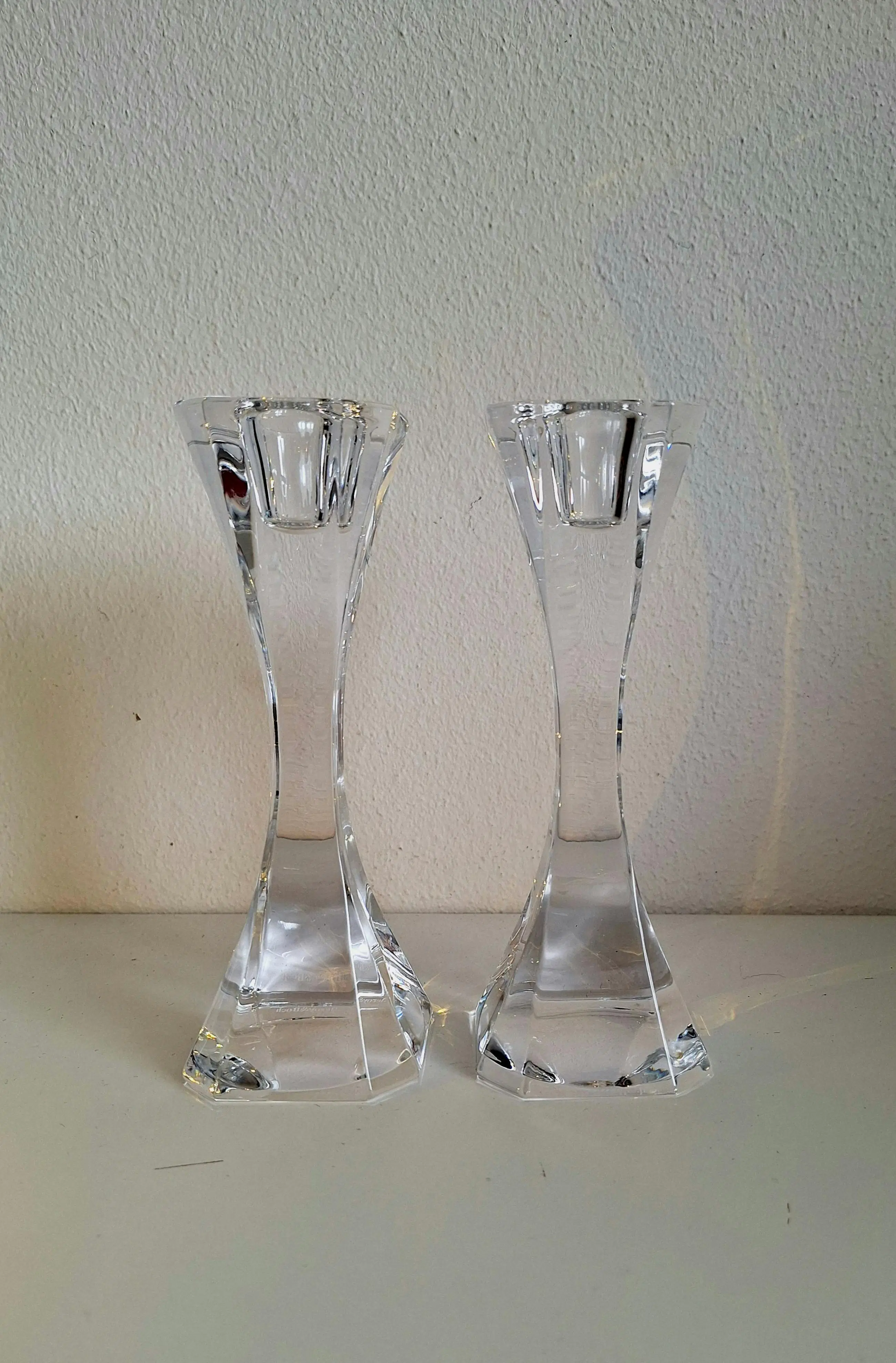 Van het fijnste kristal vervaardigd; twee kaarsenstandaards van Villeroy en Boch.