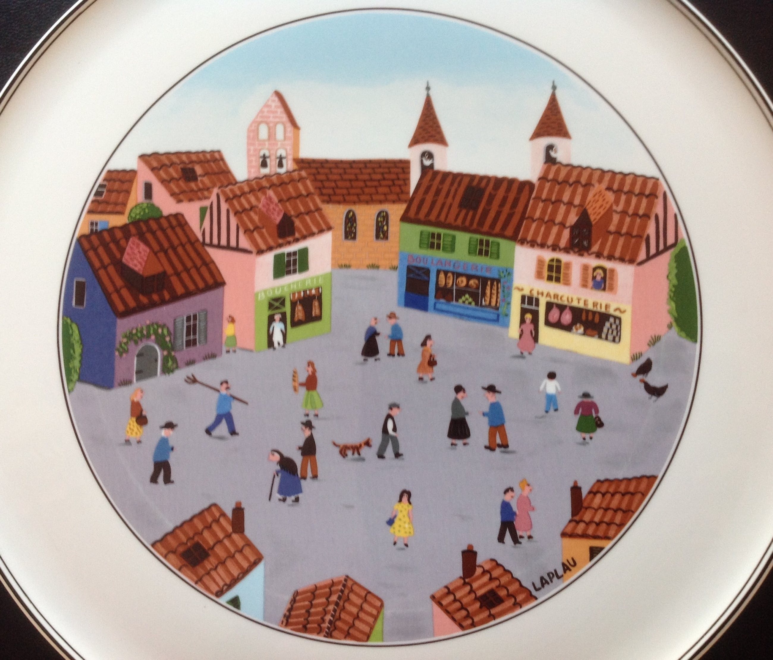 Het bord is ontworpen door de Corsicaanse kunstenaar Gerard Laplau voor de aardewerkfabriek Villeroy & Boch te Luxembourg.Het toont een speels weergegeven dorpsgezicht.