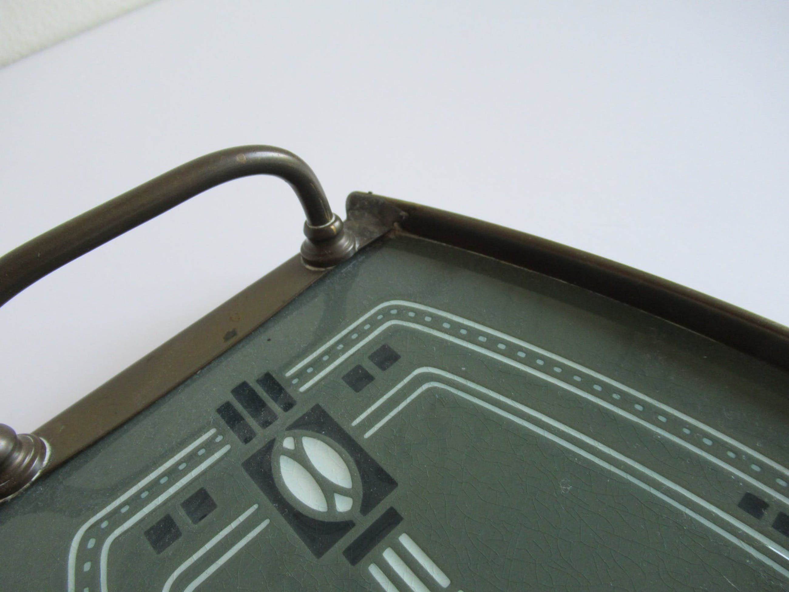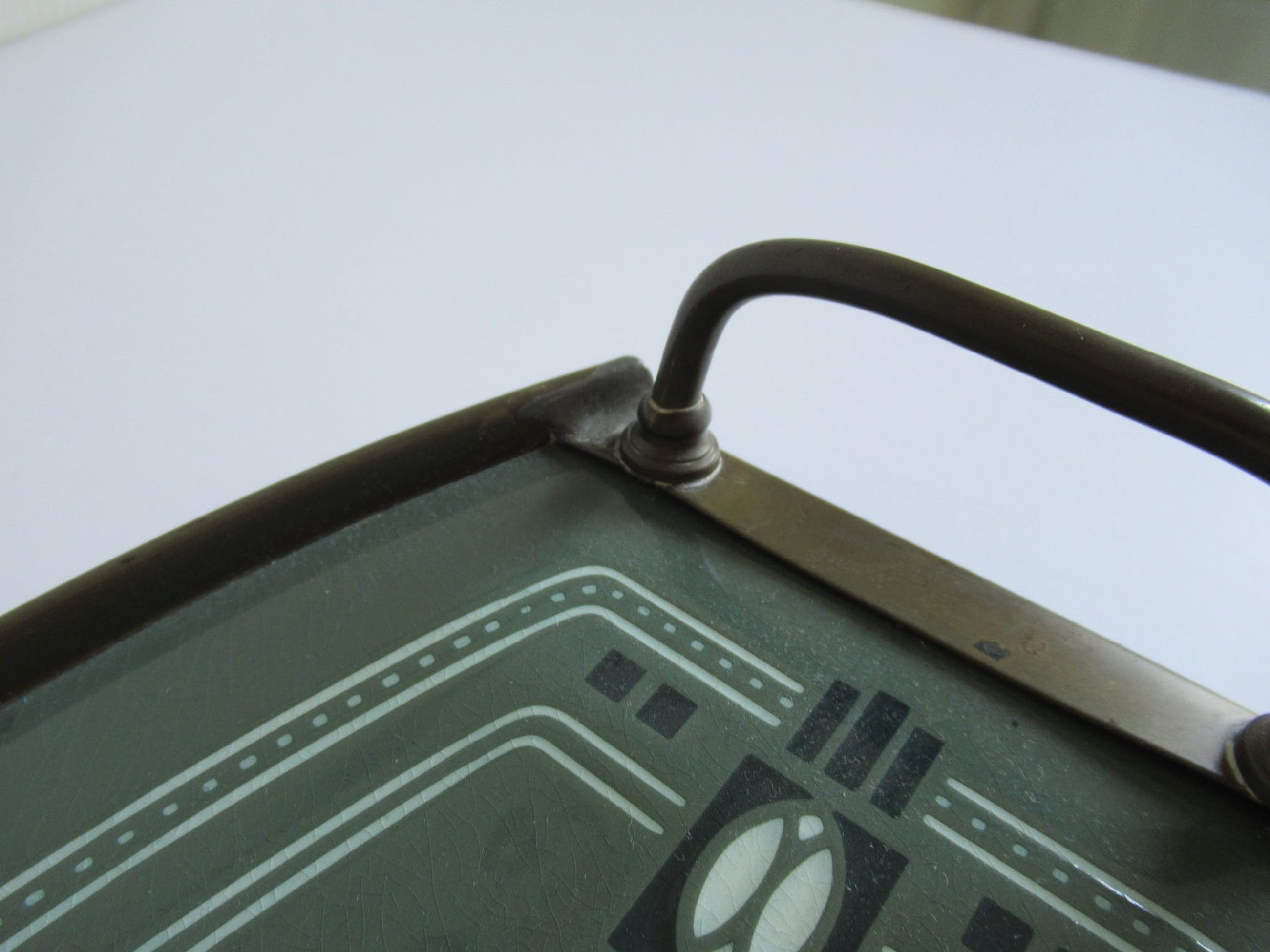De tegel is in een goede staat, het metalen frame heeft enkele slijtage en restauratie plekken