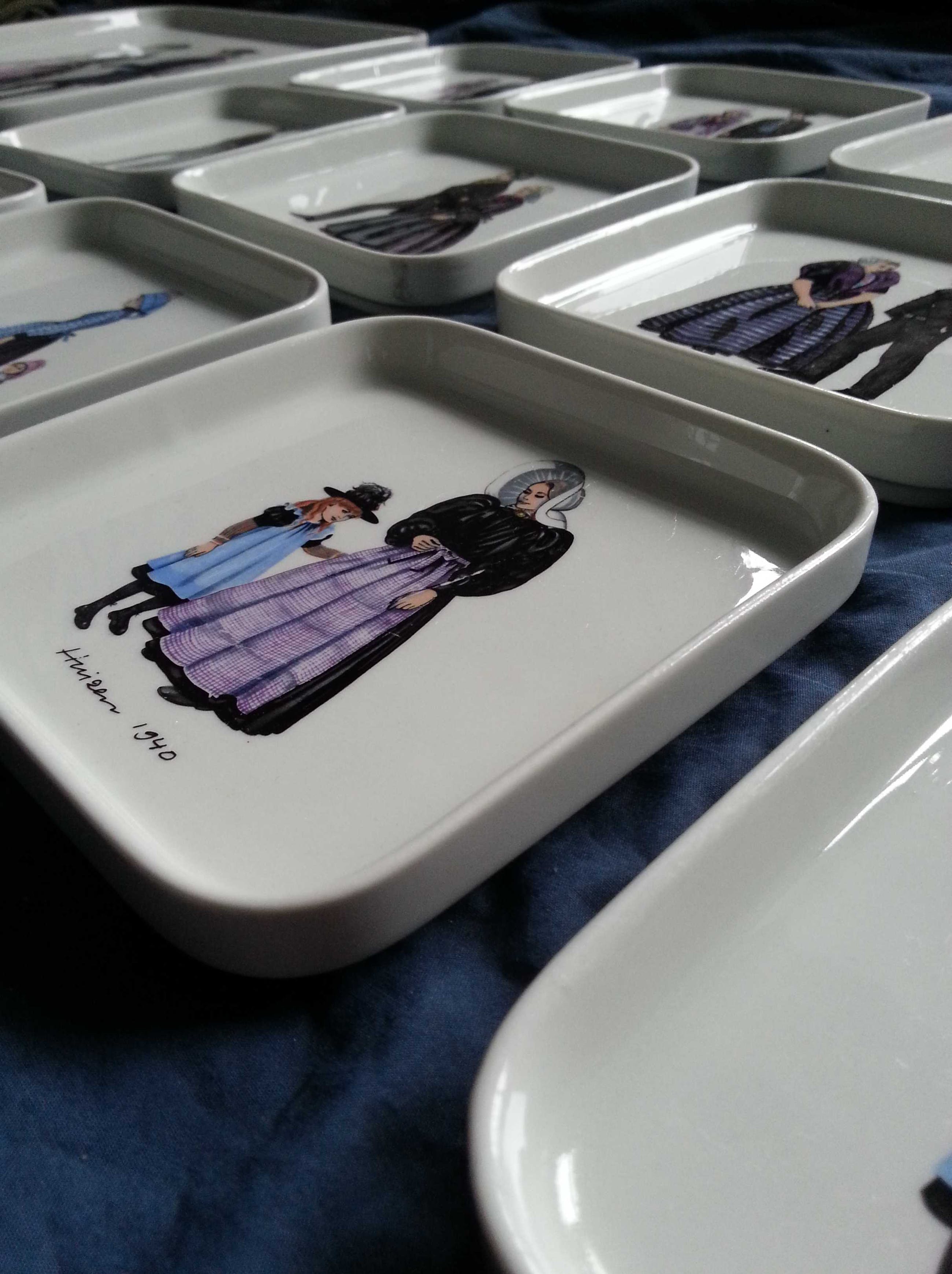 Gedecoreerd met verschillende Nederlandse klederdrachten uit de 18e en 19e eeuw.
