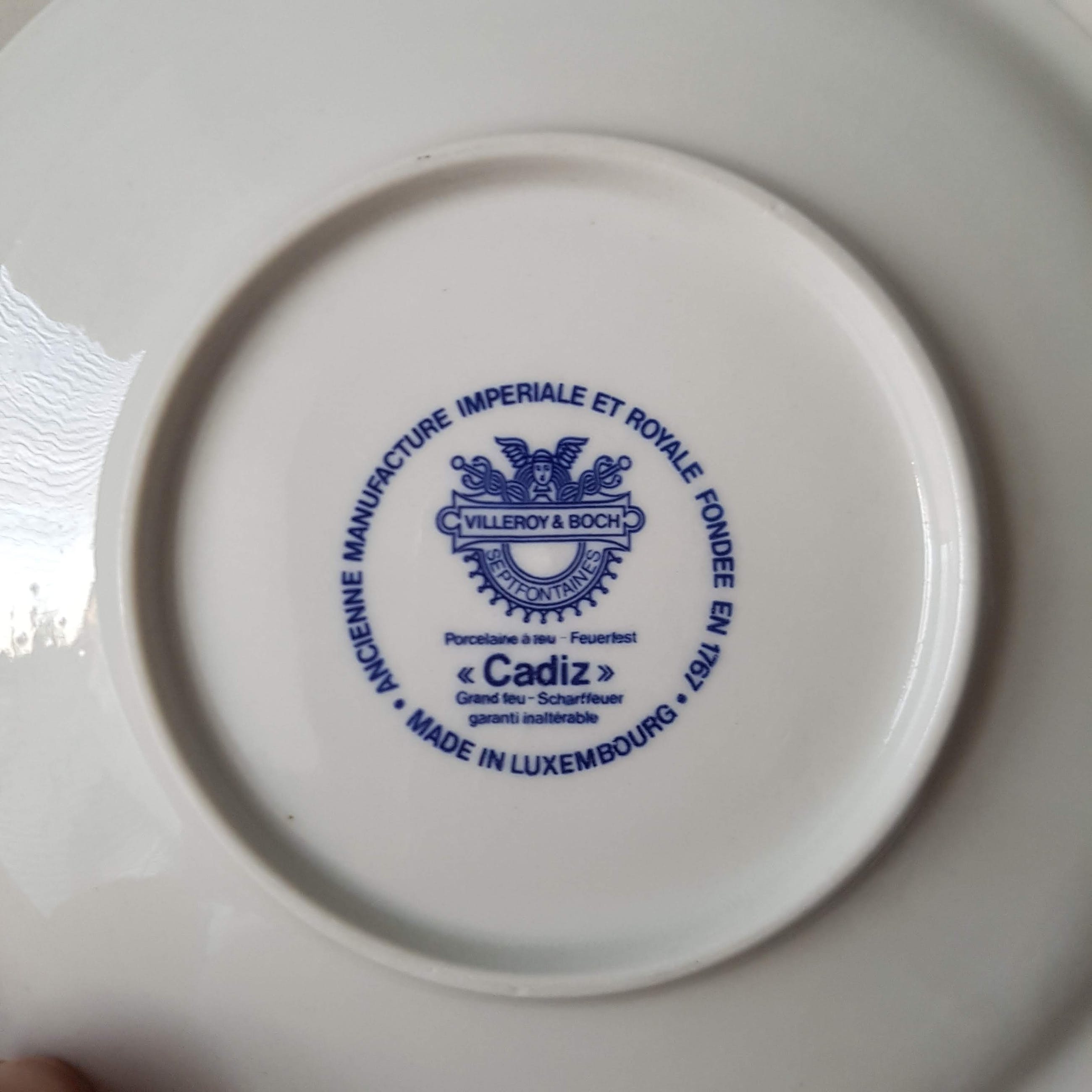Het servies is gemaakt in Luxemburg, Ontwerper Vorm: Ludwig Scherer Ontwerper Decor: Christine Reuter Serie Cadiz