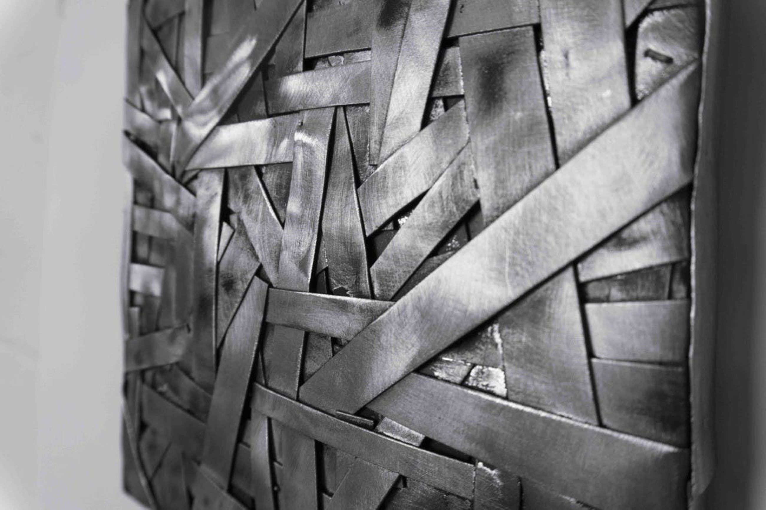 Strak minimalistisch werk van de Haagse kunstenaar Vincent de Kooker getiteld "Kubire", wat zoveel betekent als constricted of ingesnoerd. in het Japans. Gesigneerd aan de zijkant.