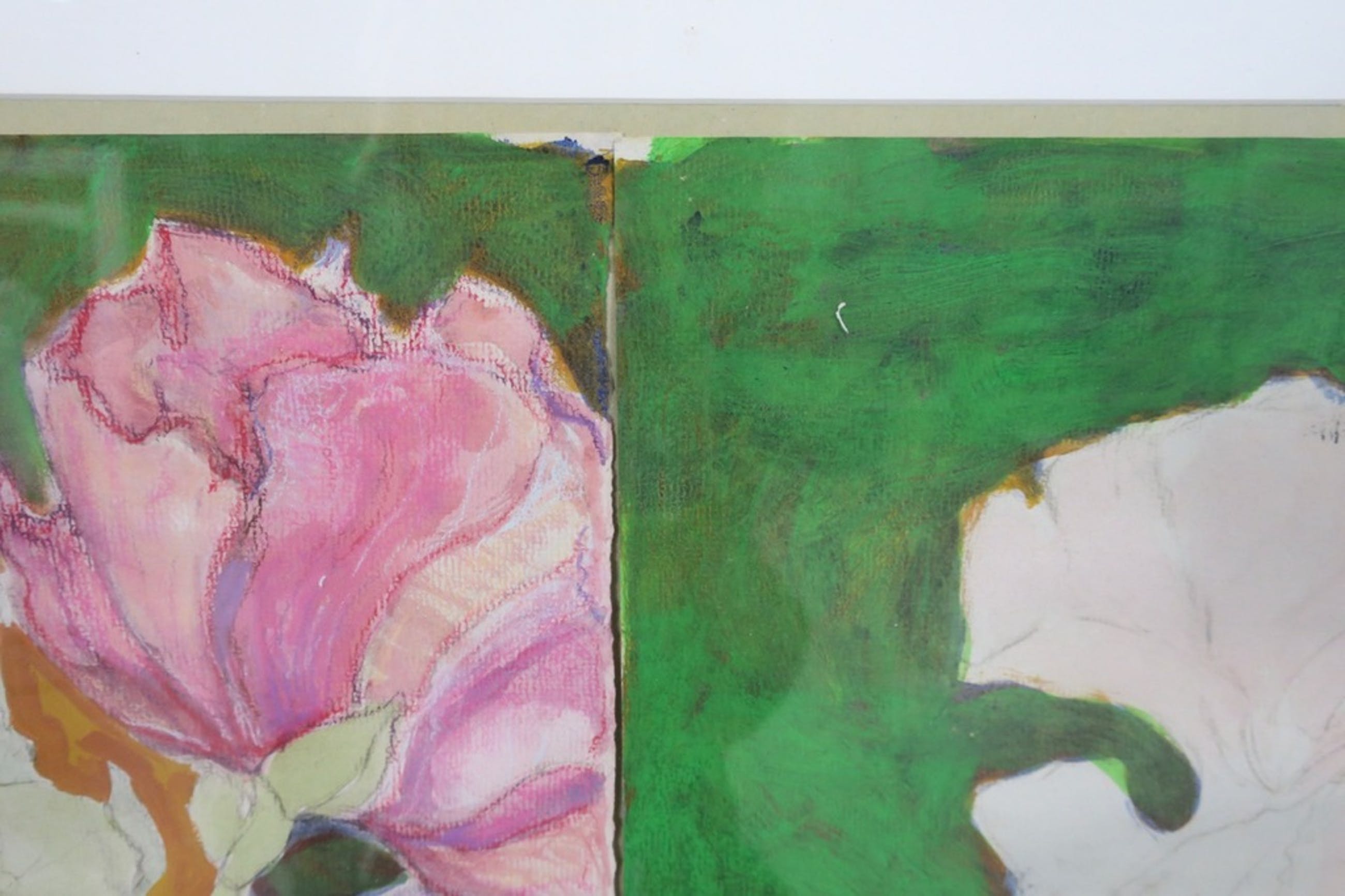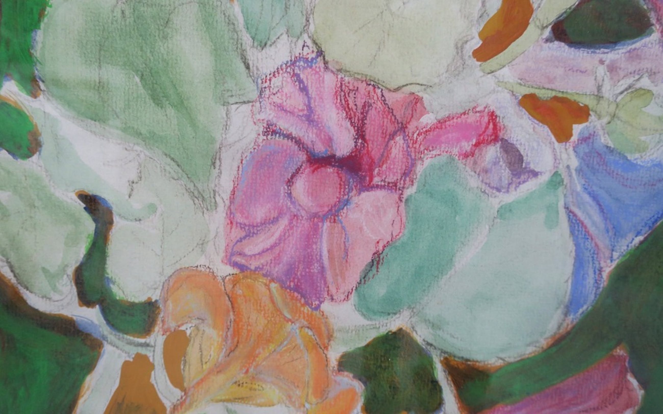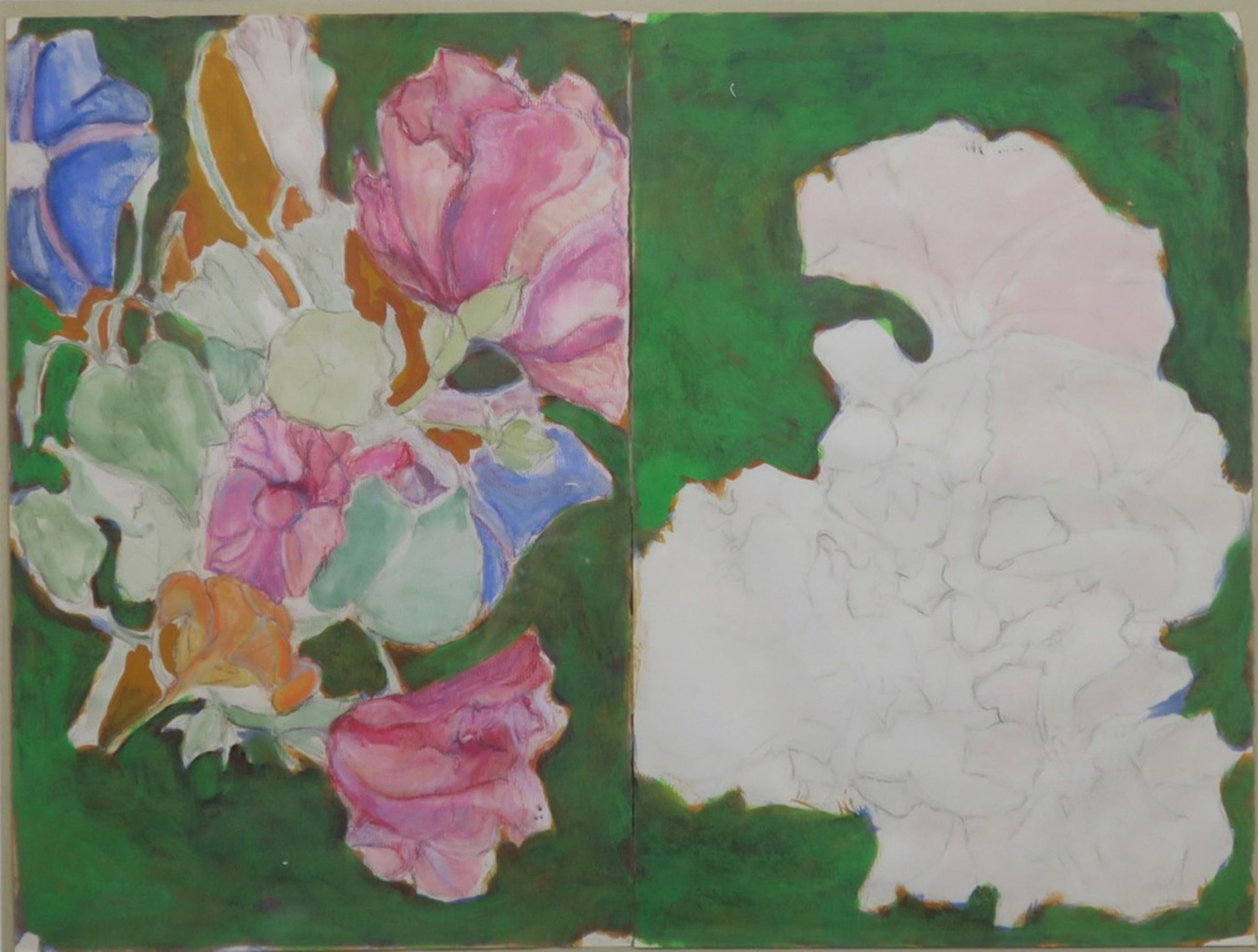 Materiaal: Gemengde techniek op papier bevestigd op board, o.a. Gouache en potlood