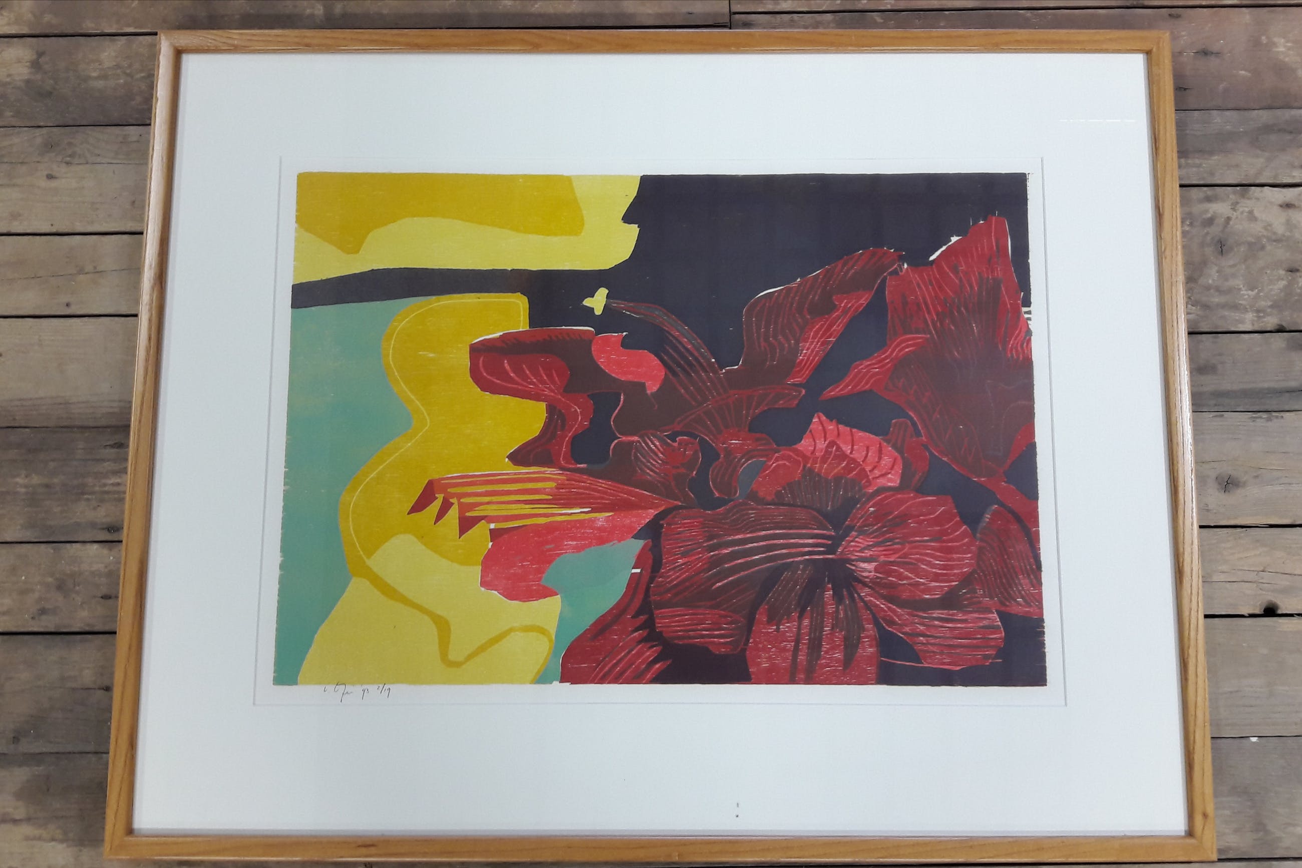 Kleine oplage Mooi werk . Ingelijst Houten lijst met glas
