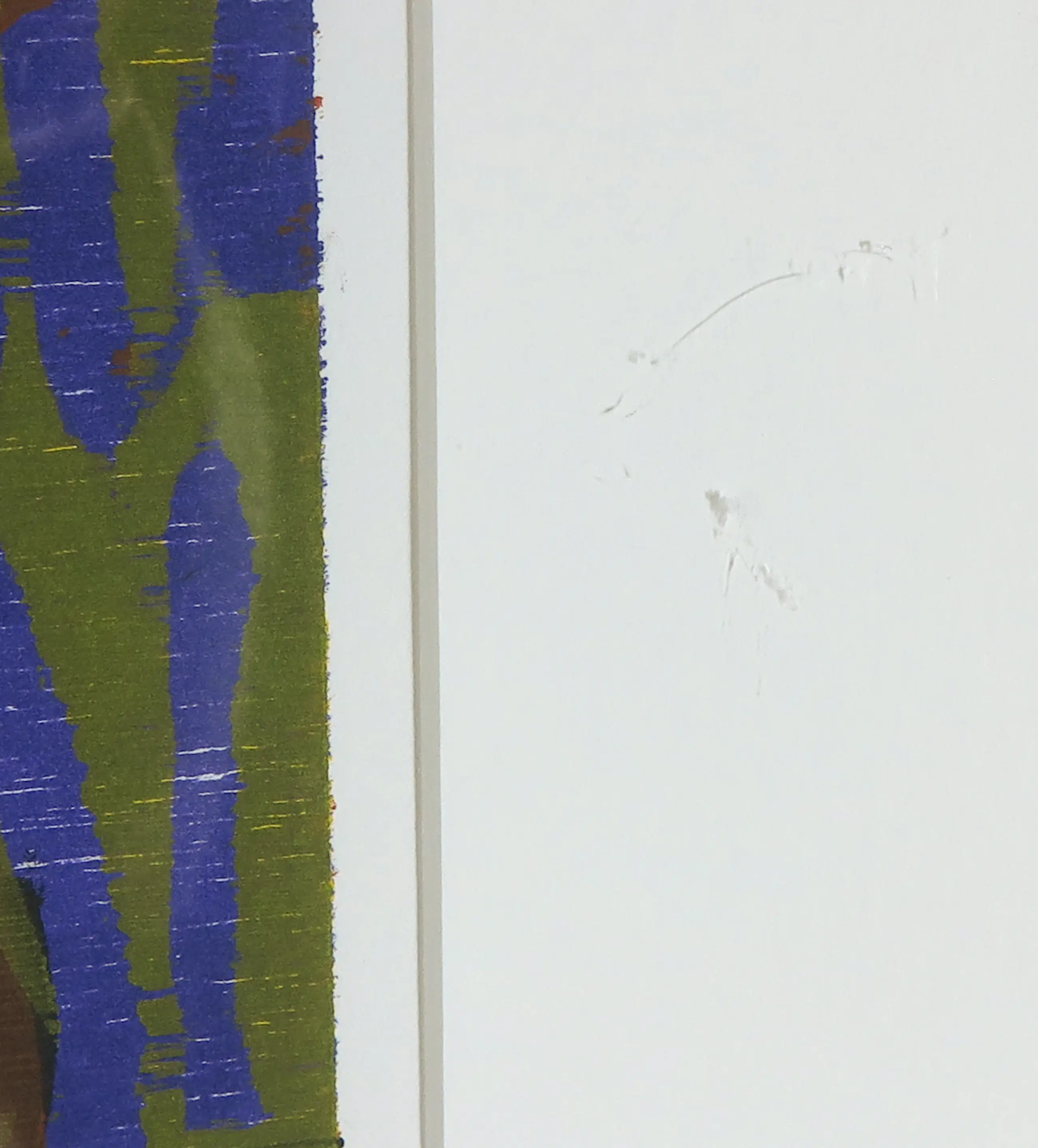 Passe-partout/lijsten: Beschadigingen aan lijsten worden niet beschreven. Indien een werk achter glas is ingelijst en het glas kapot is, zal dit wel vermeld worden. Passe-partouts worden op geen enkele manier gegarandeerd en ook niet altijd meegezonden.