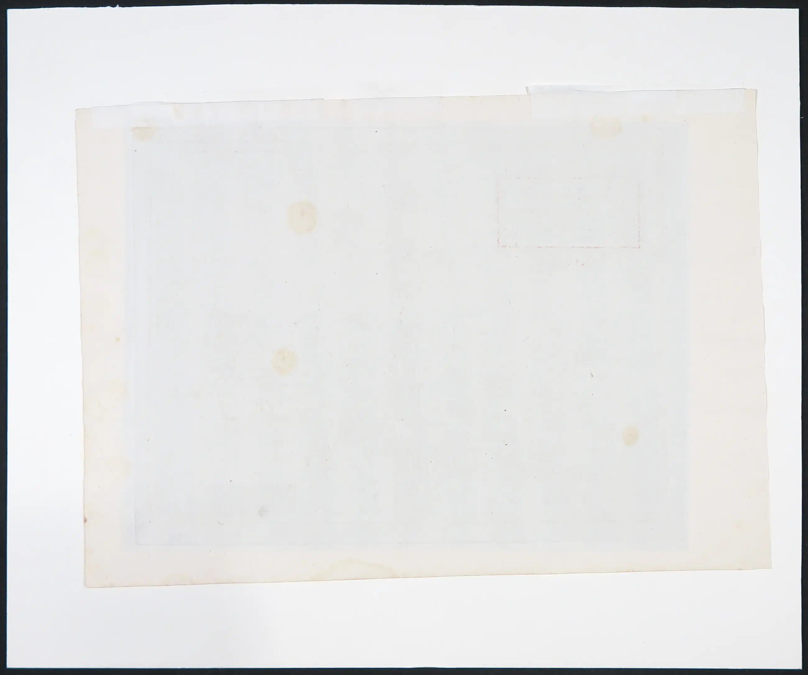 | De kaart is in zeer goede staat, met een paar gelige vlekjes langs de randen en in het beeld. Het passe-partout is vlekkerig en beschadigd. | |||||||||||
