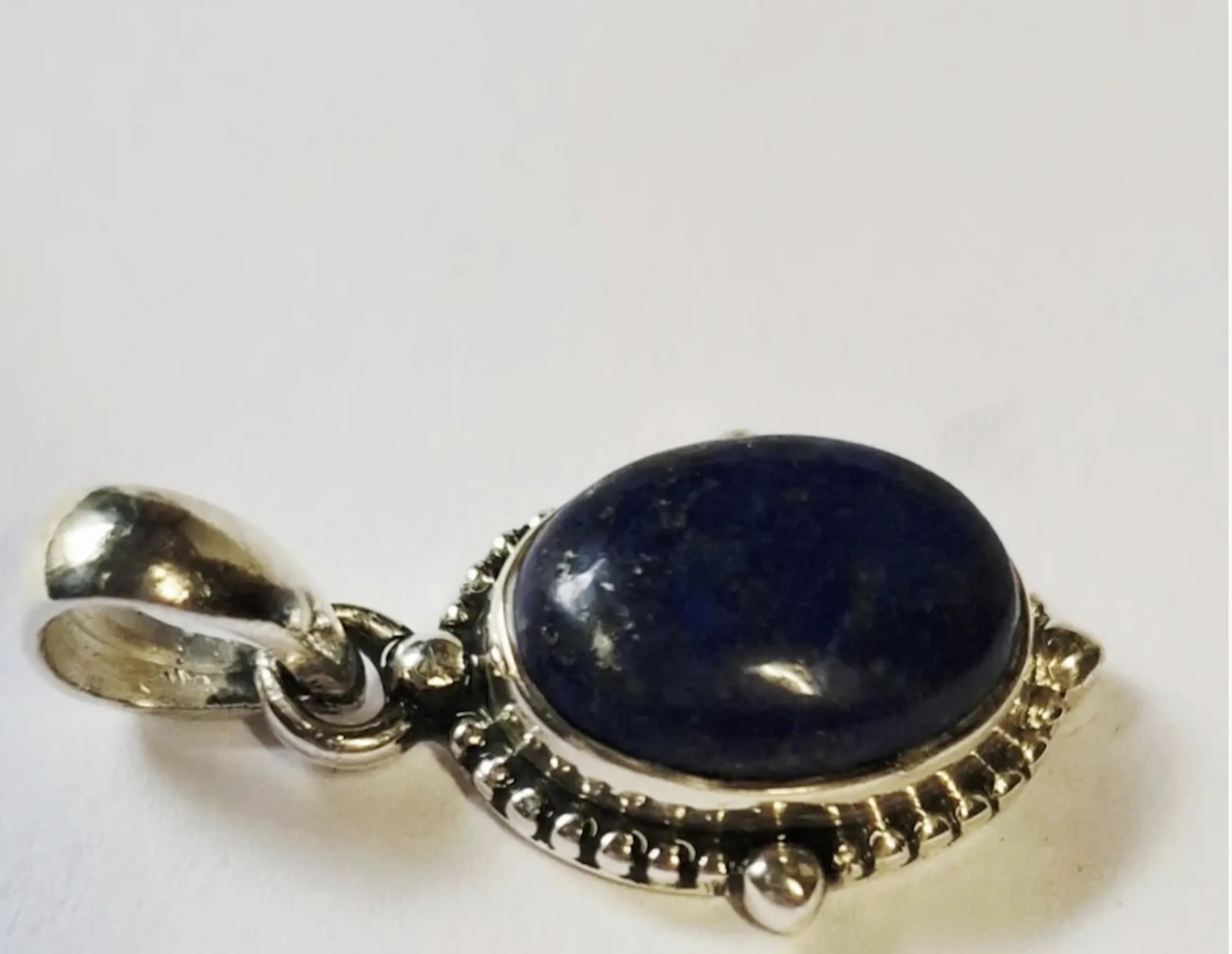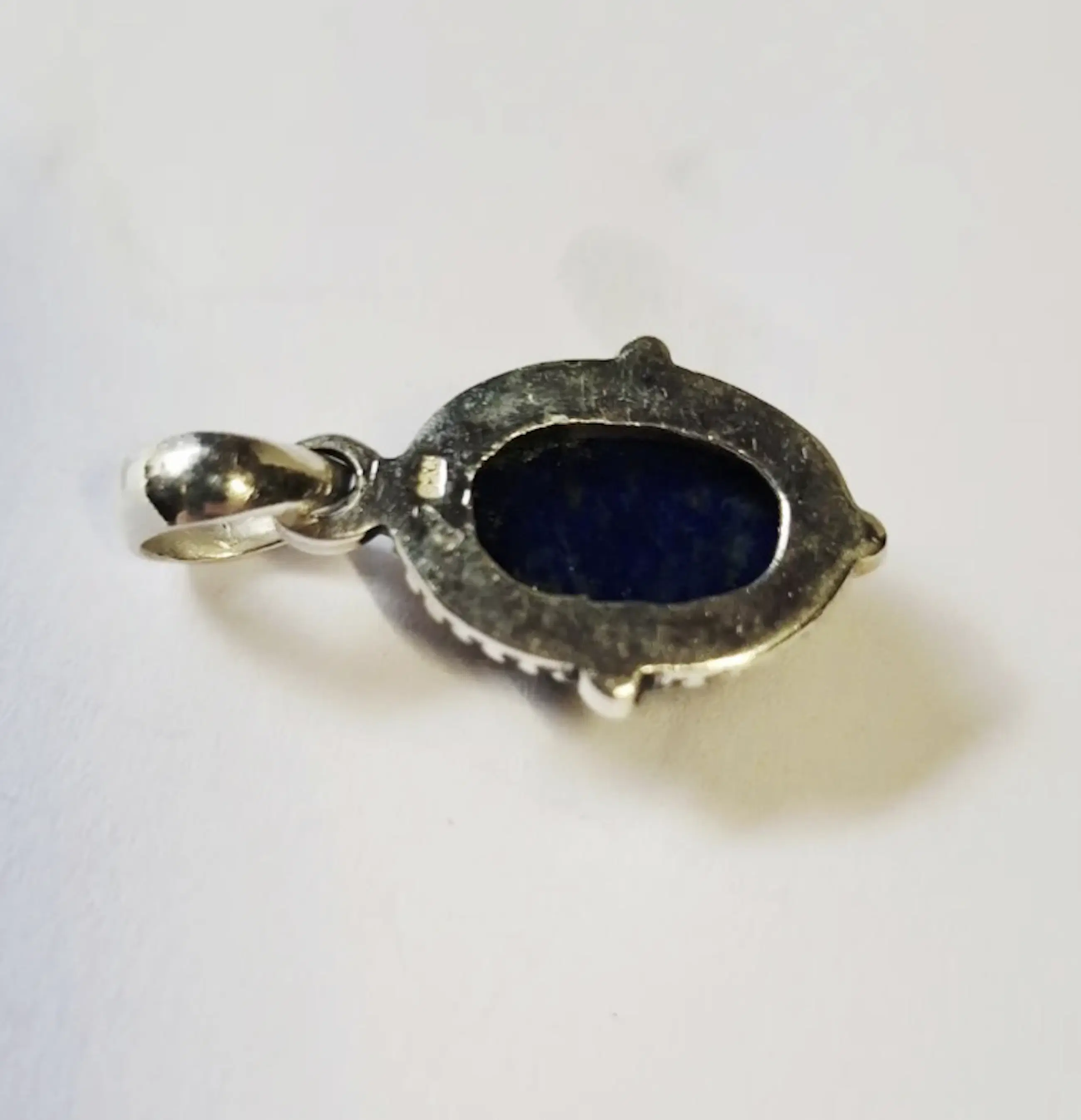 vintage Nieuwe zilveren ovale hanger lapis lazuli bewerkte rand Nieuwe Prachtige Lapis lazuli is azuurblauw hanger Handgemaakt van mooi kwaliteit Lapis lazuli is gezet in 925 zilver