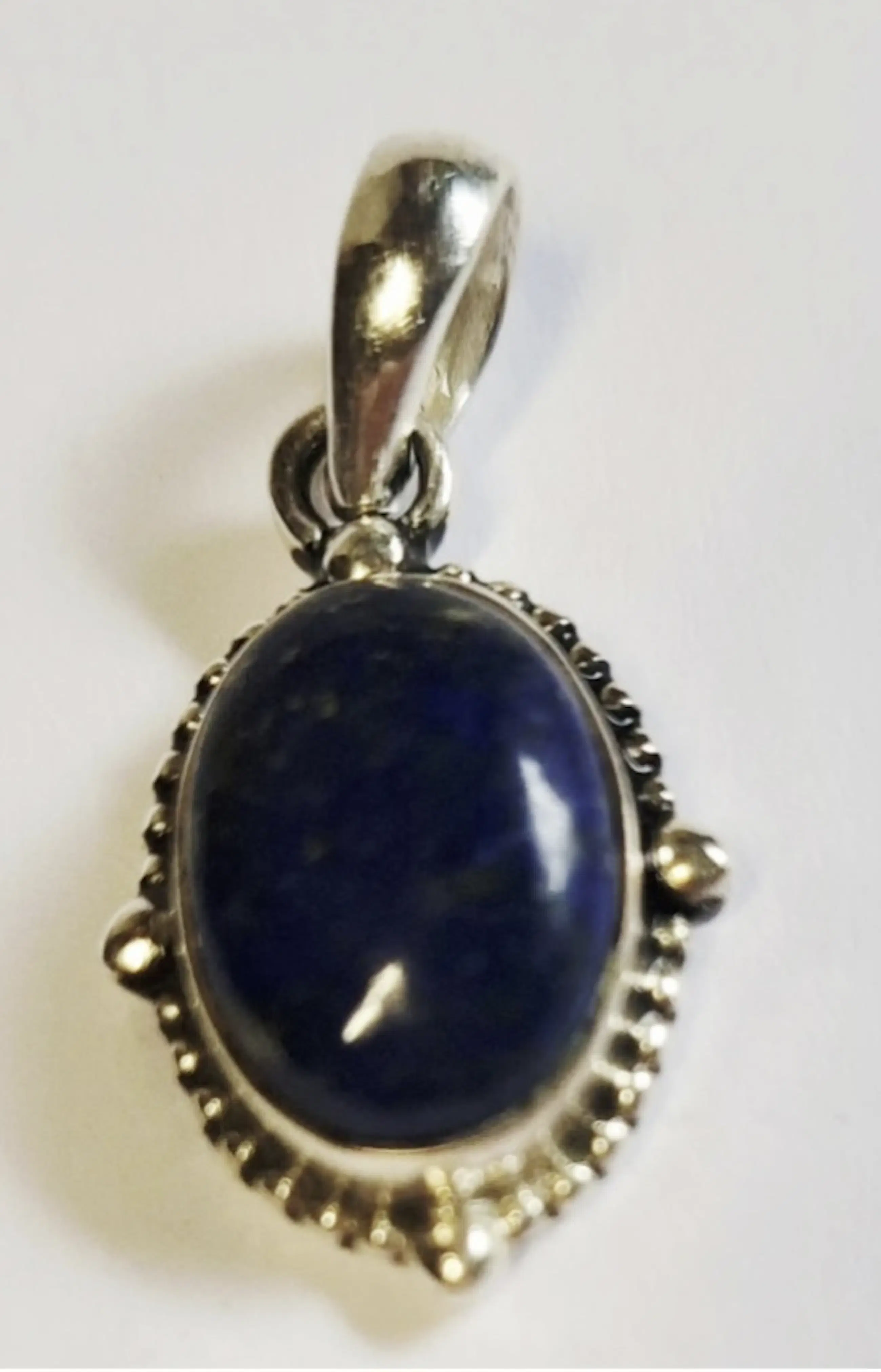 vintage Nieuwe zilveren ovale hanger lapis lazuli bewerkte rand