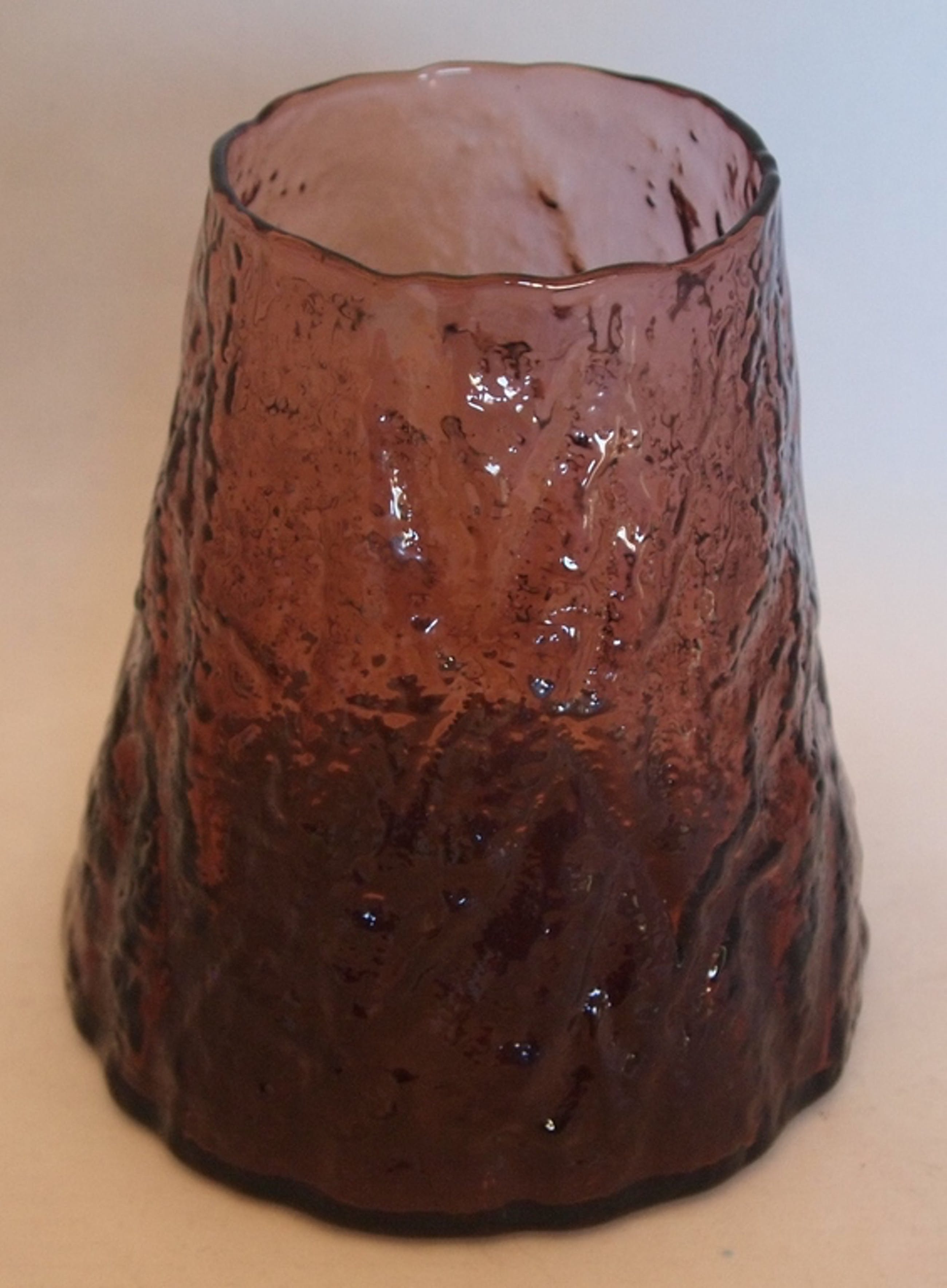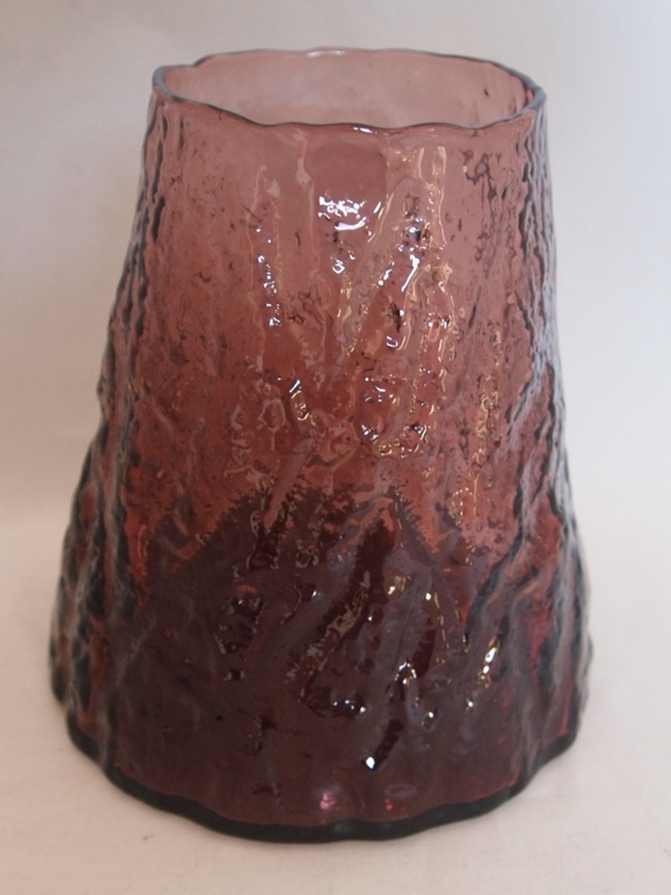 Vintage paarse glazen "bark" vaas. Mooi stuk glas, maker onbekend. Mogelijk gemaakt bij Ingrid Glashuette in Duitsland of Oberglas in Oostenrijk. In prima onbeschadigde conditie. Niet gemerkt.